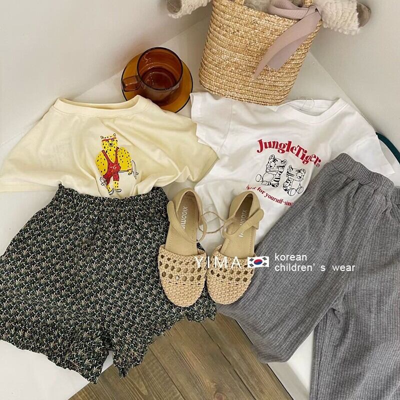 サマーホワイトプリントTシャツ ニットパンツ カジュアルセット 夏物 3/14 春夏 SS mi0945470521673 | Sagittarius By Constellation -KIDS&BABY-