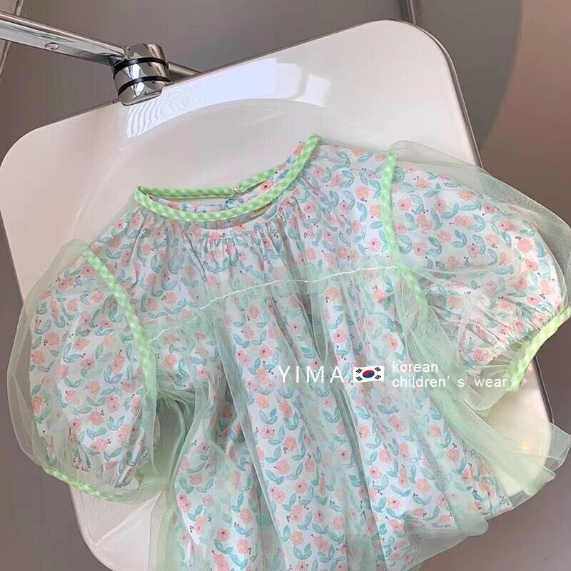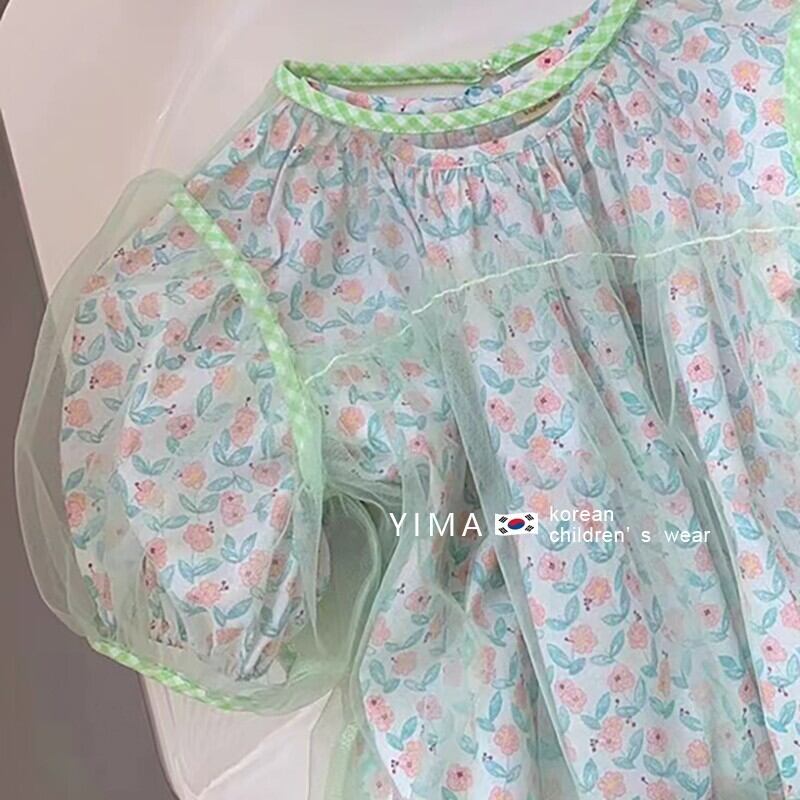 サマースタイルグリーンフローラルドレス メッシュスカート 夏物 花柄 ステッチ 3/14 春夏 SS mi0925358930905 | Sagittarius By Constellation -KIDS&BABY-