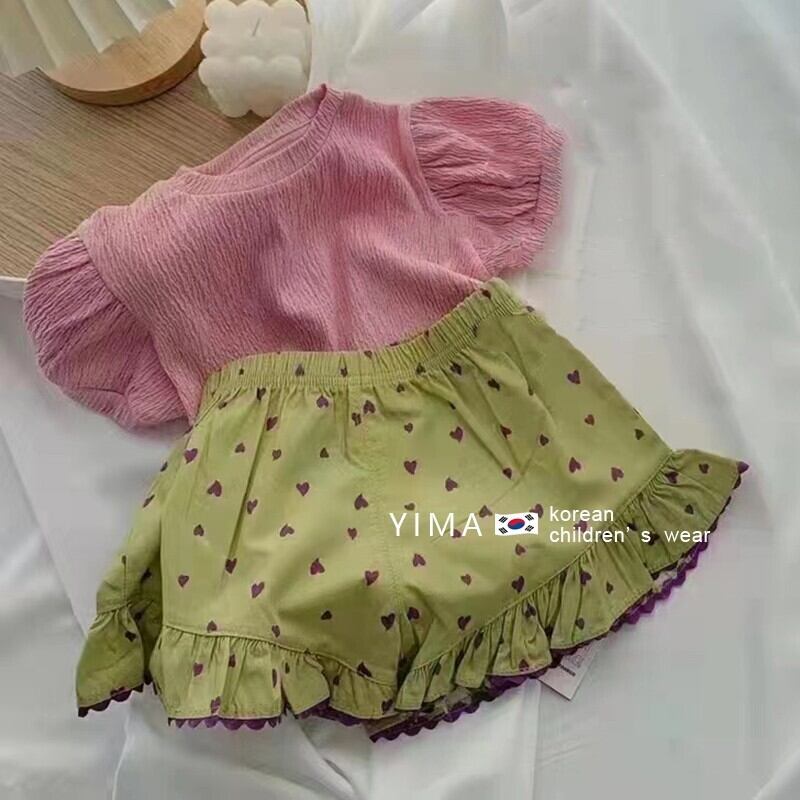 色:ピンクトップ,グリーンショートパンツ