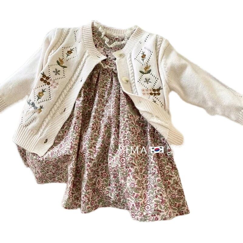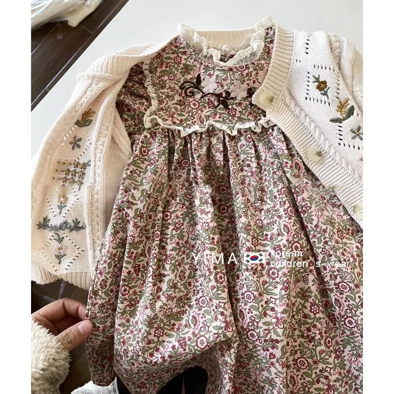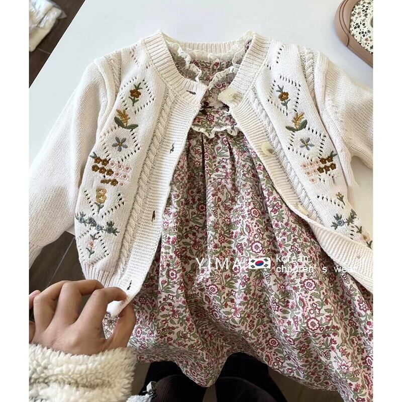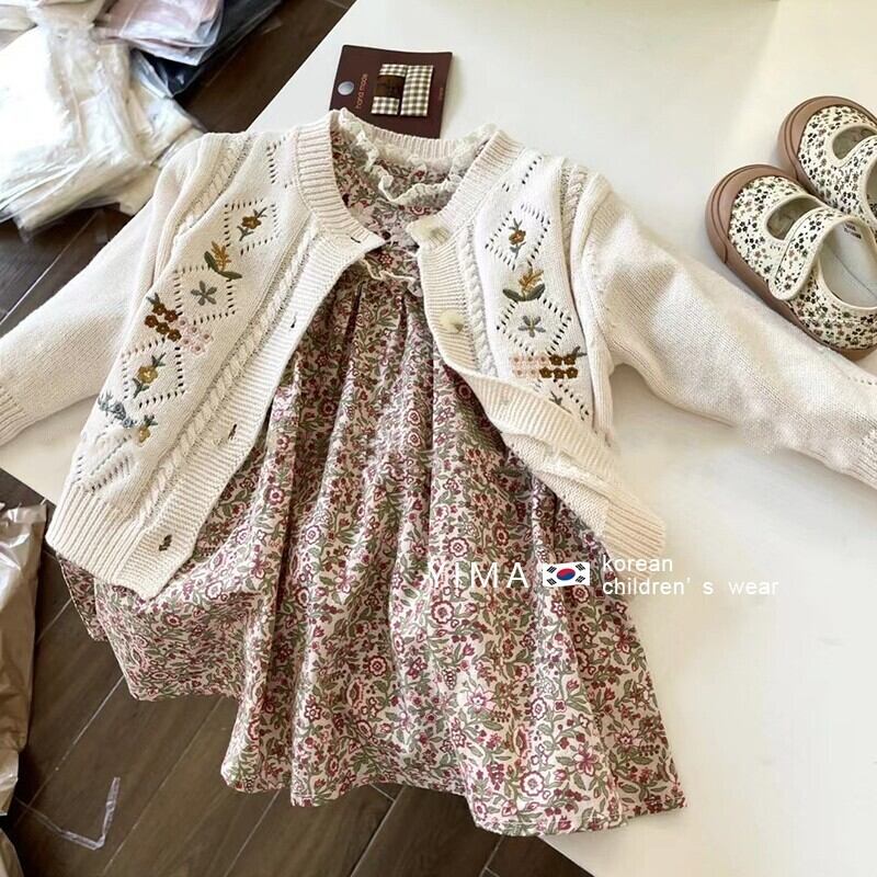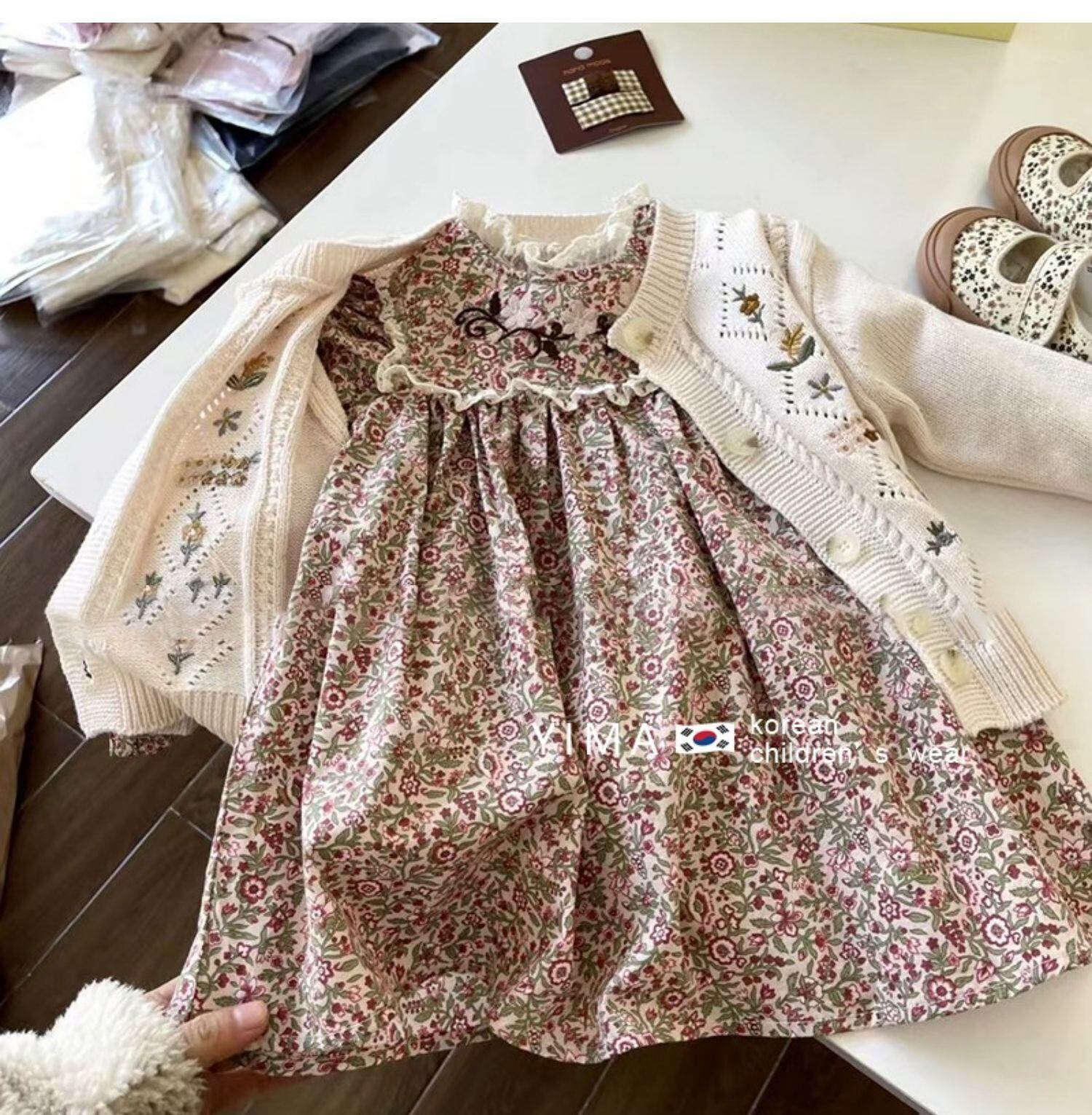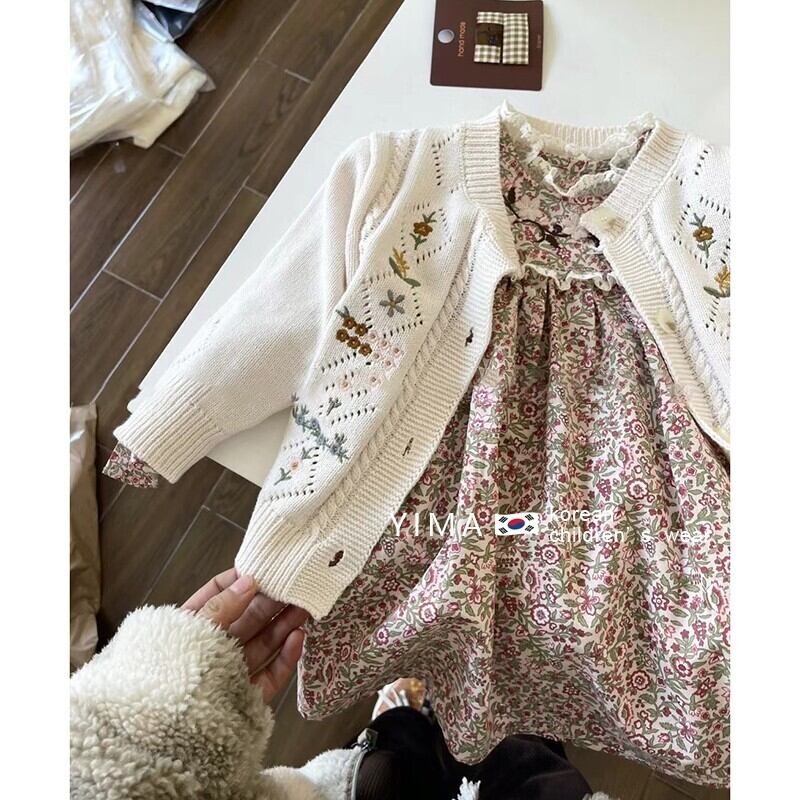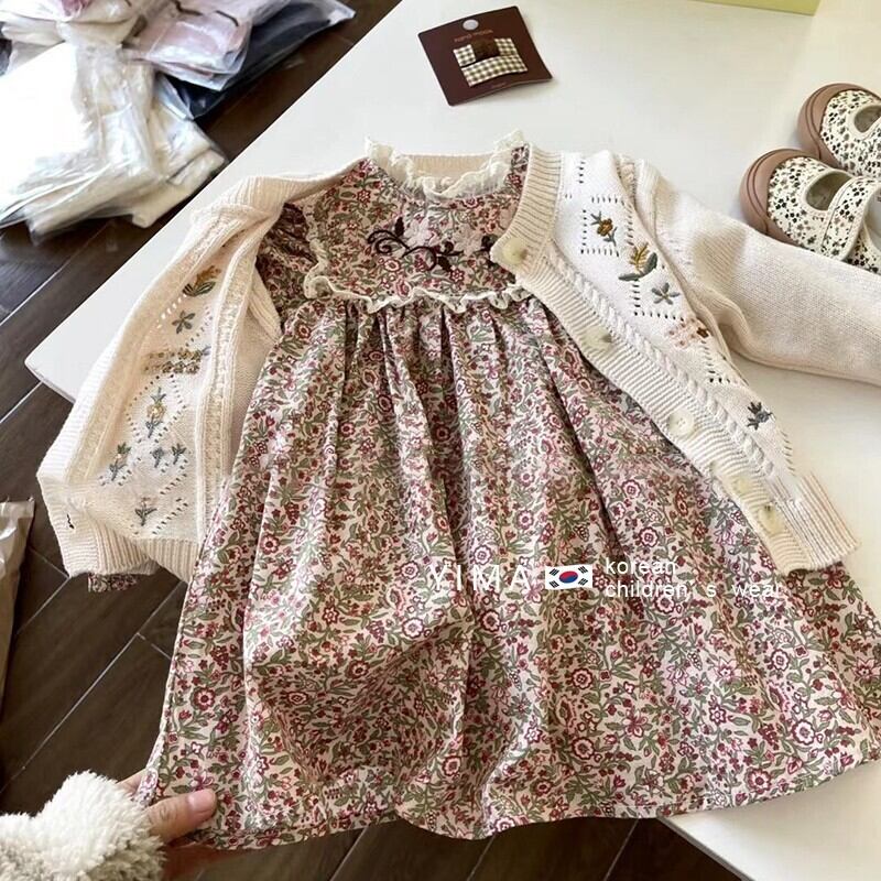 色:花柄ドレス,ホワイトニットカーディガン