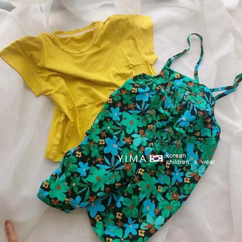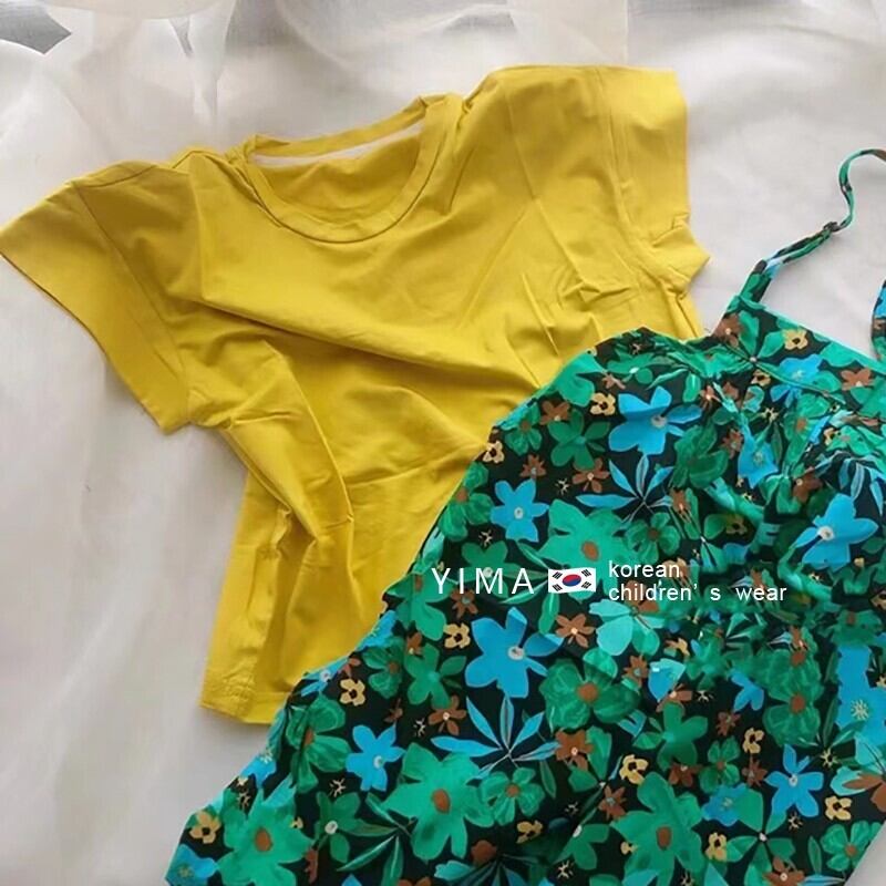 色:緑のオーバーオール,マンゴイエローTシャツ