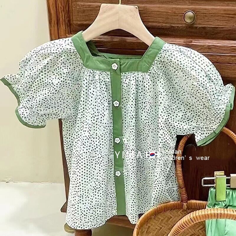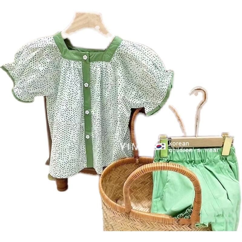 薄手スタイルフローラルシャツ グリーンショーツ サマー 夏物 ブルマー 花柄 3/14 春夏 SS mi0995558717685 | Sagittarius By Constellation -KIDS&BABY-