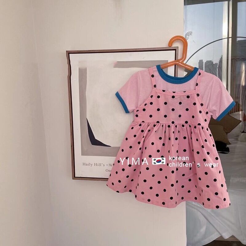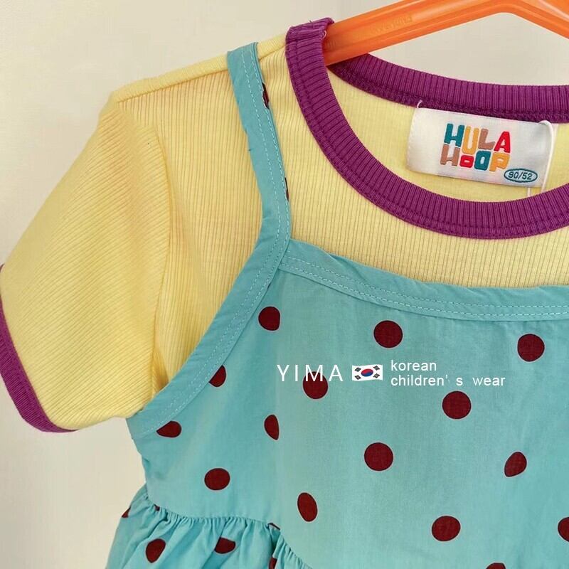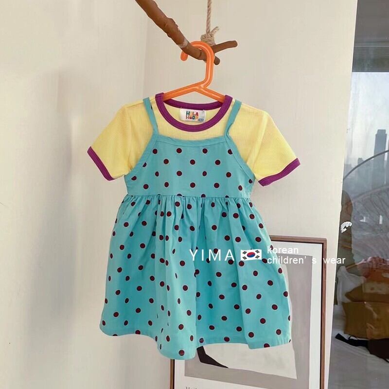 色:青い服,ピンクのサスペンダードレス,黄色の半袖,ピンクの半袖