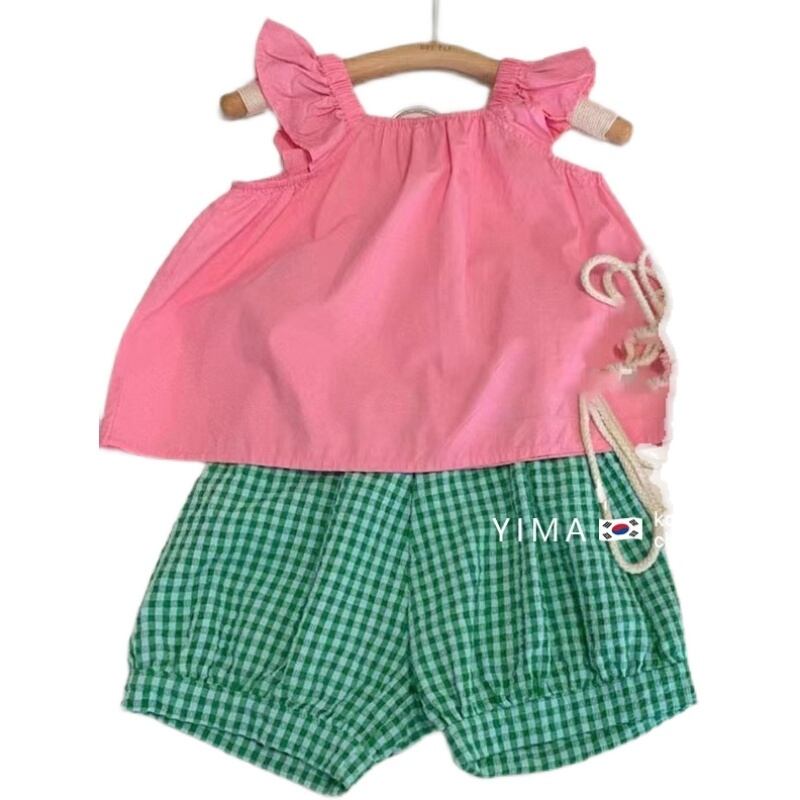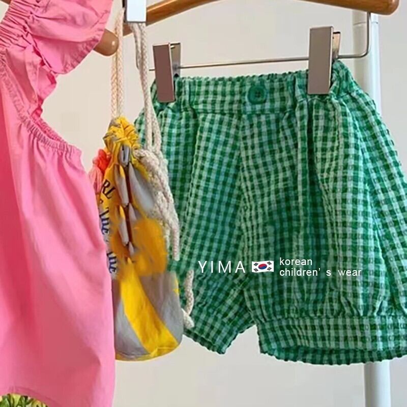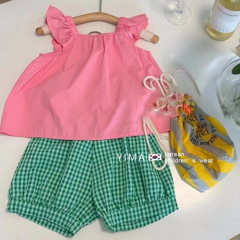色:ピンクのサスペンダー,グリーンショートパンツ