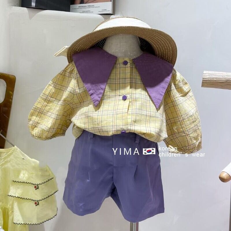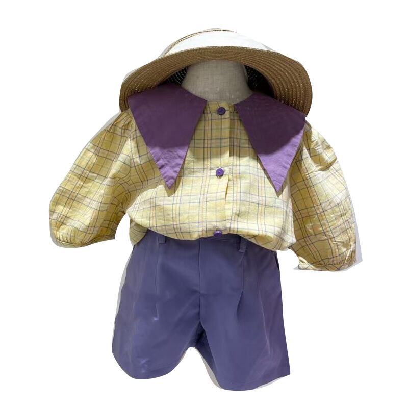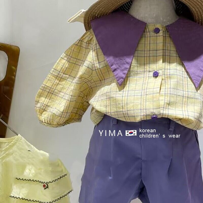色:格子縞のシャツ,青パンツ