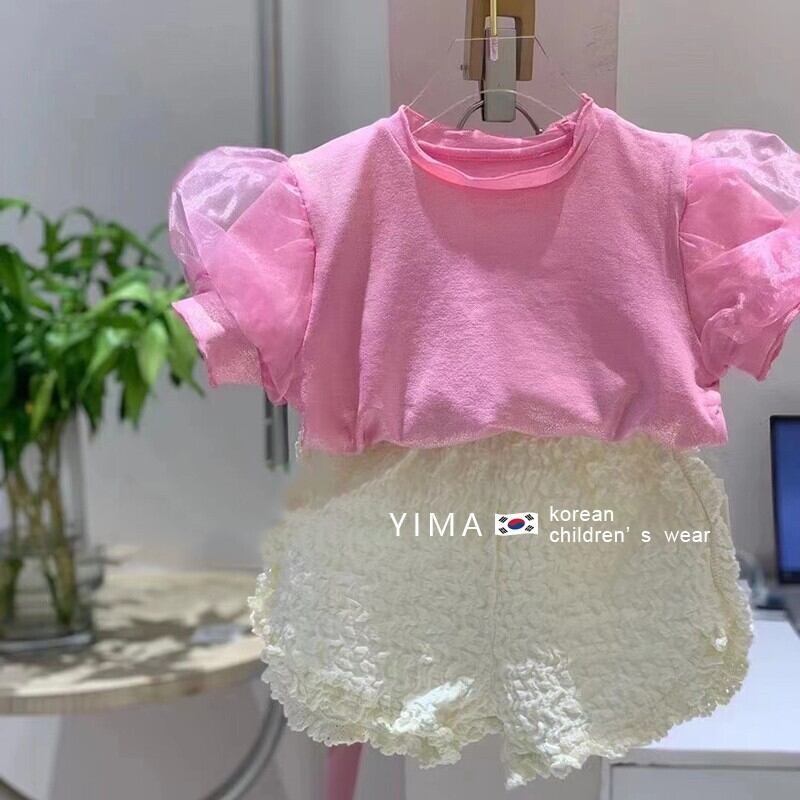 薄手サマースタイルTシャツ Flowerデザイン パンツ セット ショーツ ピンク 夏物 ブルマー フラワーデザイン 3/14 春夏 SS mi0955592859406 | Sagittarius By Constellation -KIDS&BABY-