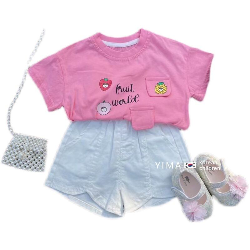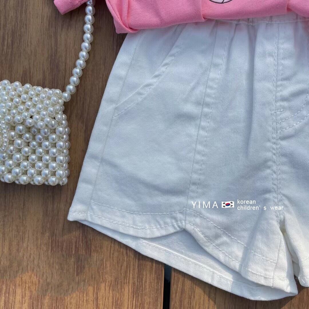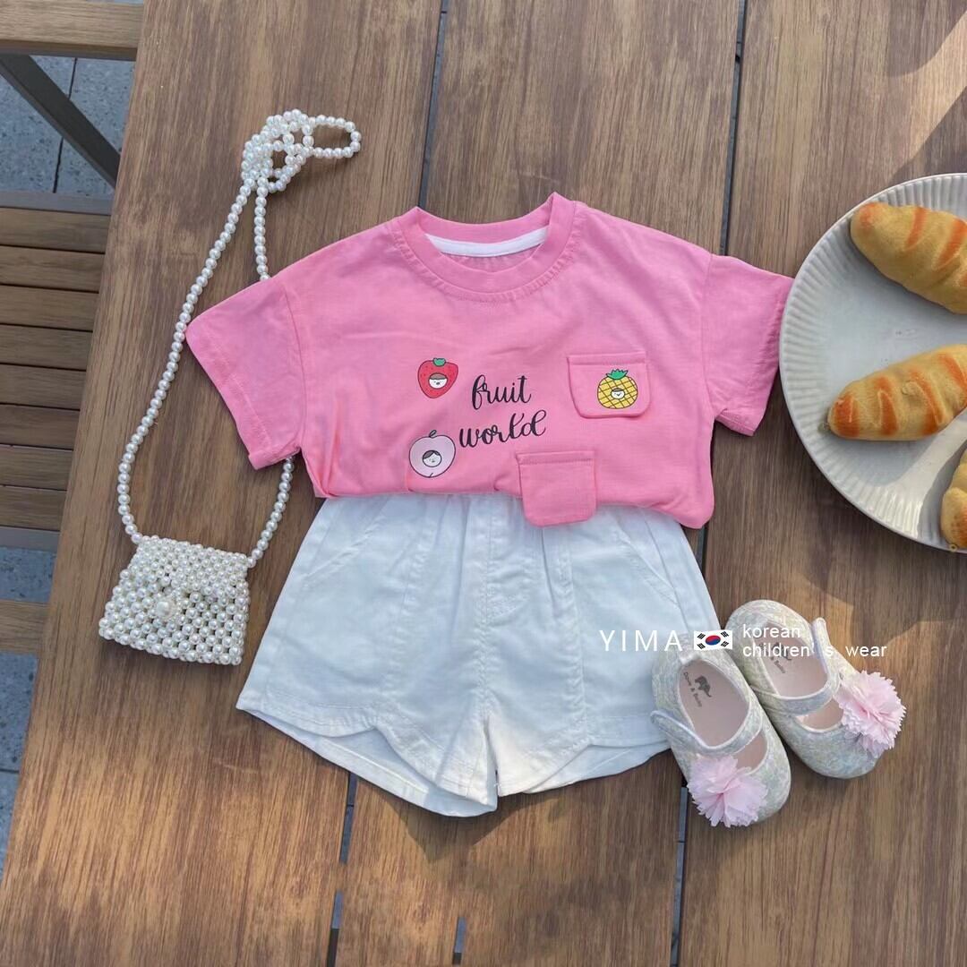 色:ピンクのTシャツ,ホワイトショーツ