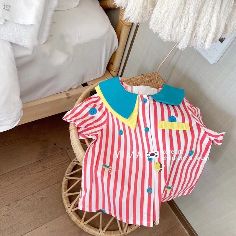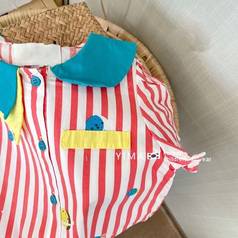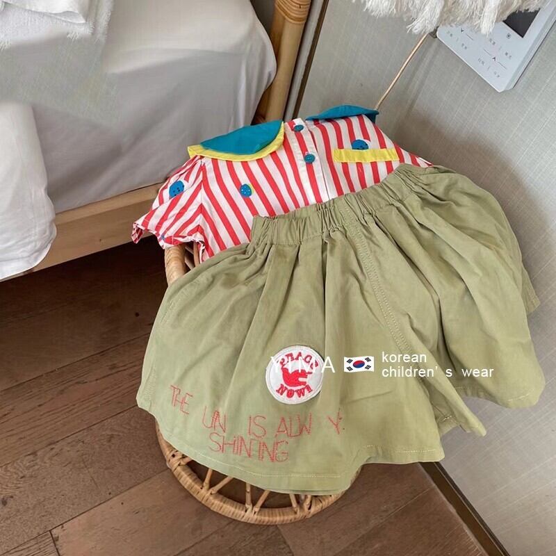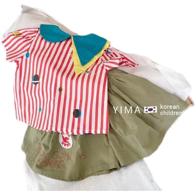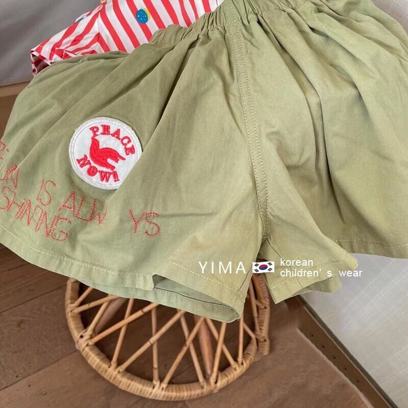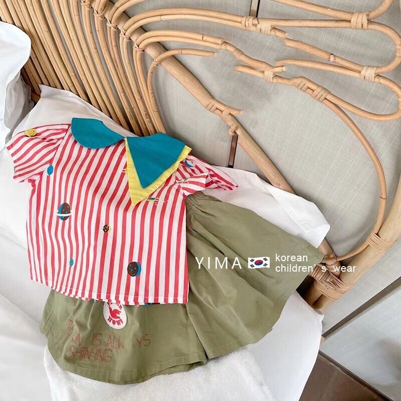 色:ピンクのストライプシャツ,アーミーグリーンパンツ