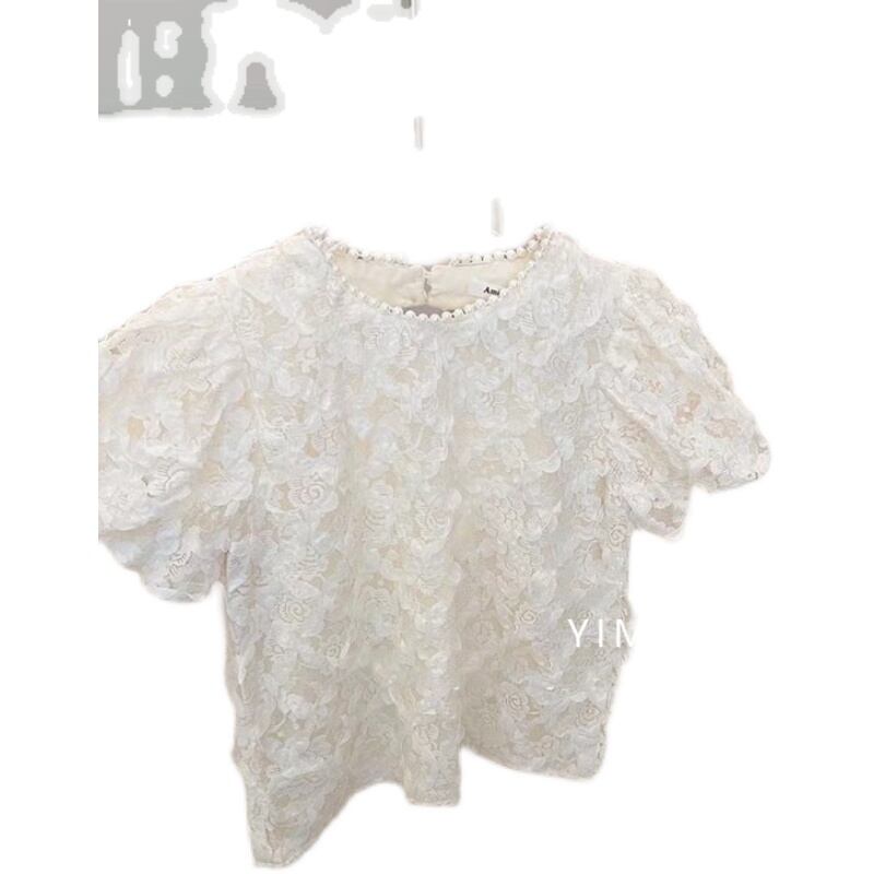 サマーレーストップス スタイルラウンドネックホワイトシャツ 夏物 Oネック 3/14 春夏 SS mi095303670162 | Sagittarius By Constellation -KIDS&BABY-