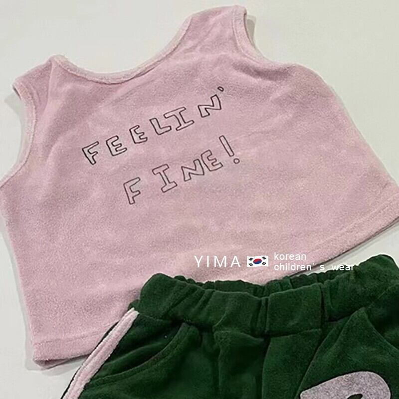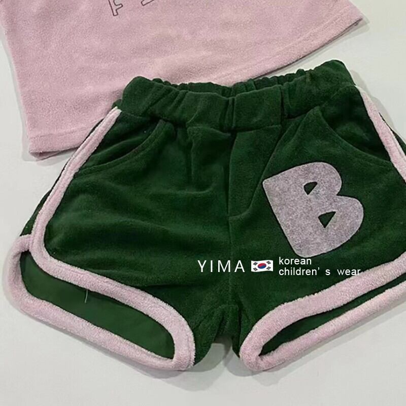 色:ピンクのベスト,グリーンショートパンツ