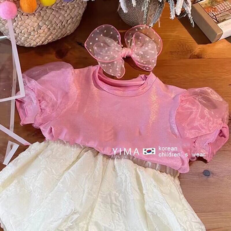 サマースリーブTシャツ シャツ トップス ラウンドネック ピンク 夏物 Oネック 3/14 春夏 SS mi092446864302 | Sagittarius By Constellation -KIDS&BABY-