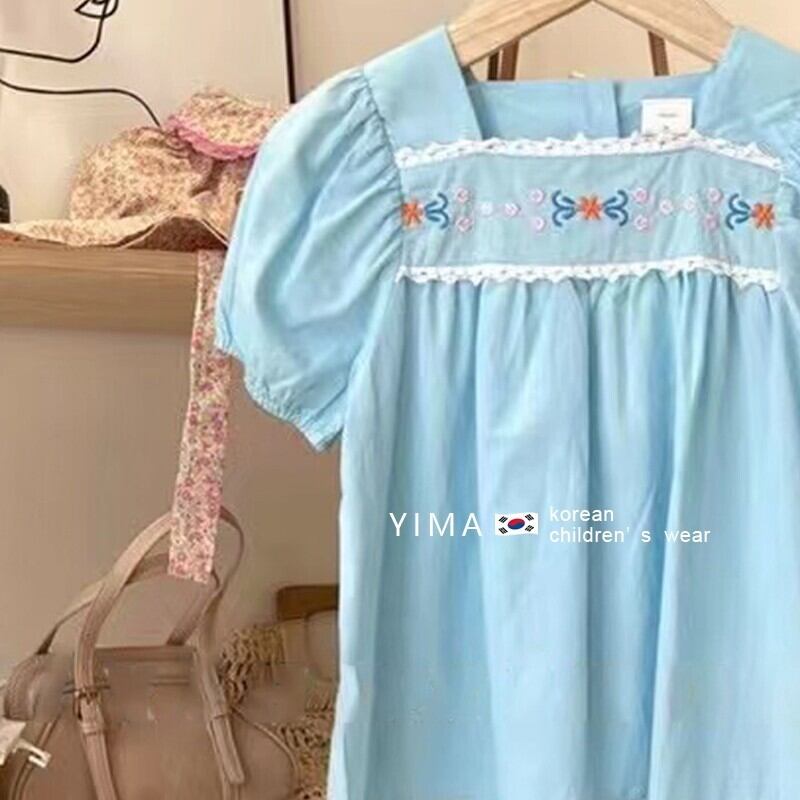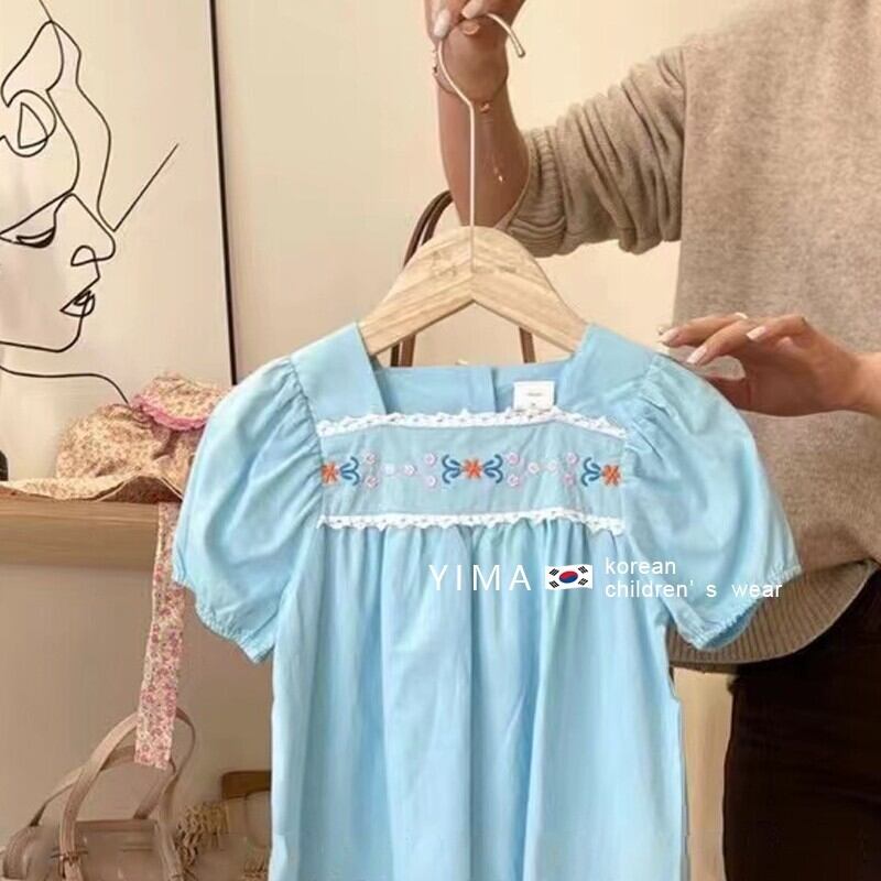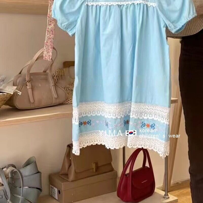 色:スカイブルーの刺しスカート,白刺繍スカート
