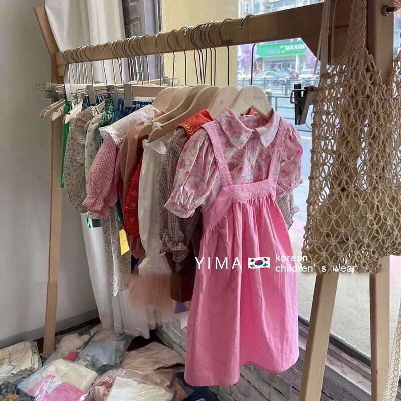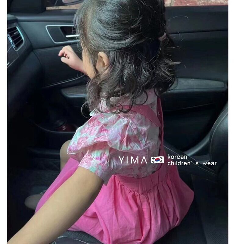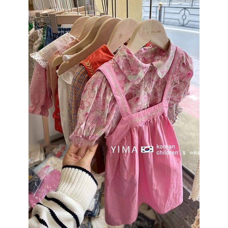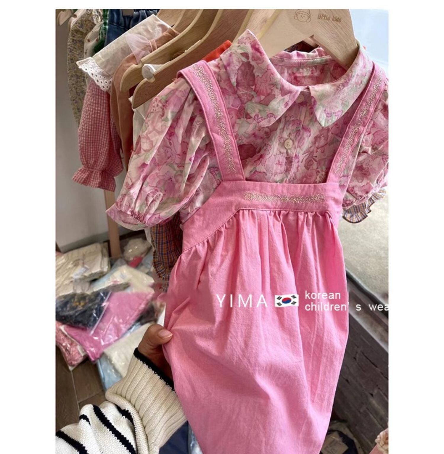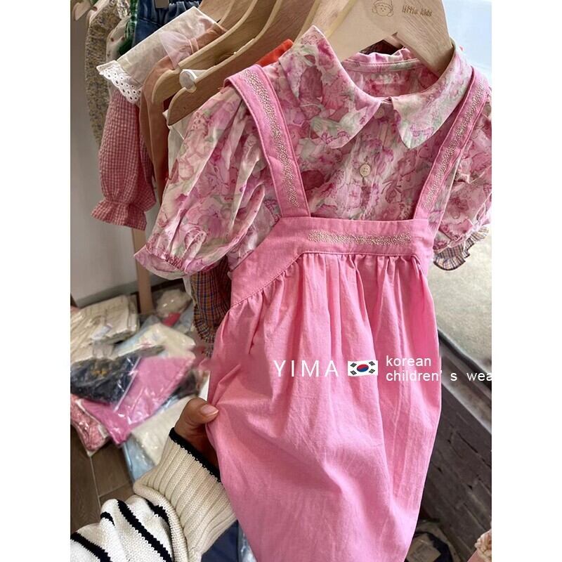 色:ピンクのストラップドレス,ピンクフローラルシャツ