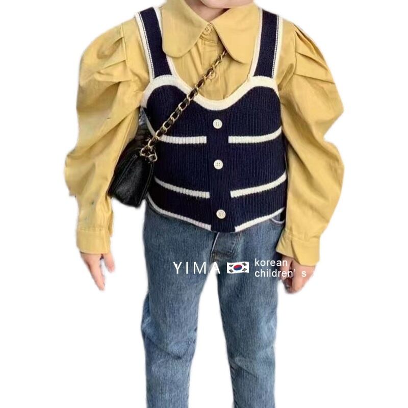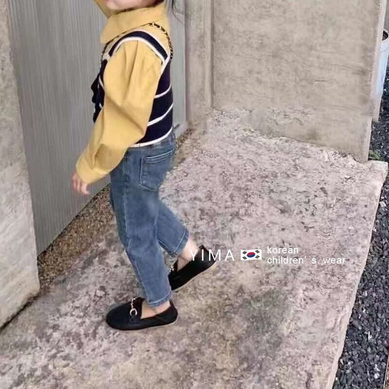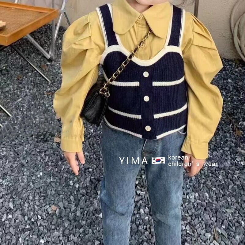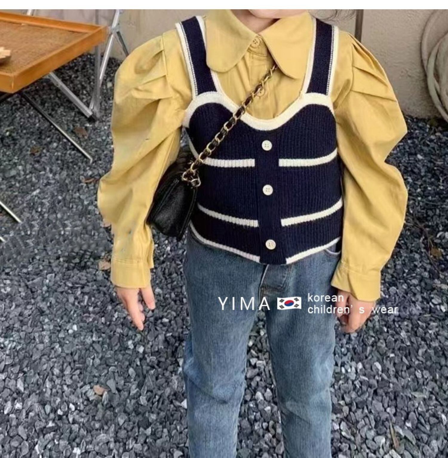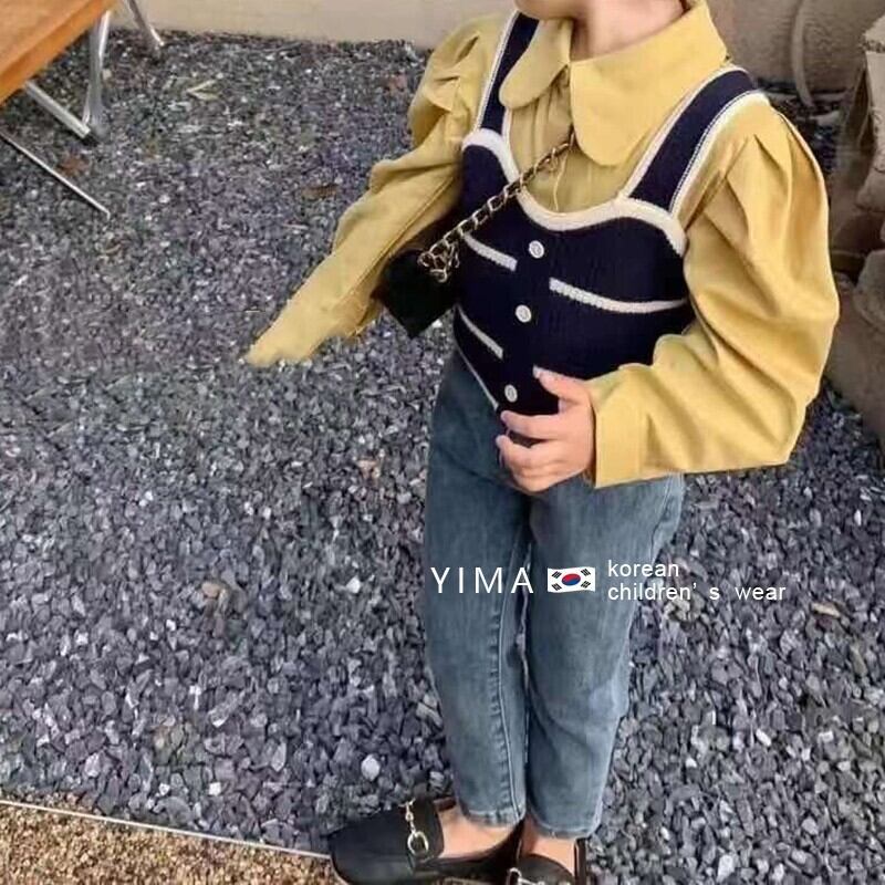 色:黒のベスト,黄色のシャツ,ブルージーンズ