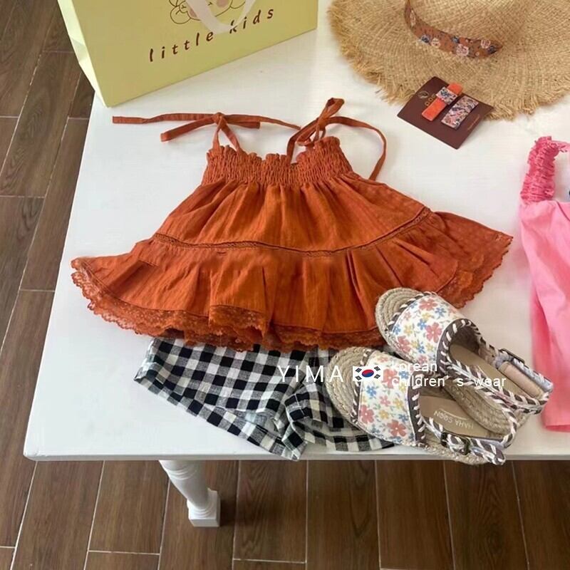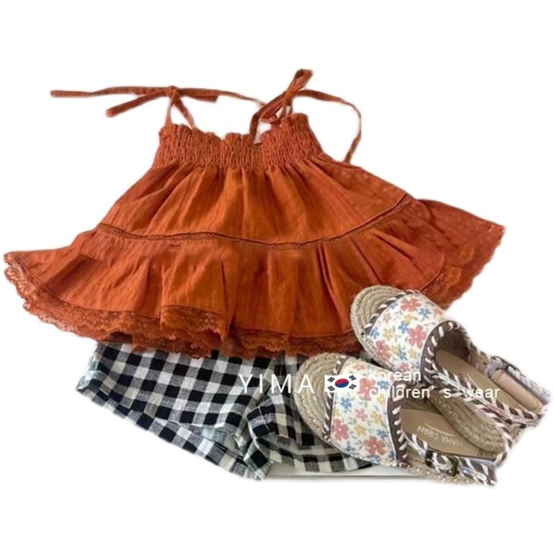 色:オレンジサスペンダー,黒と白のショーツ