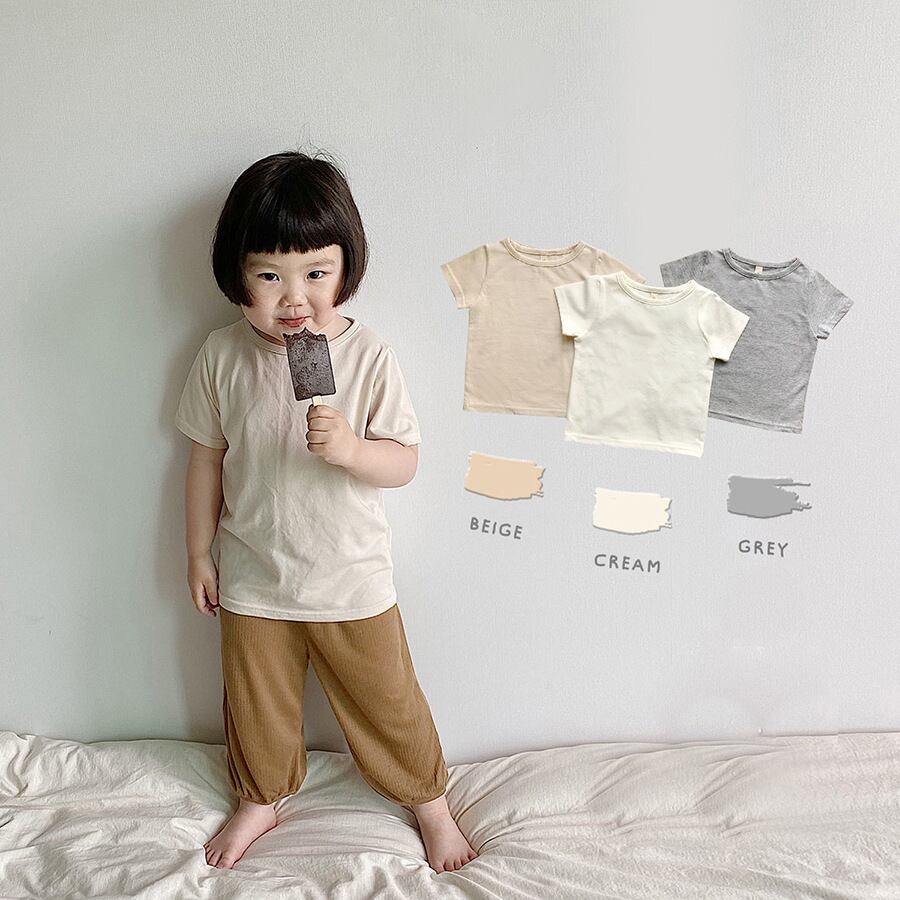 サマーカジュアルTシャツ ソリッド カラーラウンドネックトップス コットン 夏物 Oネック ソリッドカラー 4/12 春夏 SS mi0985736645607 | Sagittarius By Constellation -KIDS&BABY-