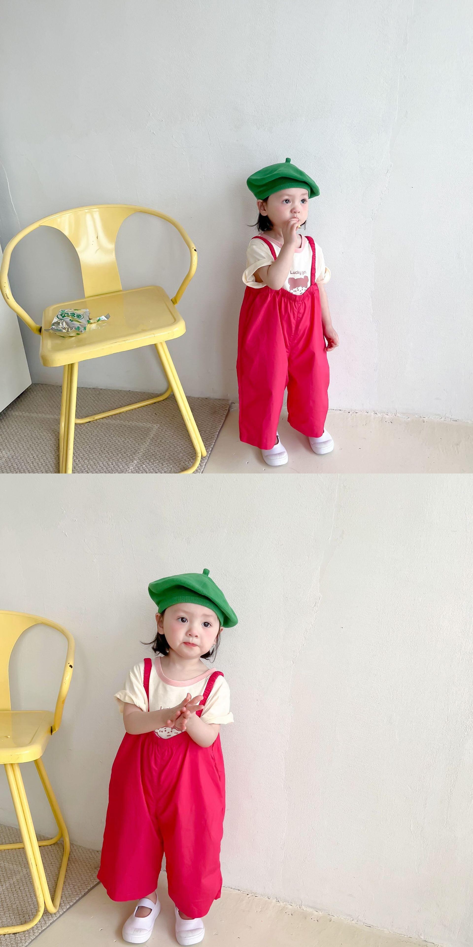 色:ローズレッドのオーバーオール,コントラストカバーTシャツ