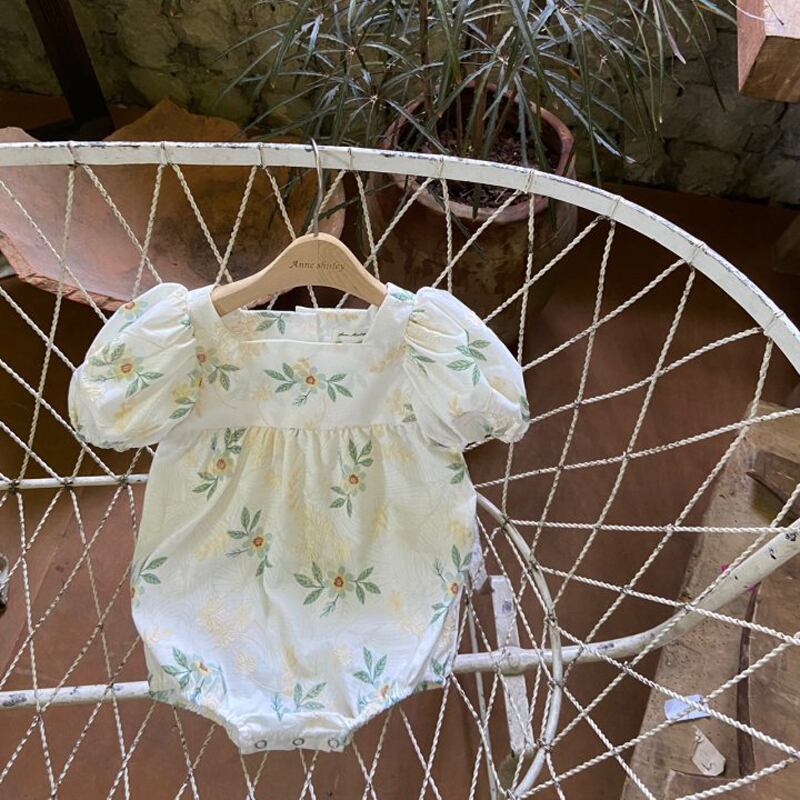 薄手サマースタイルカラー刺繍Flowerデザイン トライアングルロンパース オールインワン スリーブ 夏物 フラワーデザイン スクウェア 4/12 春夏 SS mi0984894111423 | Sagittarius By Constellation -KIDS&BABY-