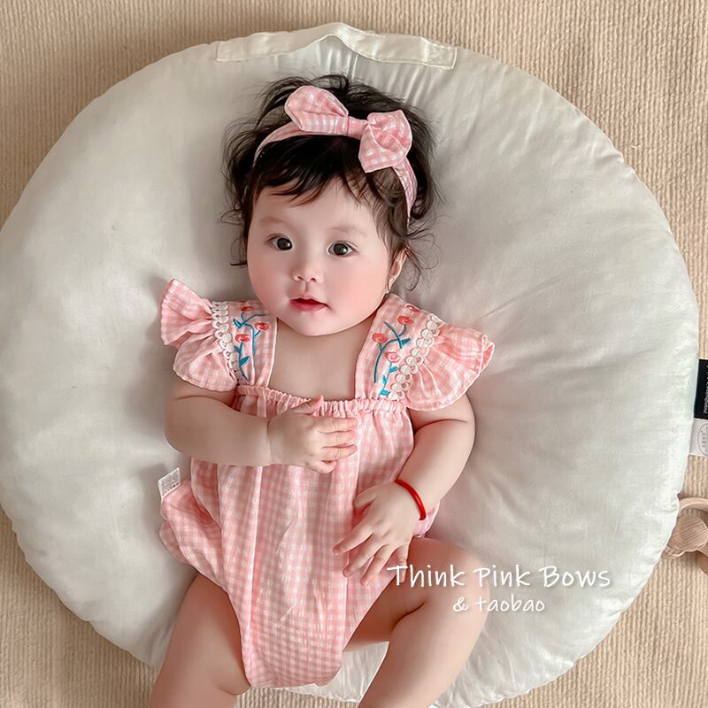 サマー格子柄トライアングルロンパース オールインワン ベルト ピンク 大人ガーリー スウィート キュート カジュアル 夏物 ハーネス 4/12 春夏 SS mi0953301465470 | Sagittarius By Constellation -KIDS&BABY-