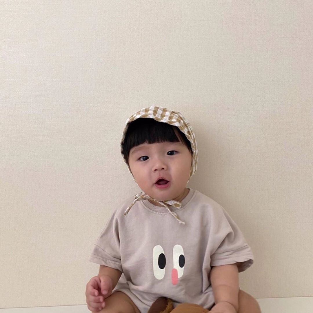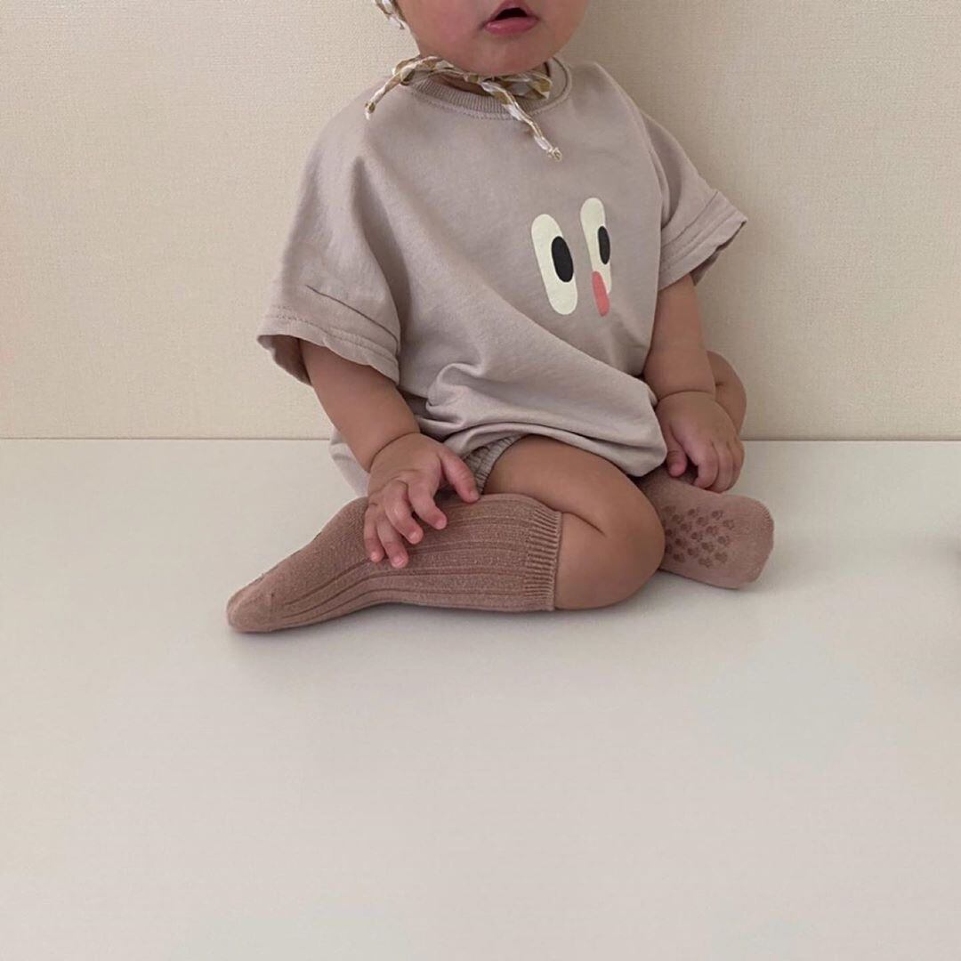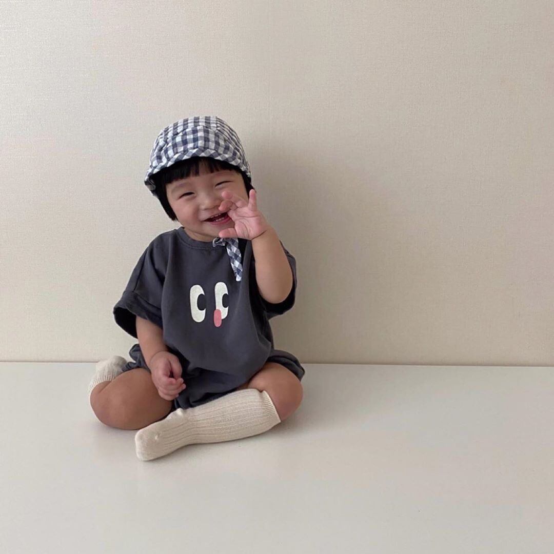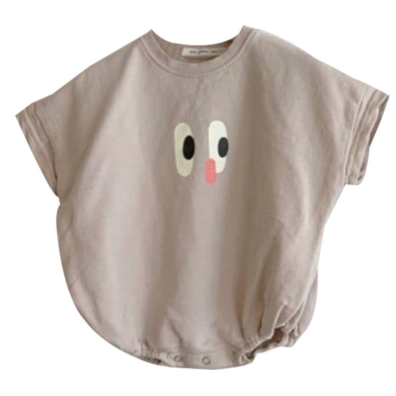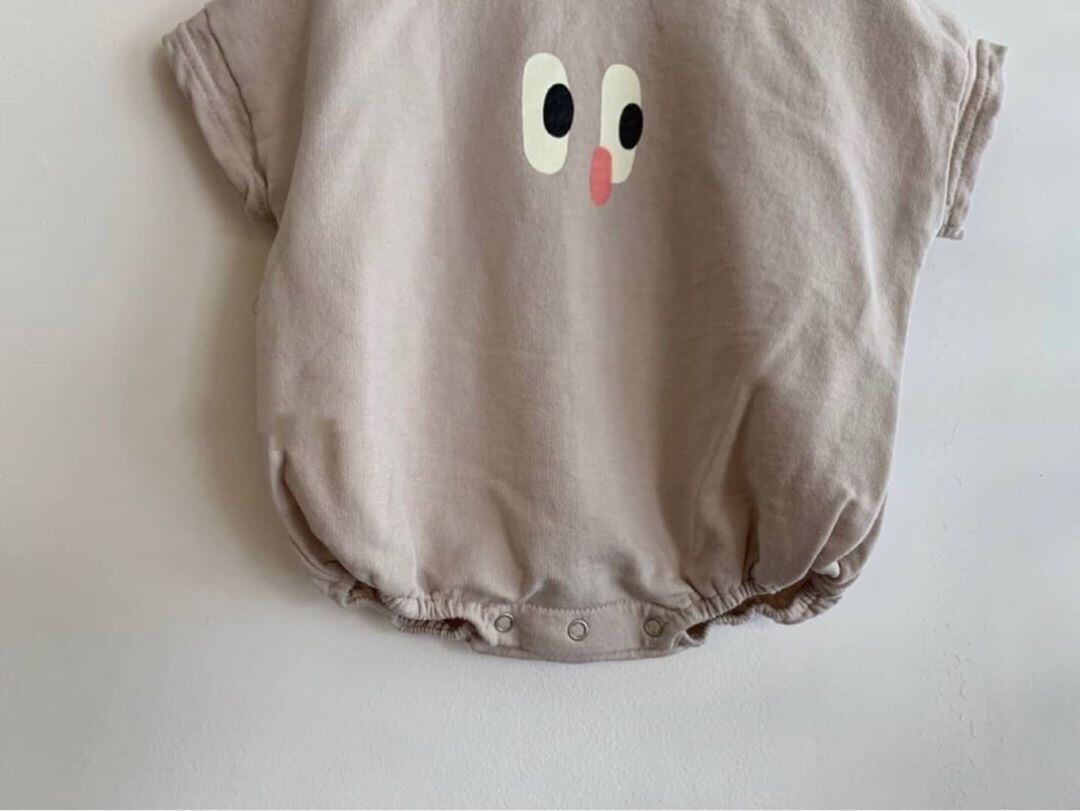 色:ダークベージュ半袖ビッグアイズロンパース,ダークグレーの半袖ビッグアイロンパース