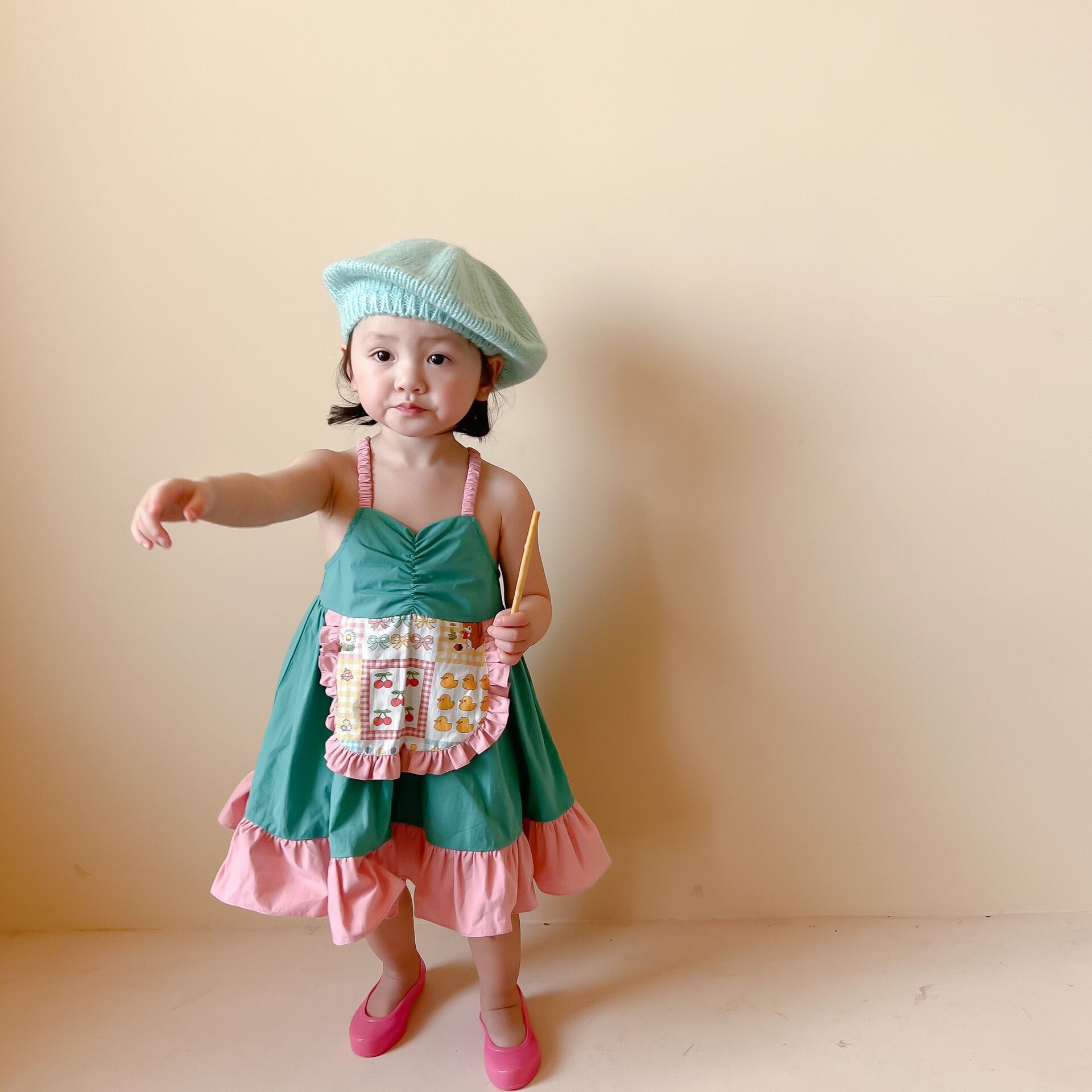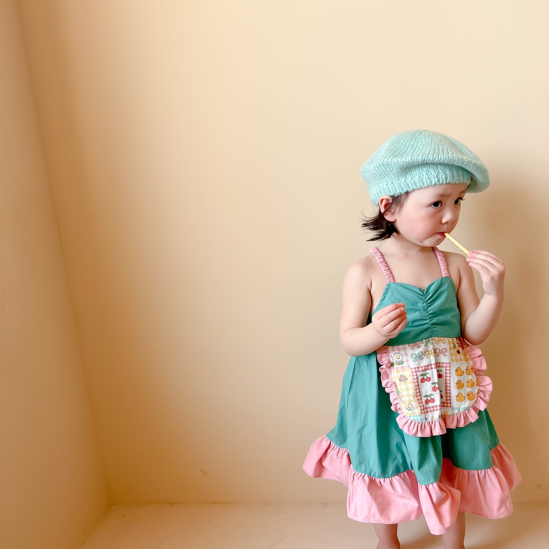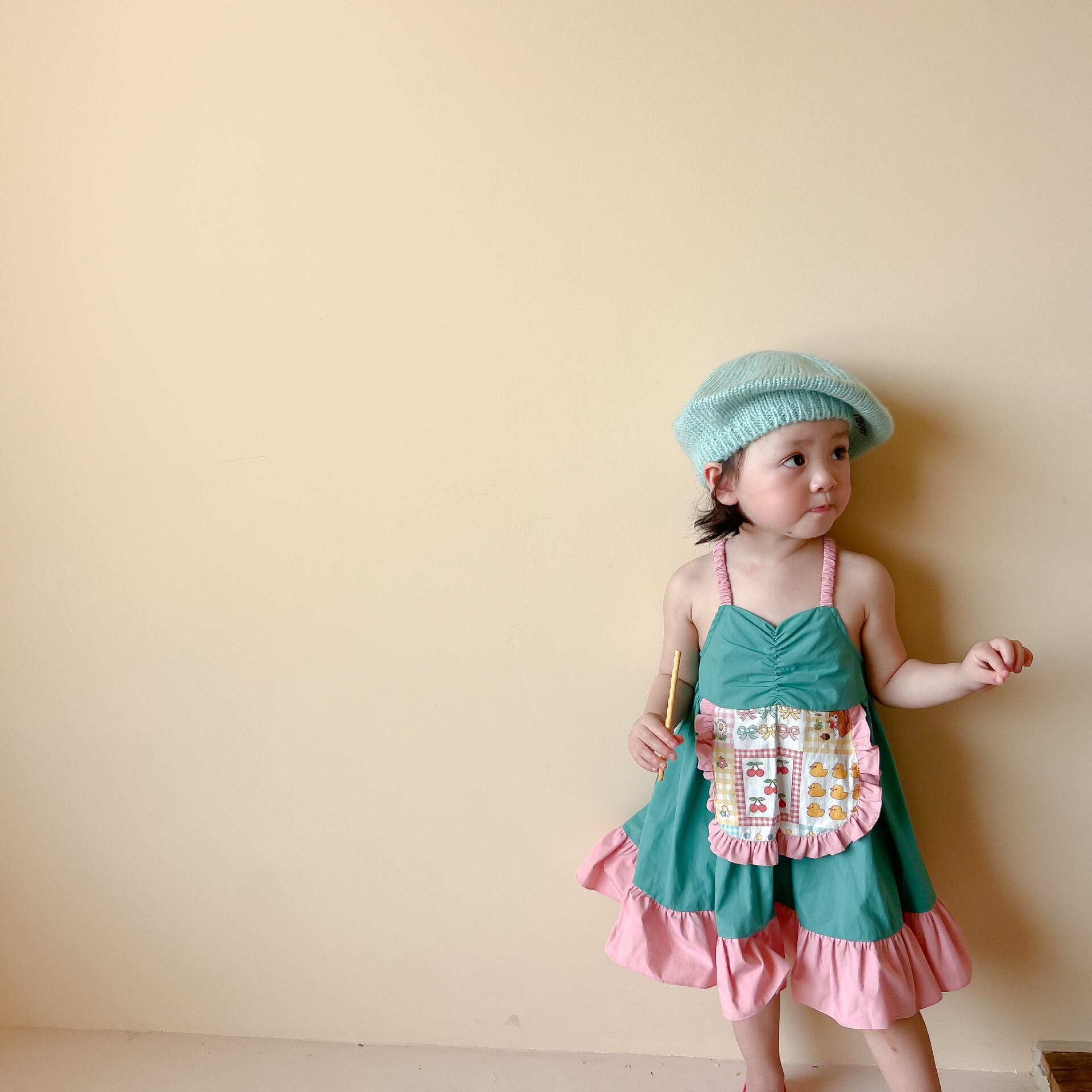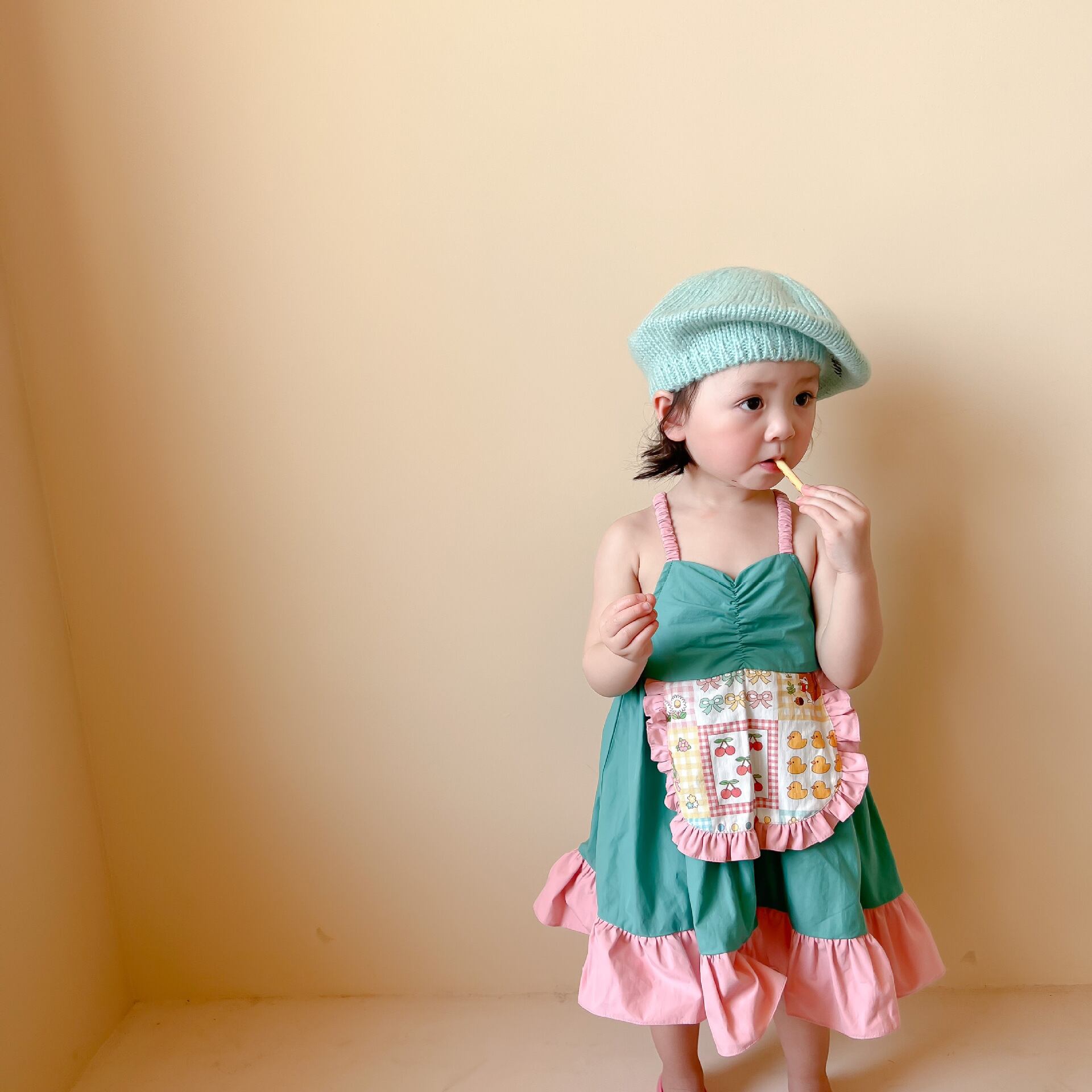 色:小さな黄色いアヒルのサスペンダードレス