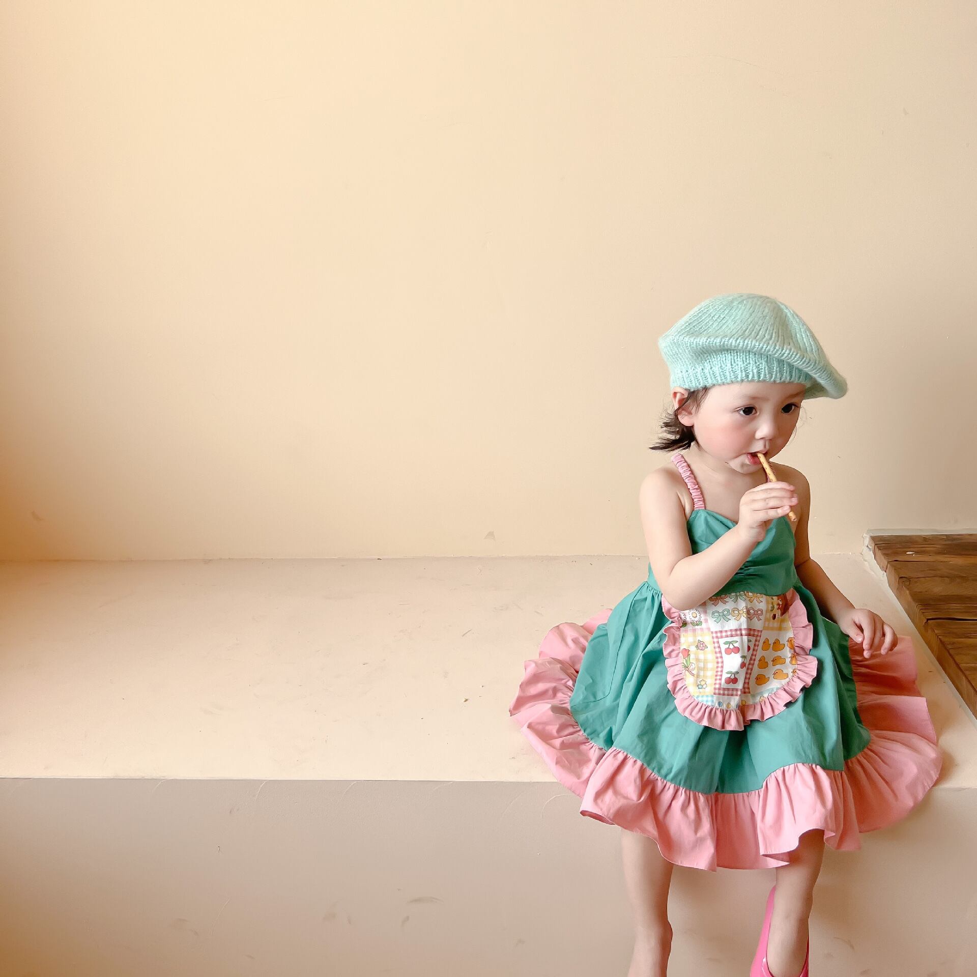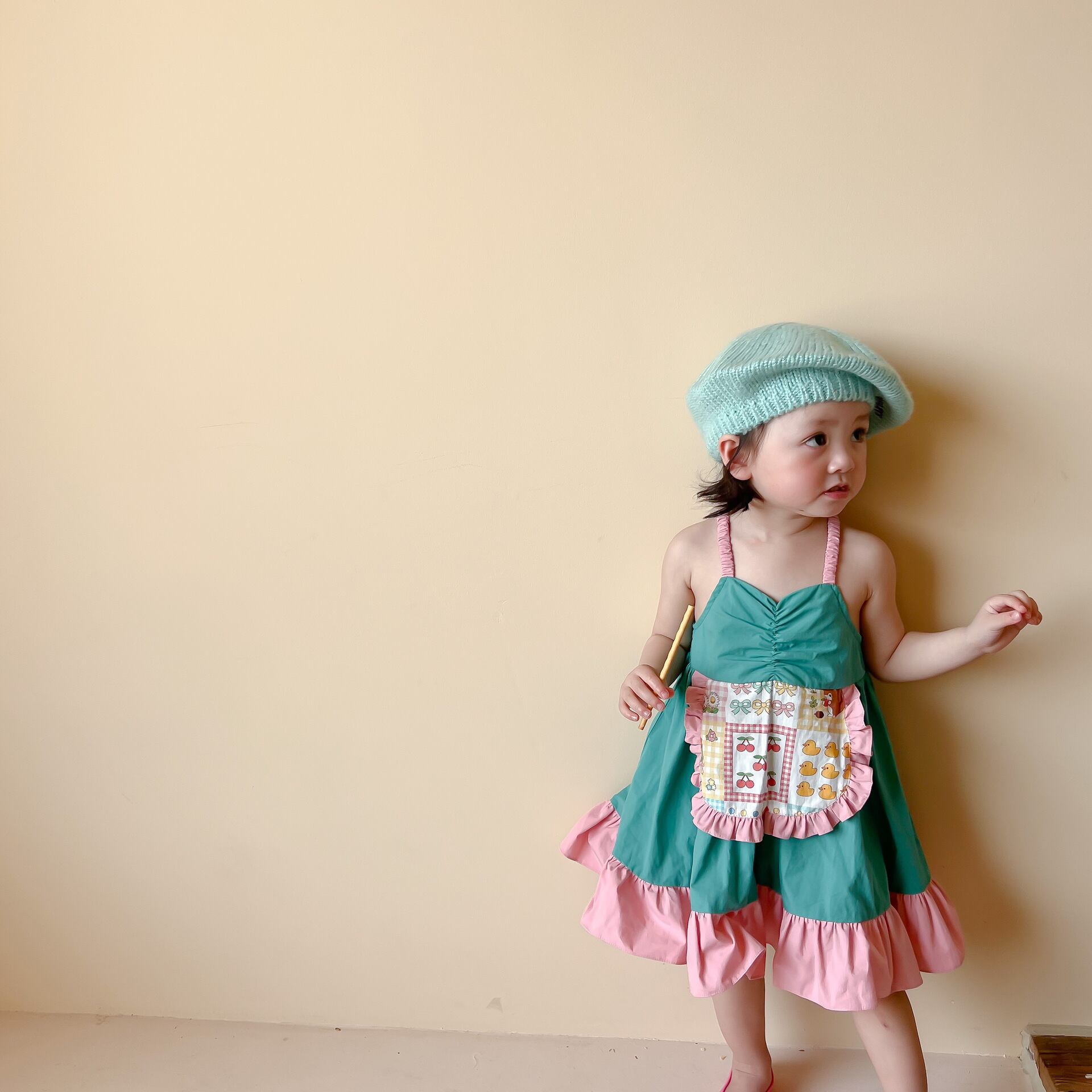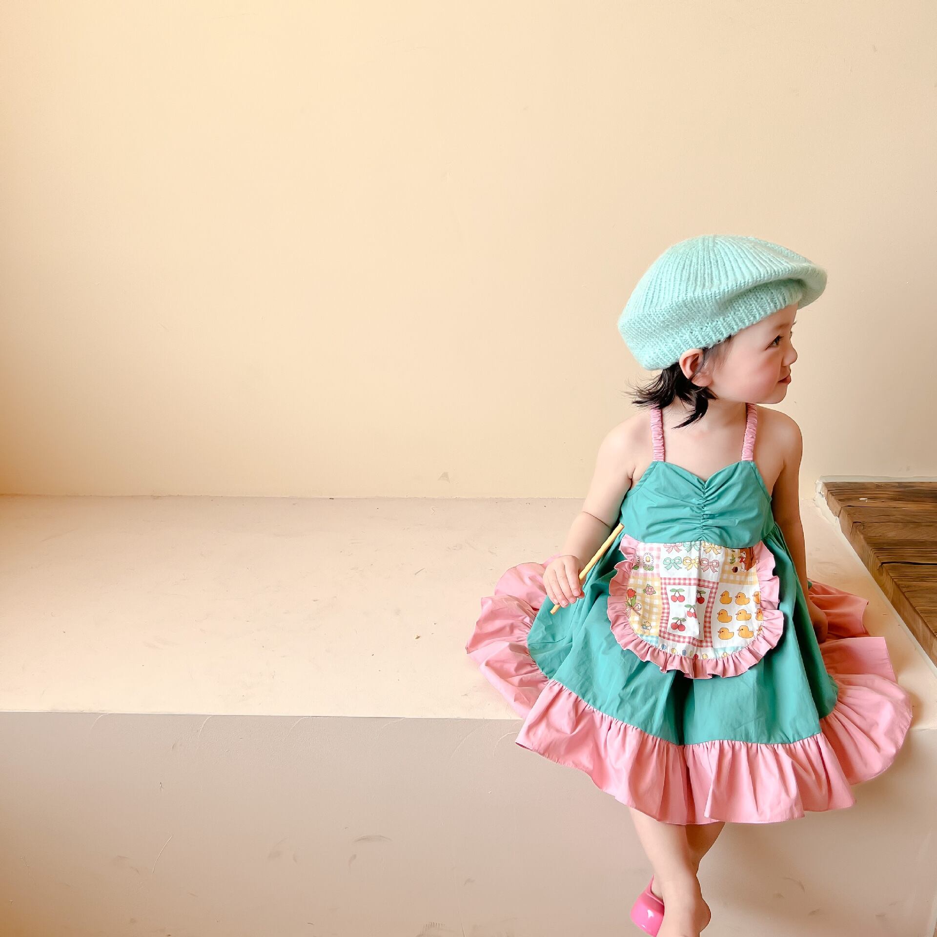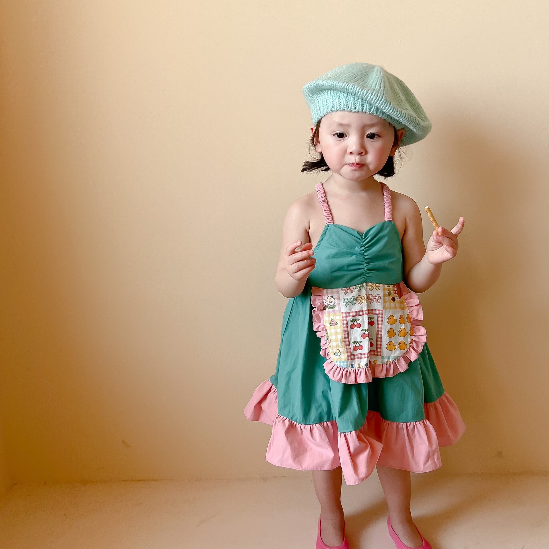 色:小さな黄色いアヒルのサスペンダードレス