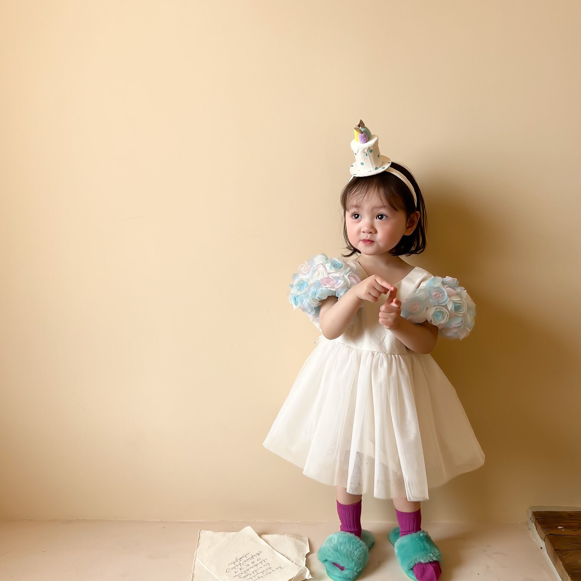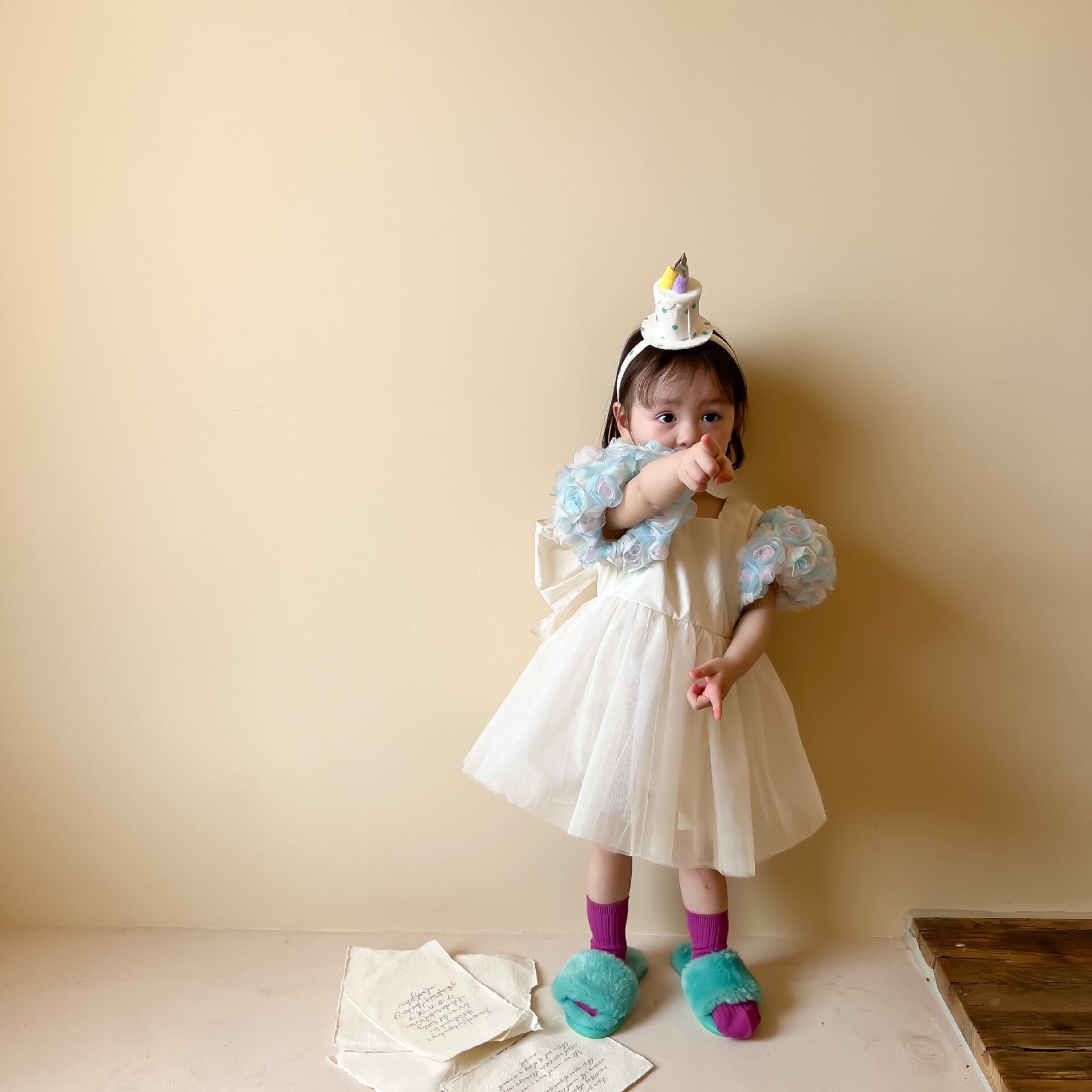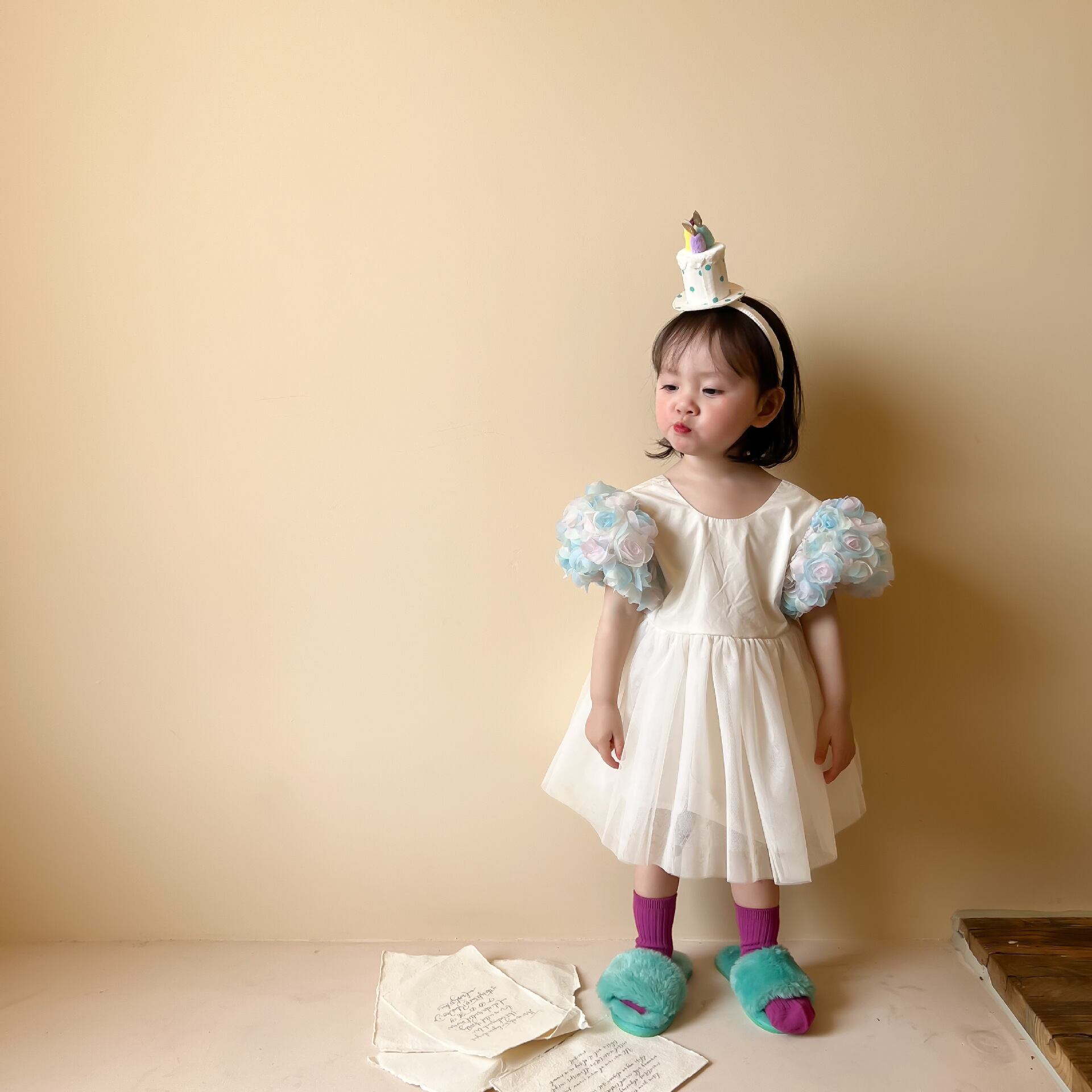 色:花の袖のプリンセスドレス