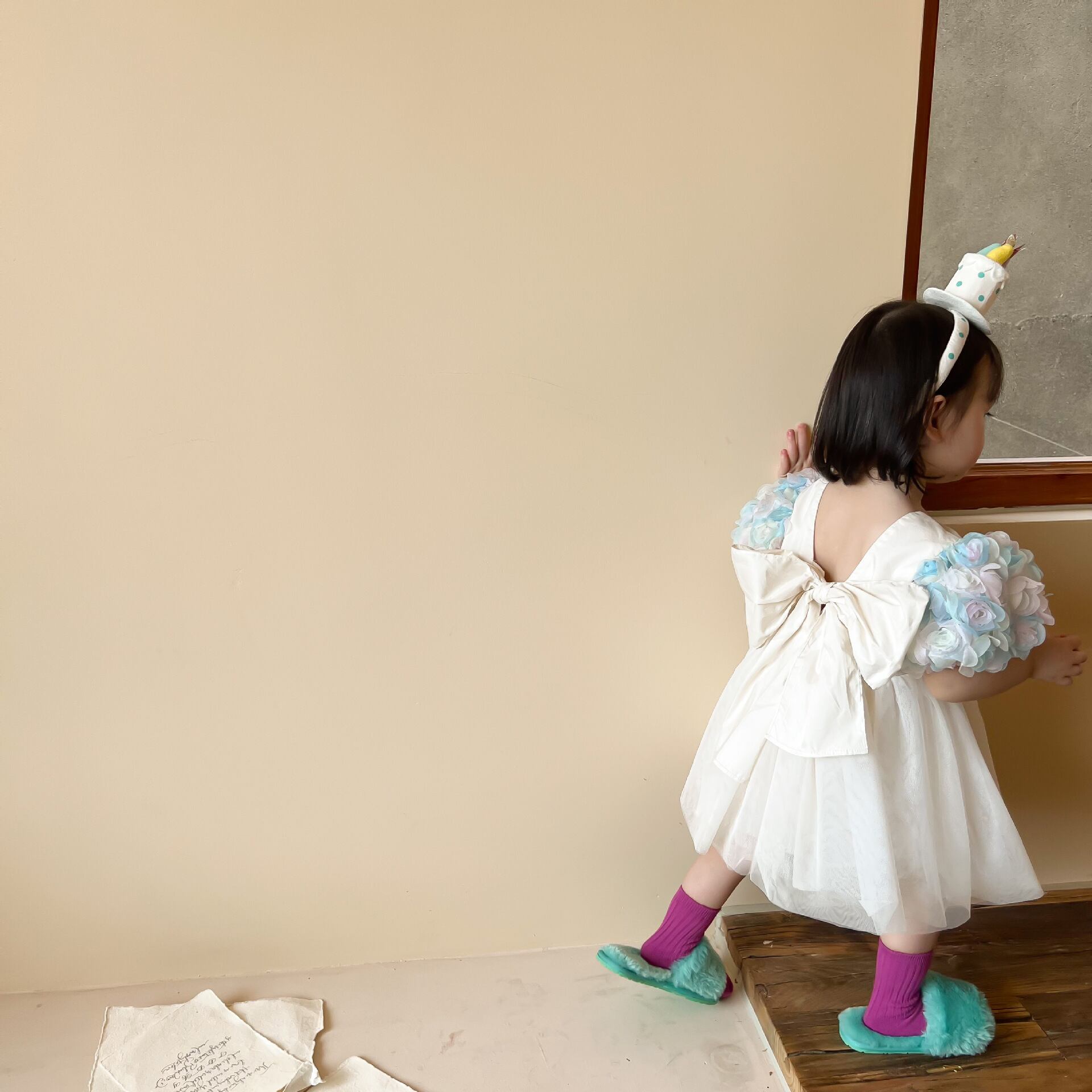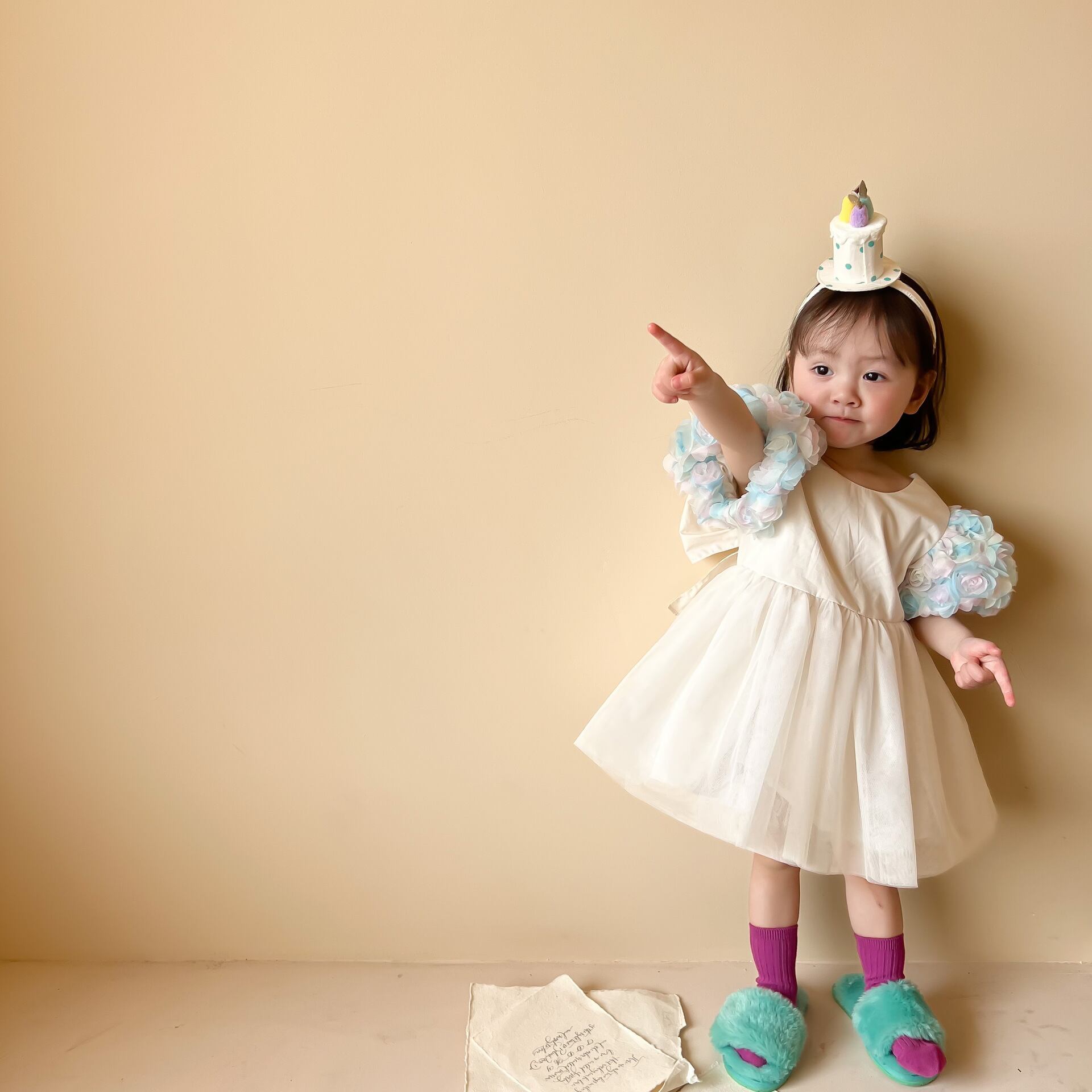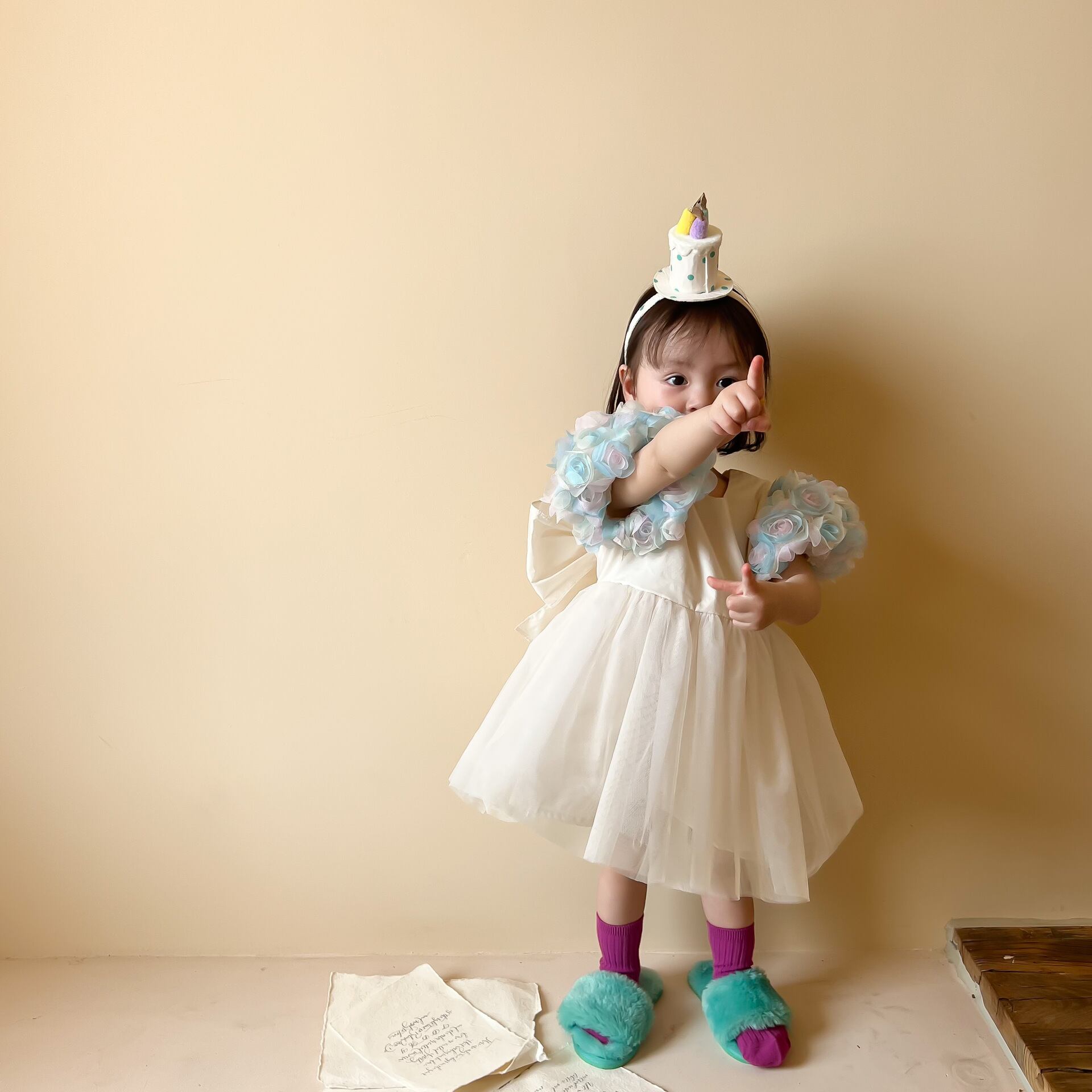 色:花の袖のプリンセスドレス