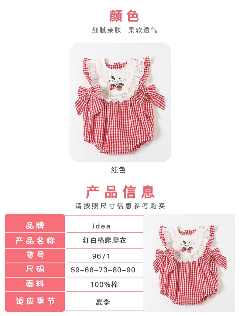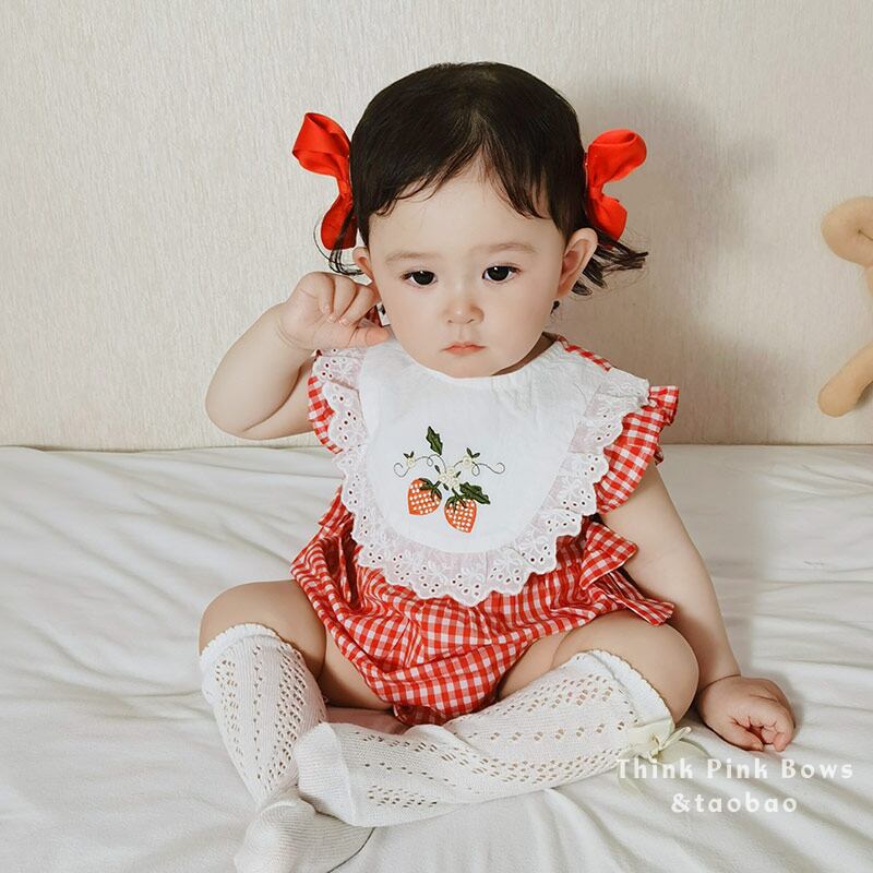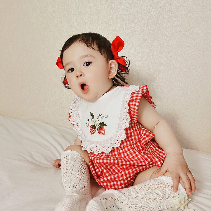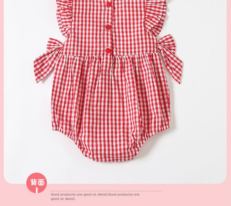 サマースタイルロンパース オールインワン 格子柄 レッド 刺繍 夏物 4/12 春夏 SS mi0950303455994 | Sagittarius By Constellation -KIDS&BABY-