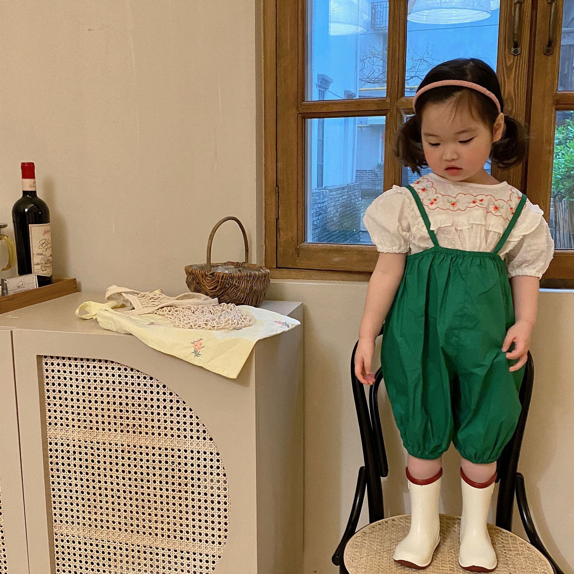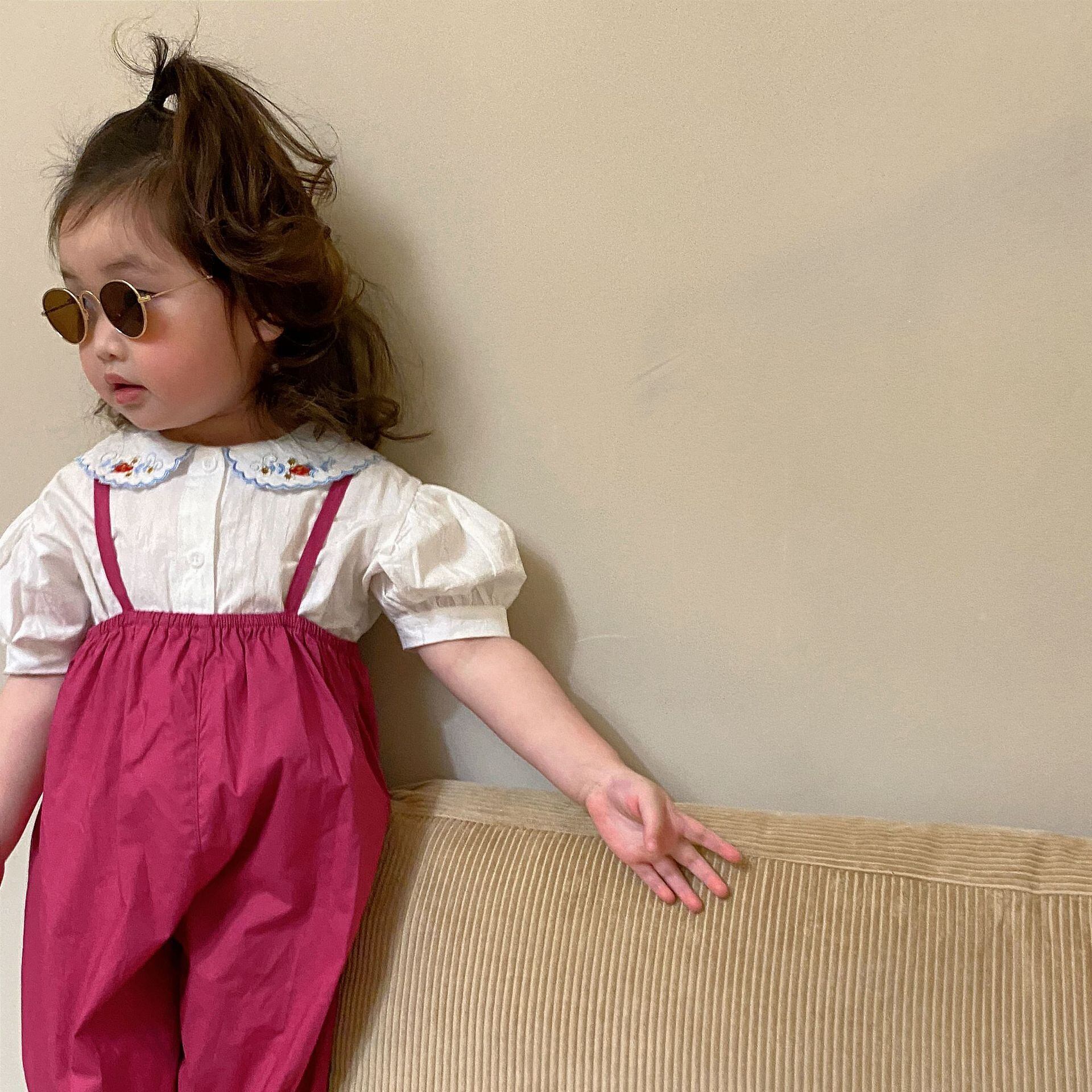 色:刺繡人形の襟シャツ,一列フローラルシャツ,スクエアネック刺繡シャツ,ドラゴンフルーツのオーバーオール,緑のオーバーオール