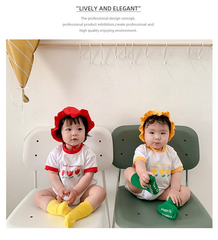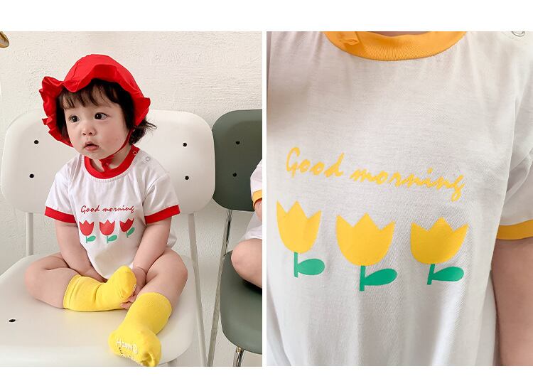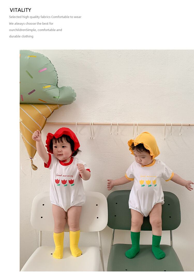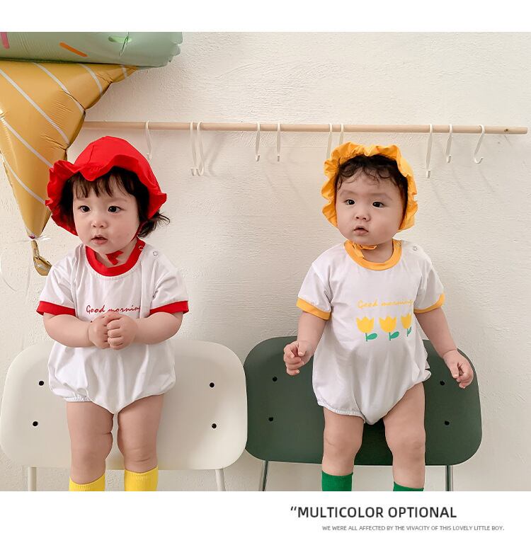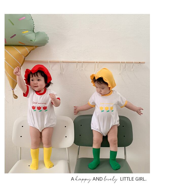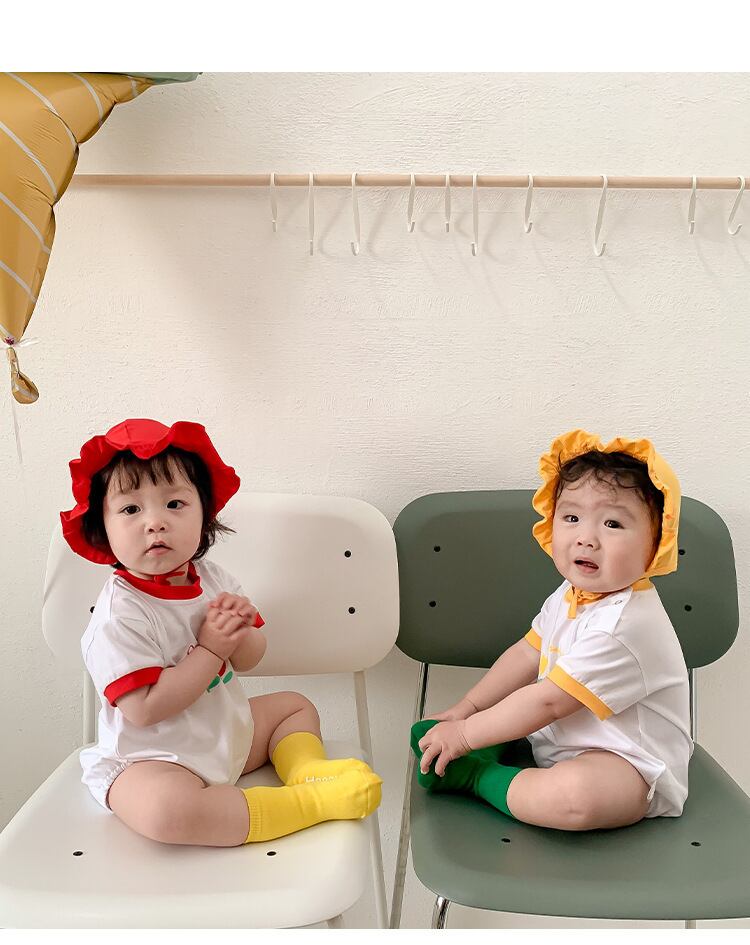 サマーFlowerデザイン プリント柄トライアングルロンパース オールインワン カラーカジュアル 帽子 夏物 フラワーデザイン 4/12 春夏 SS mi0925037292527 | Sagittarius By Constellation -KIDS&BABY-