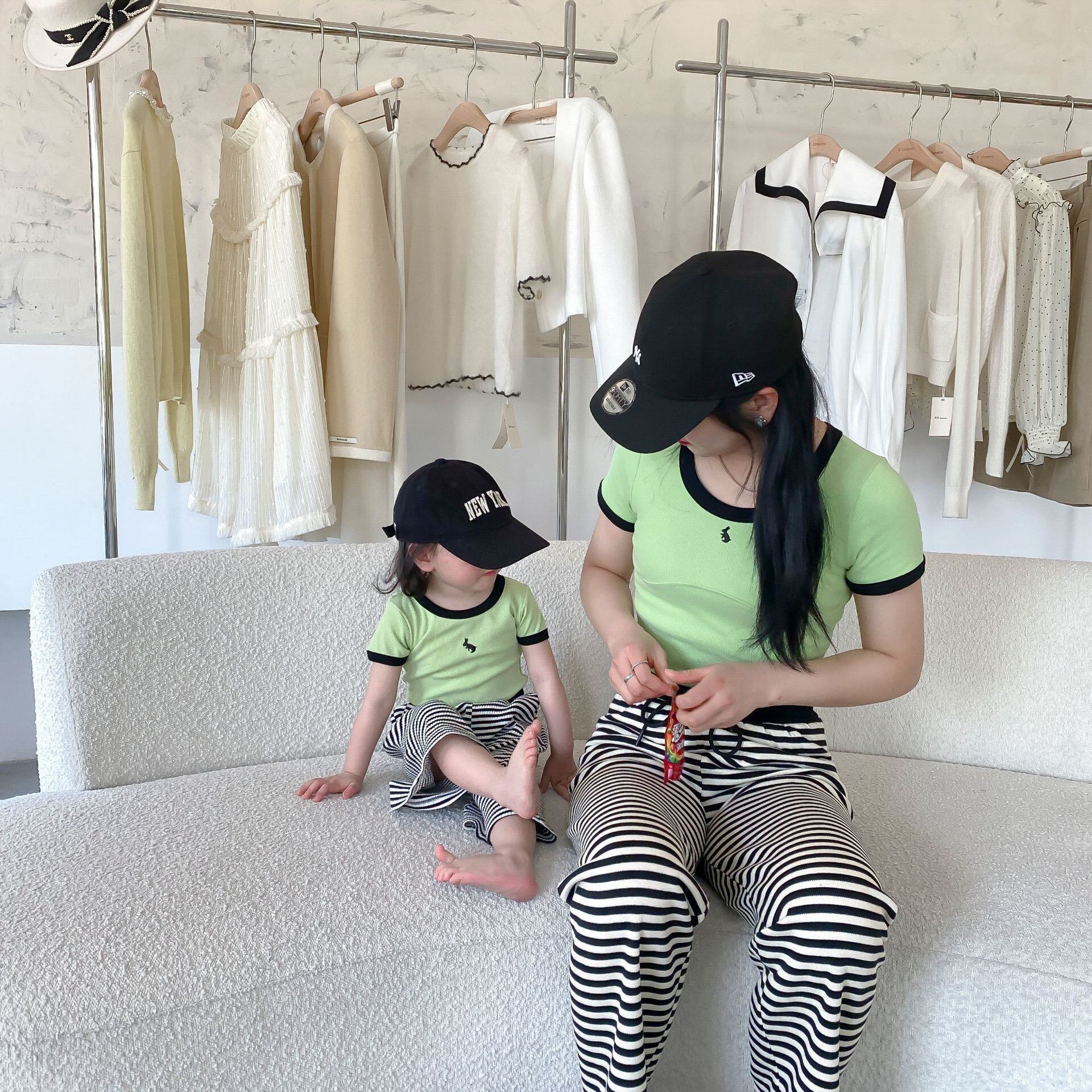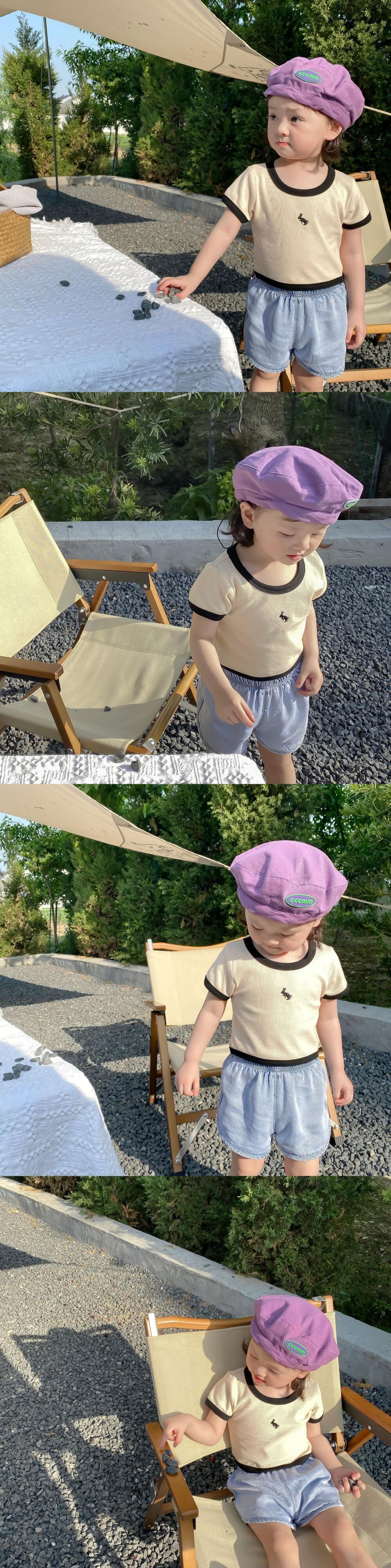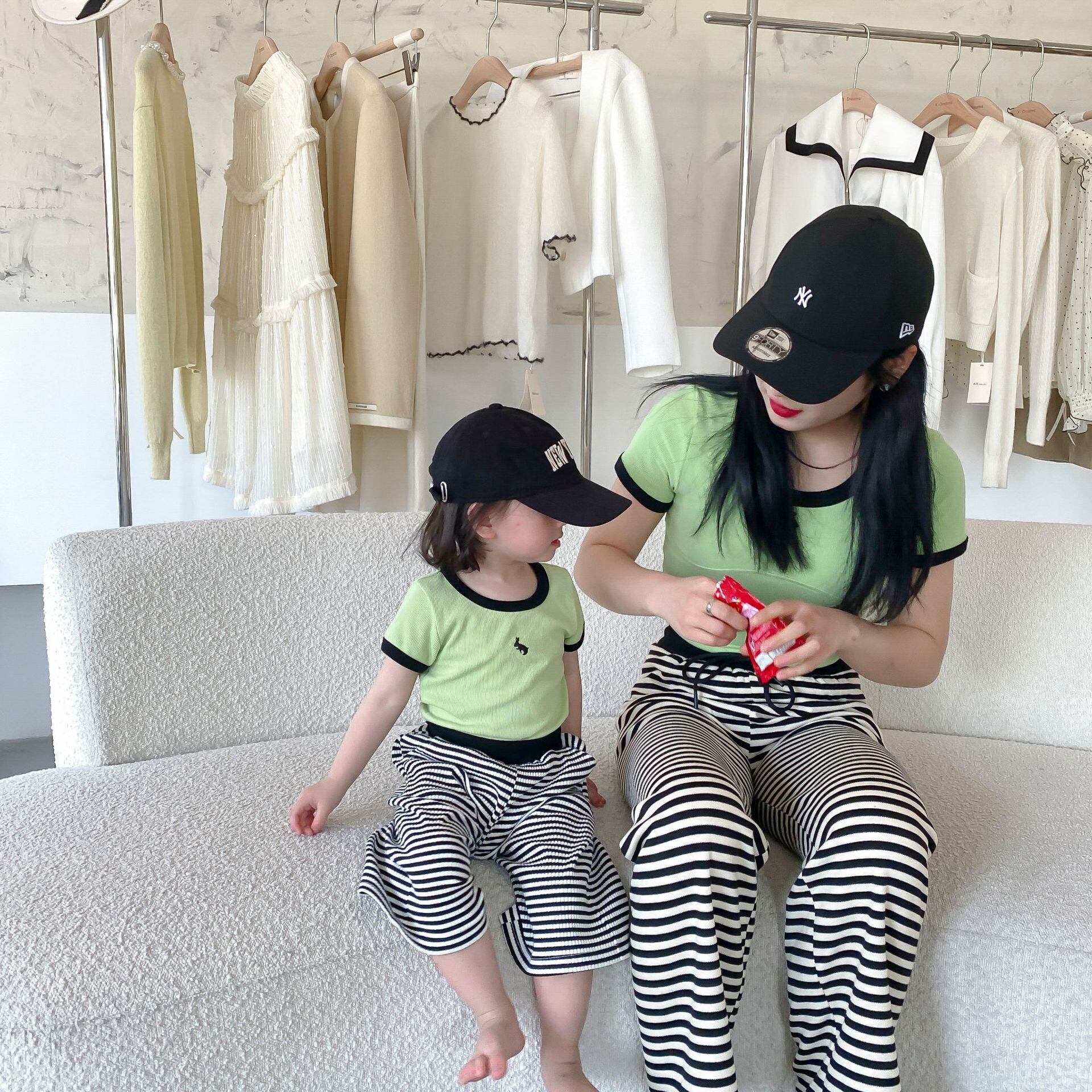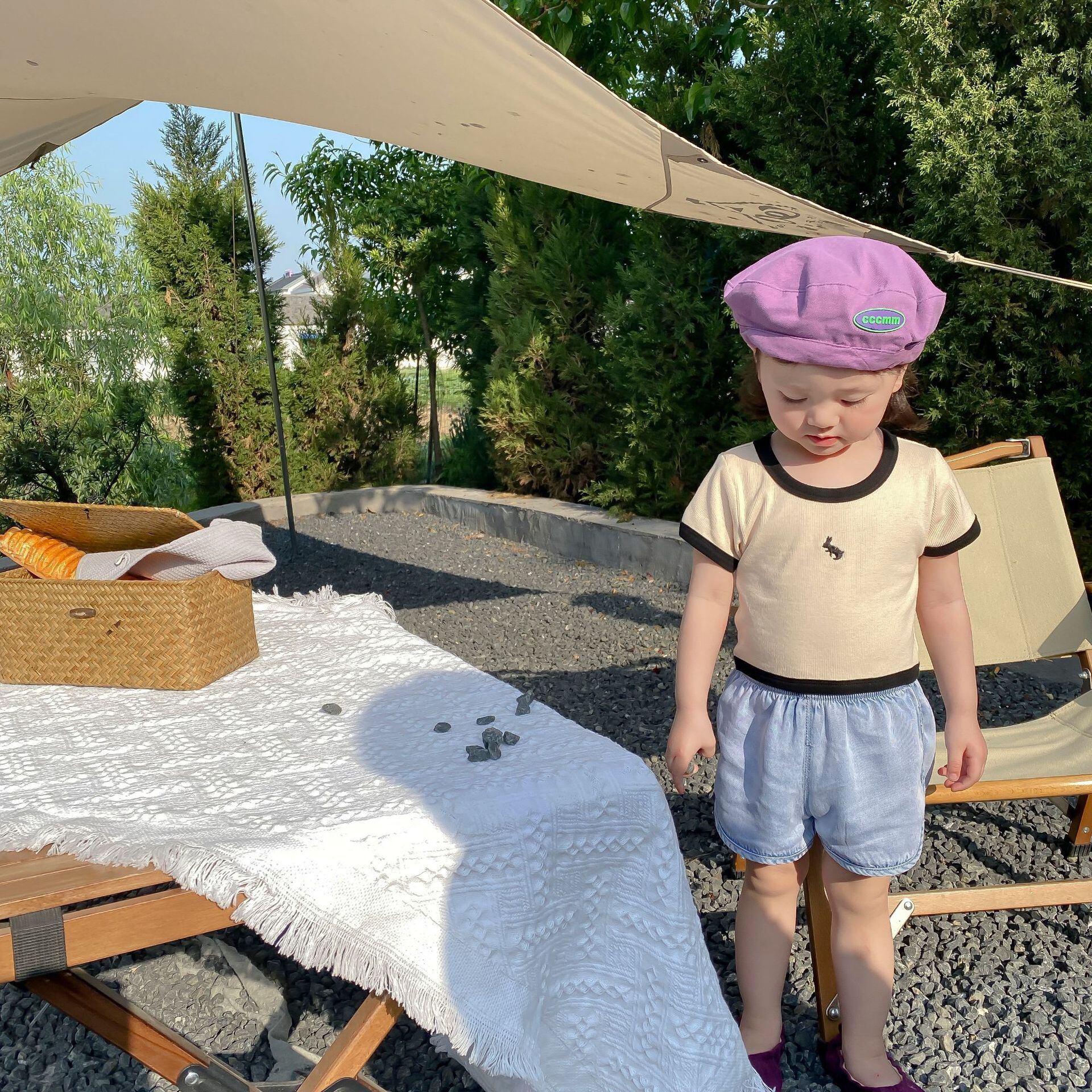 色:刺繡うさぎベージュTシャツ,刺繡うさぎグリーンTシャツ,ストライプパンツ,デニムショートパンツ