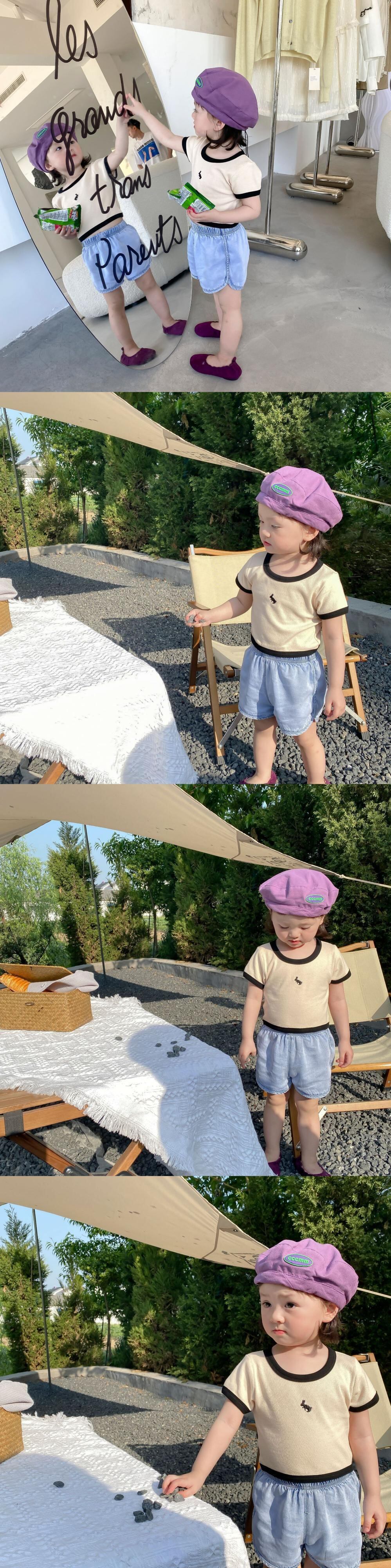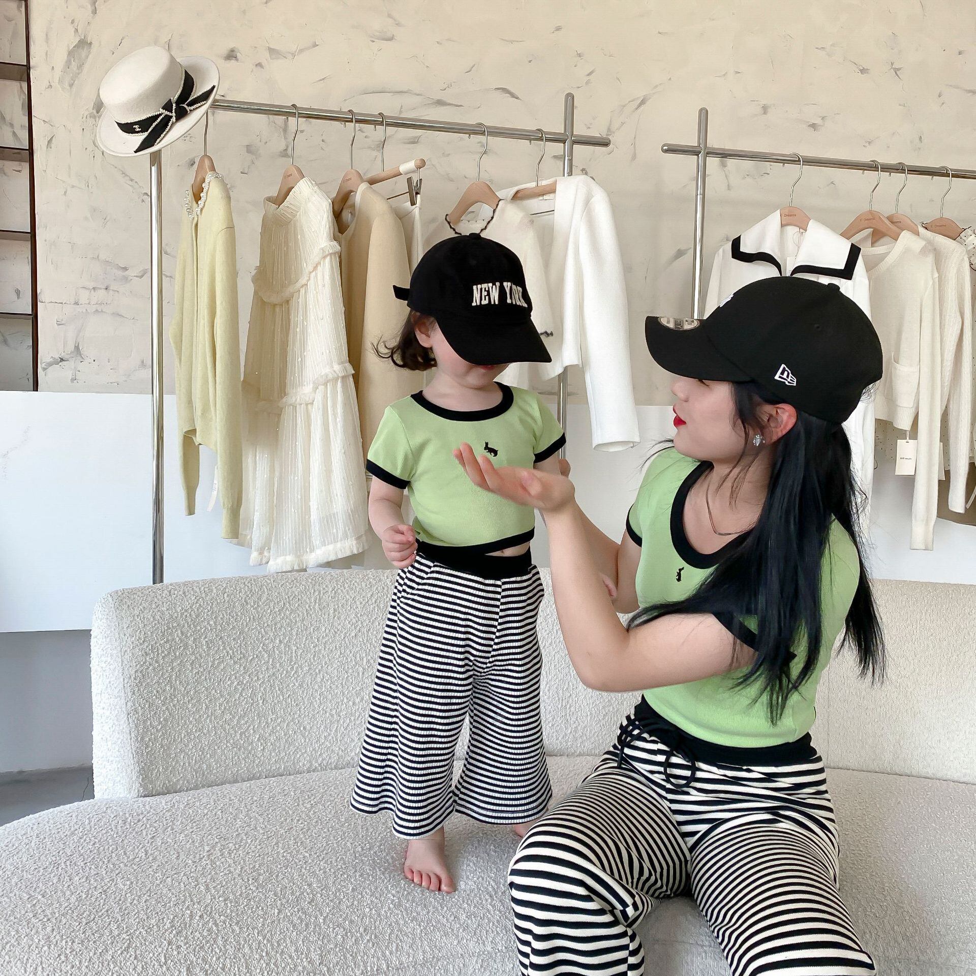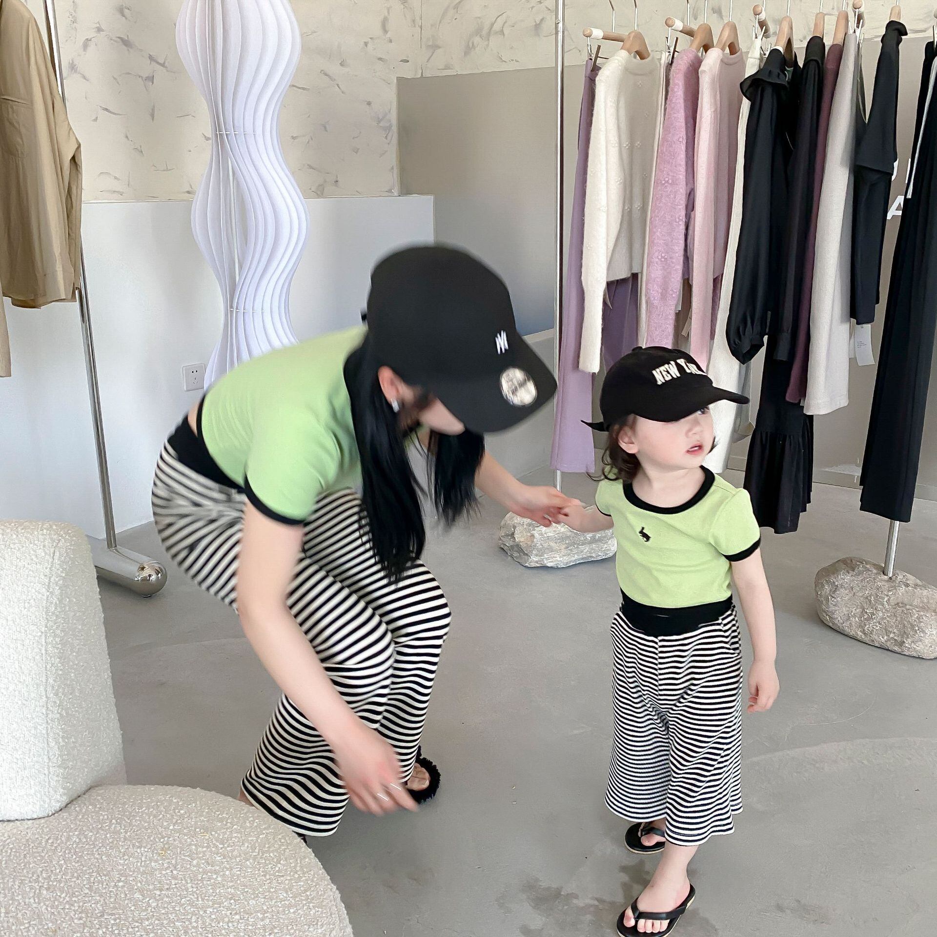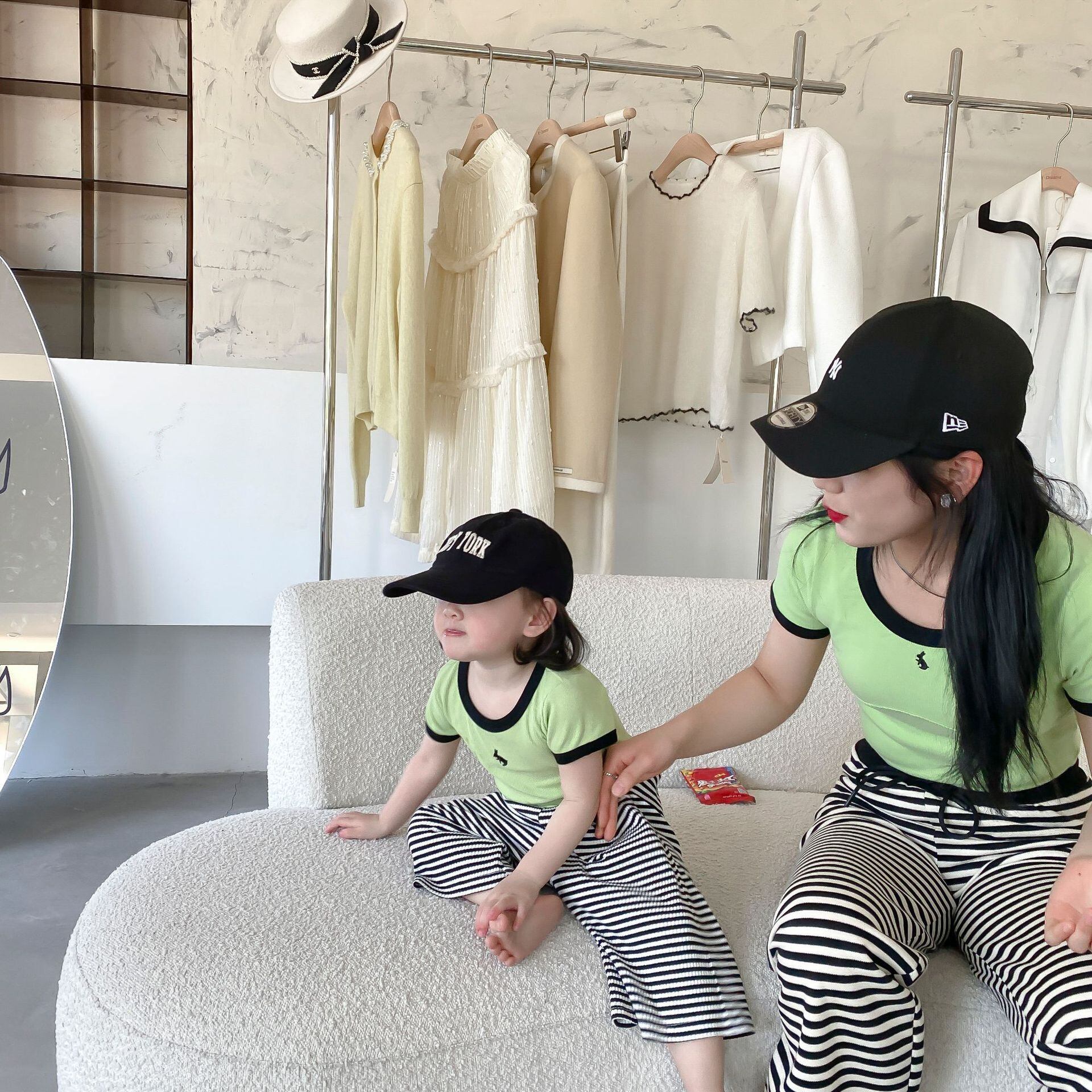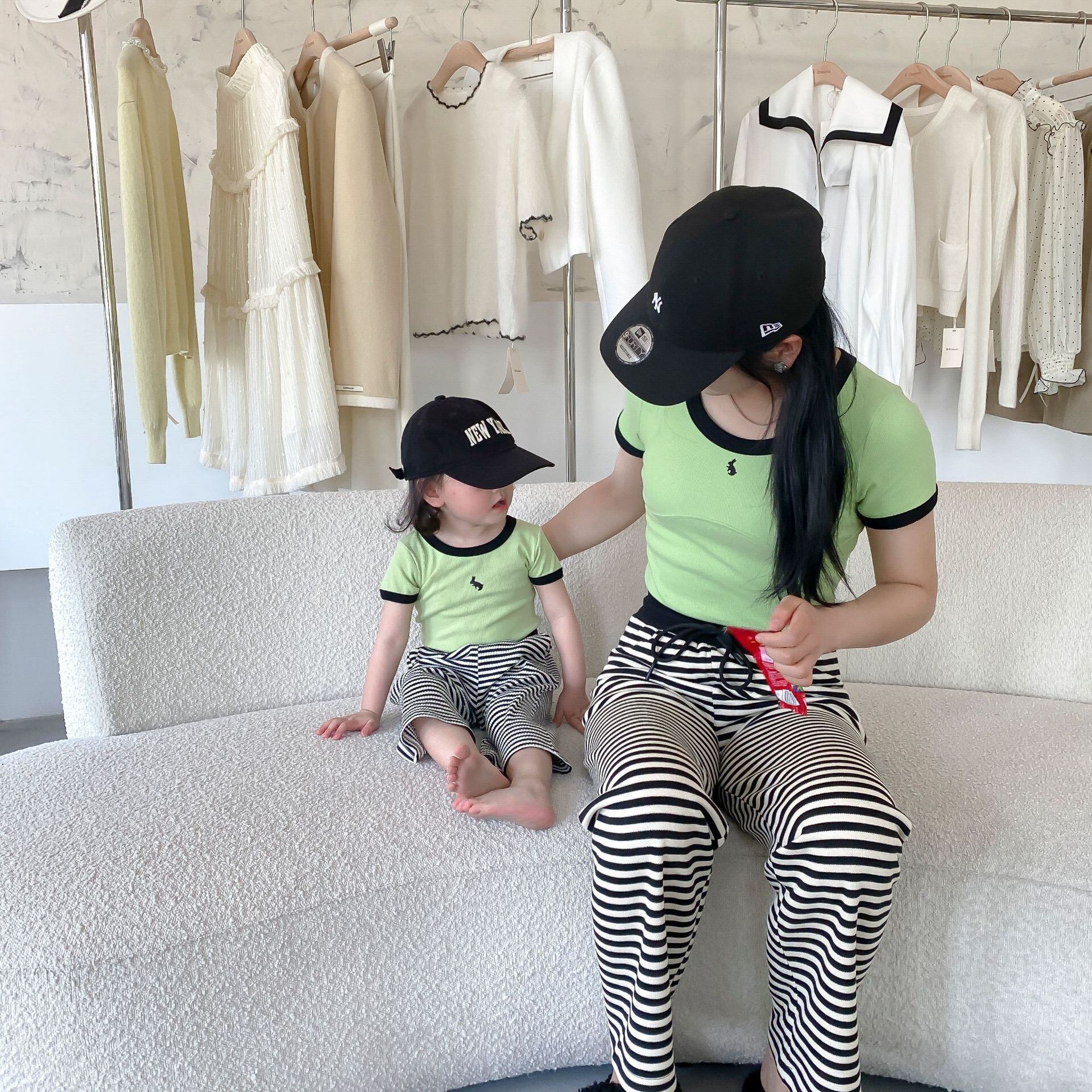 色:刺繡うさぎベージュTシャツ,刺繡うさぎグリーンTシャツ,ストライプパンツ,デニムショートパンツ