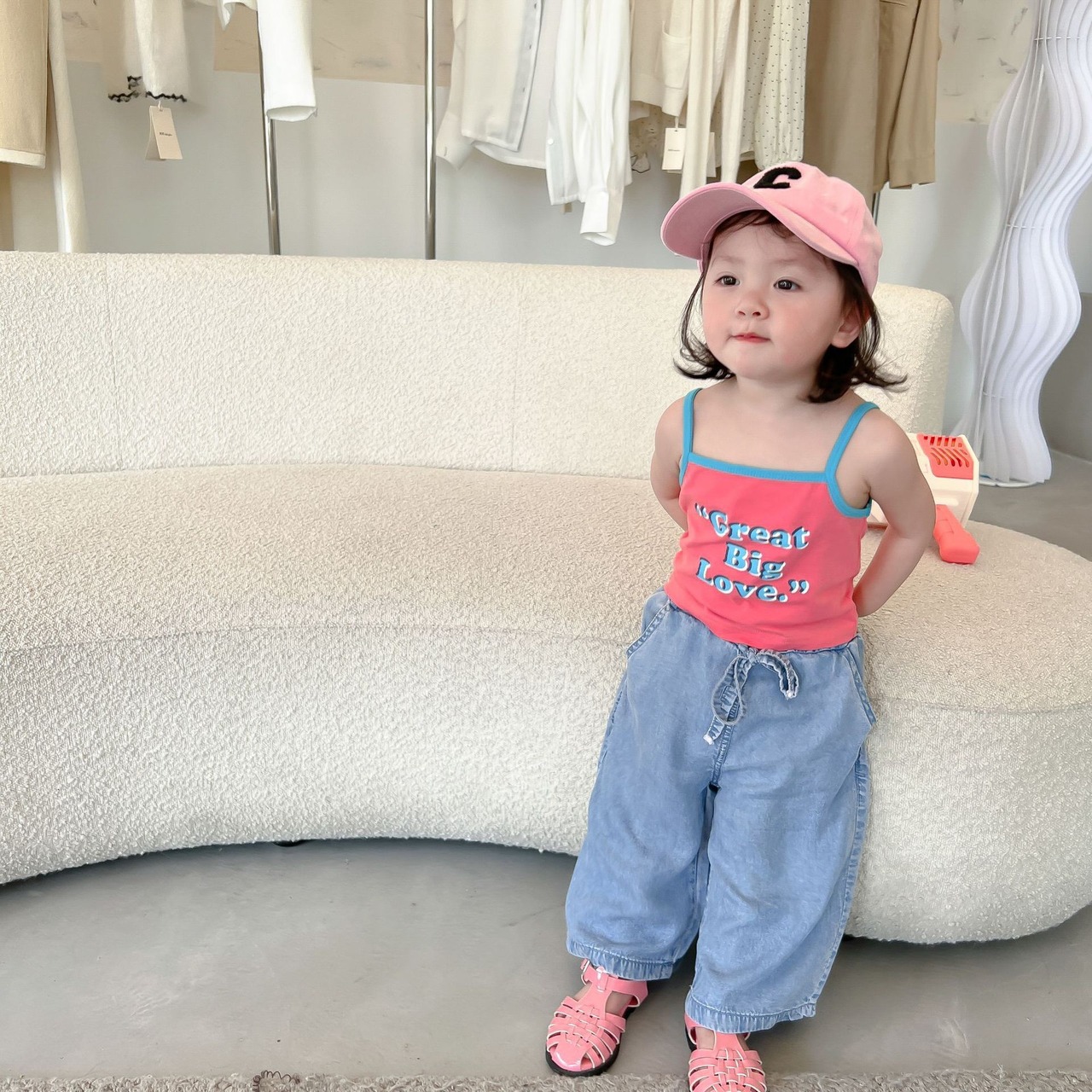 色:ライトブルーのトップ,ローズレッドトップ,ピンクのパンツ,ブルージーンズ