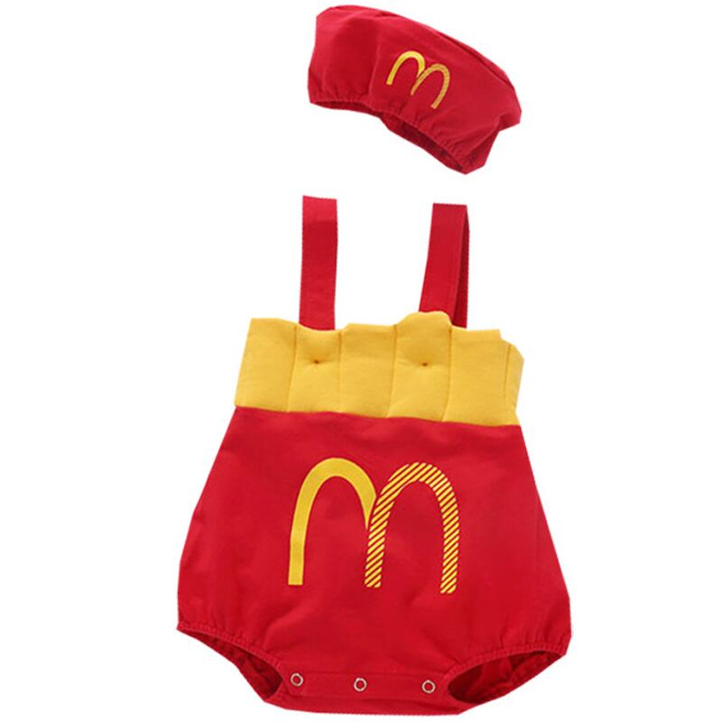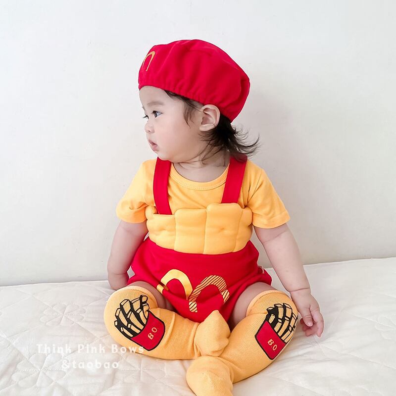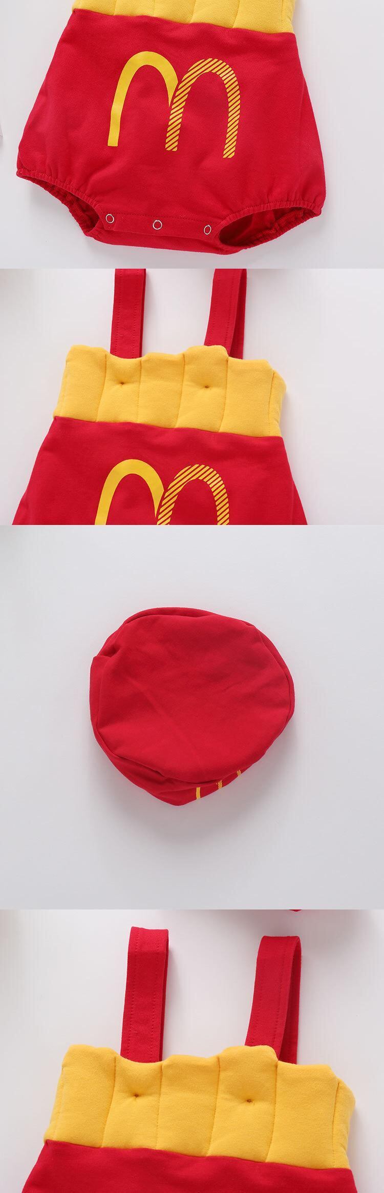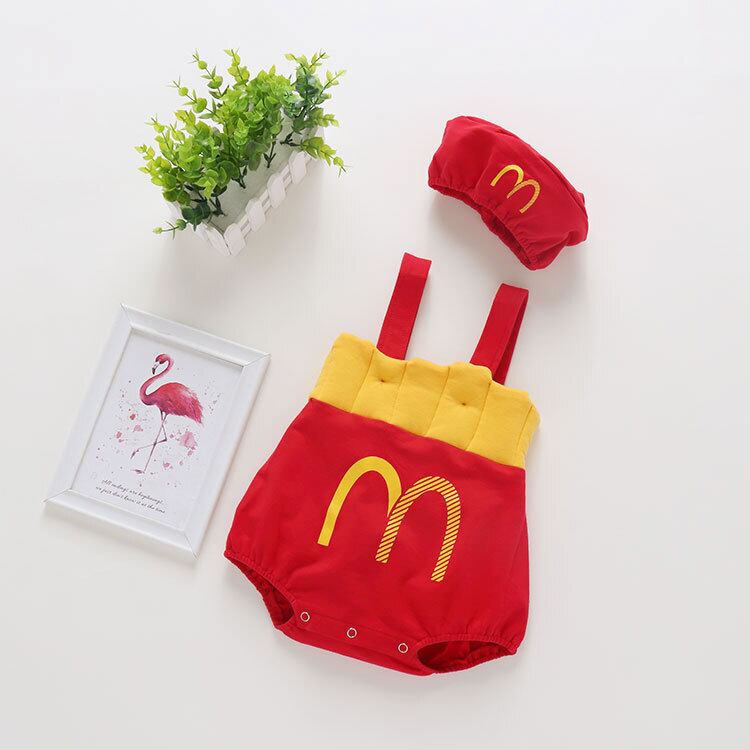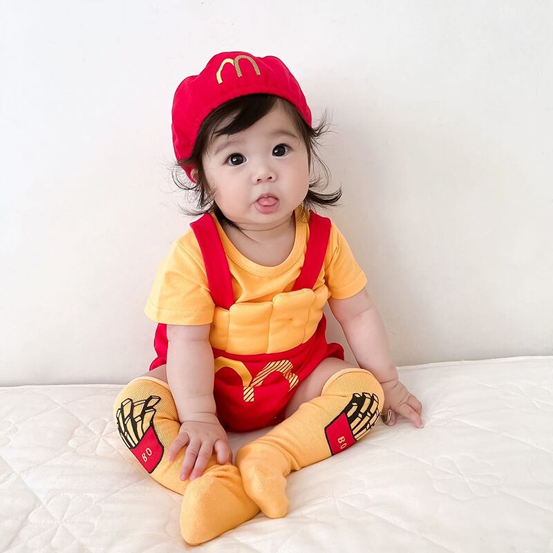 色:フライドポテトの帽子+ロンパース,黄色の半袖Tシャツ,フライドポテト,ロンパース+帽子+ショートイエローTシャツ,ロンパース+帽子+Tシャツ+靴下