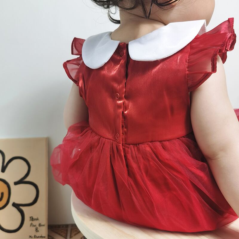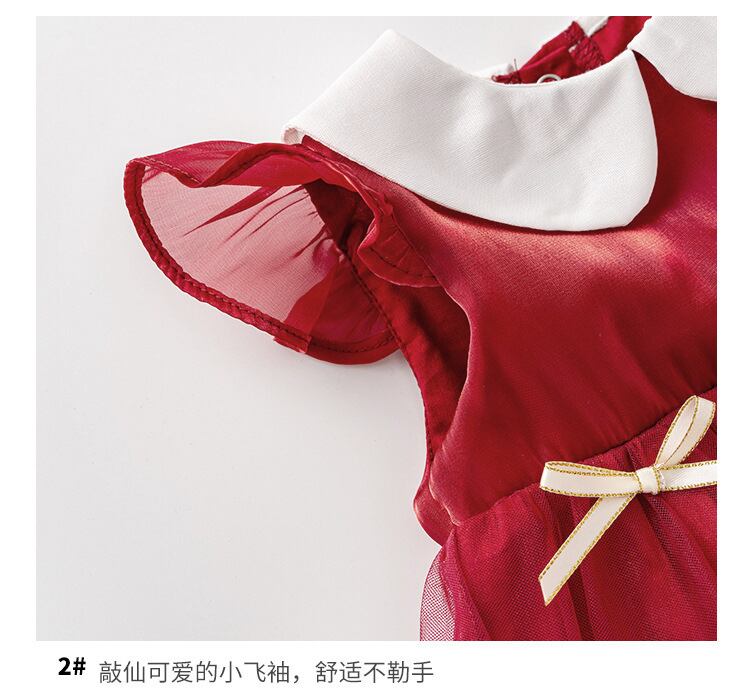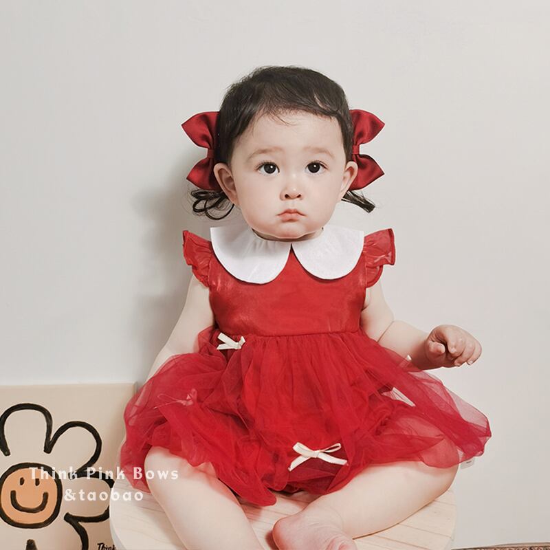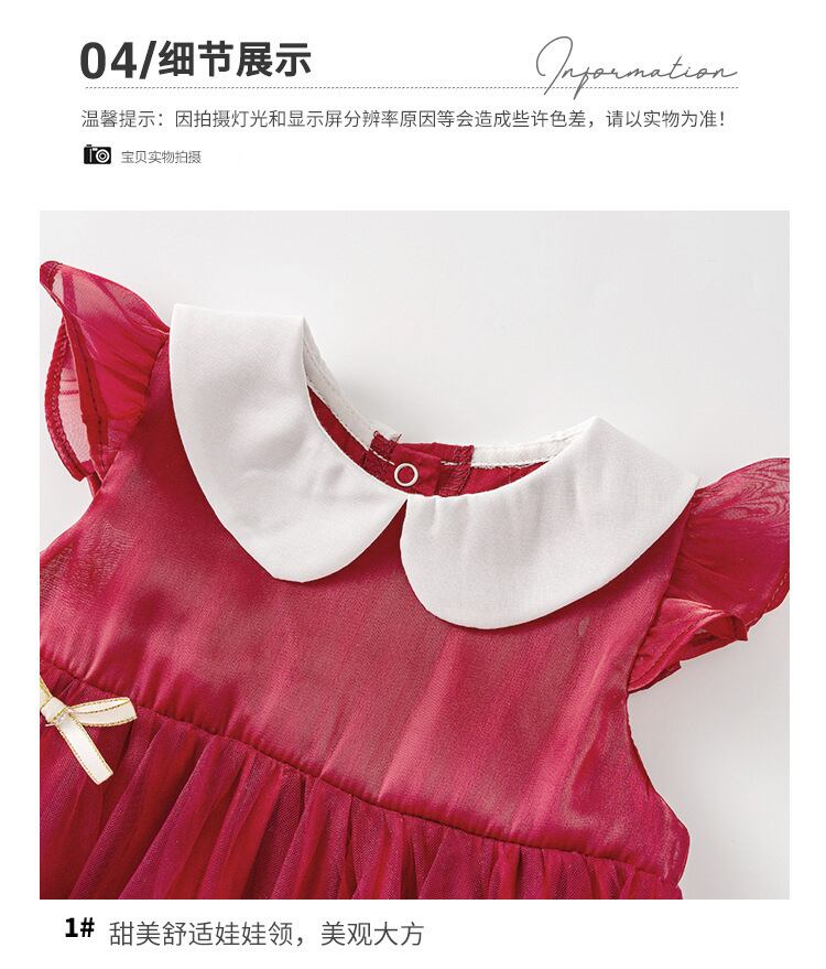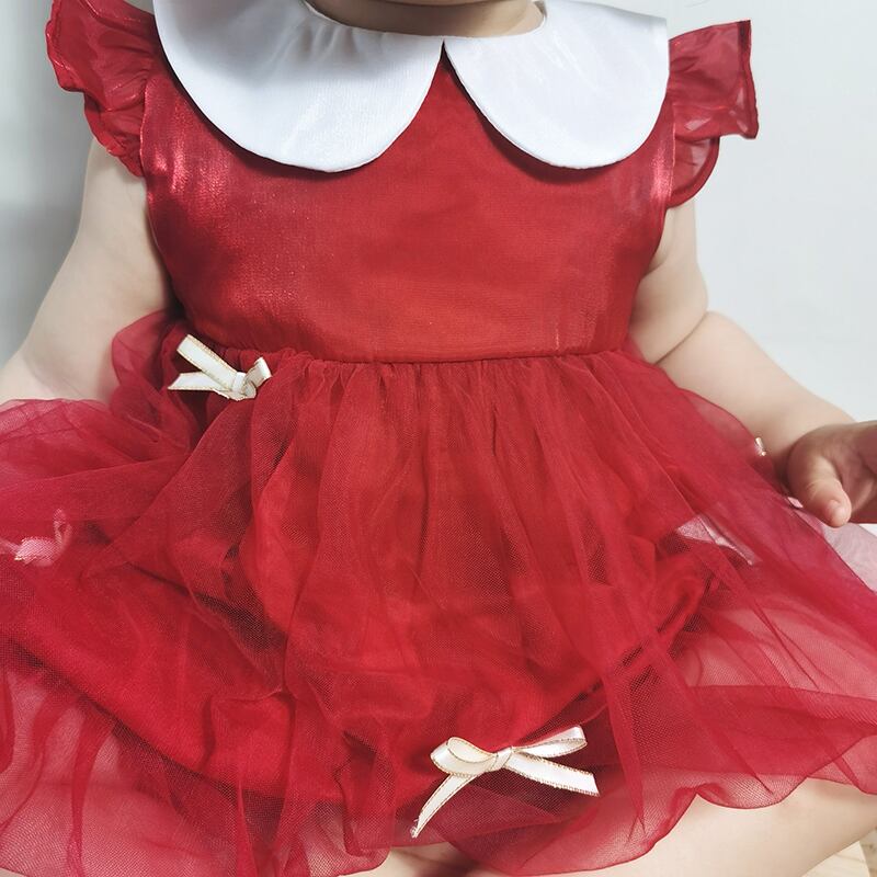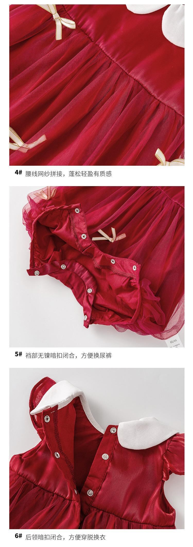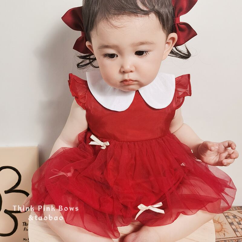 色:ブルゴーニュメッシュボウ半袖ロンパース