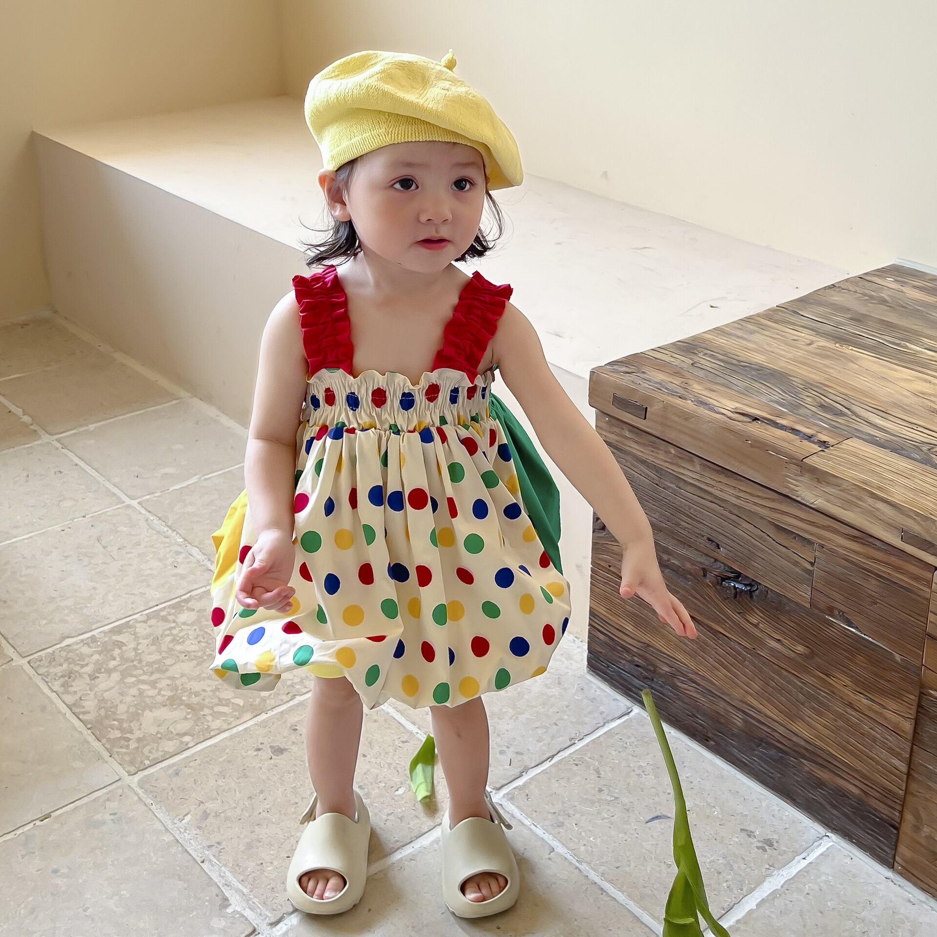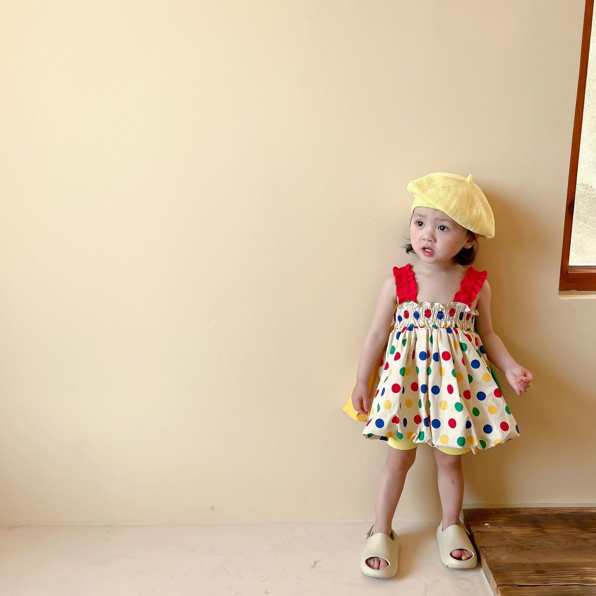 色:カラフルな水玉スリップドレス,同じスタイルのシャークパンツ