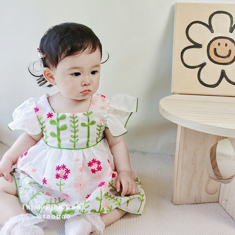 サマードレス スタイルスリーブスカート 薄手 レッド 刺繍 夏物 4/12 春夏 SS mi0987253636369 | Sagittarius By Constellation -KIDS&BABY-