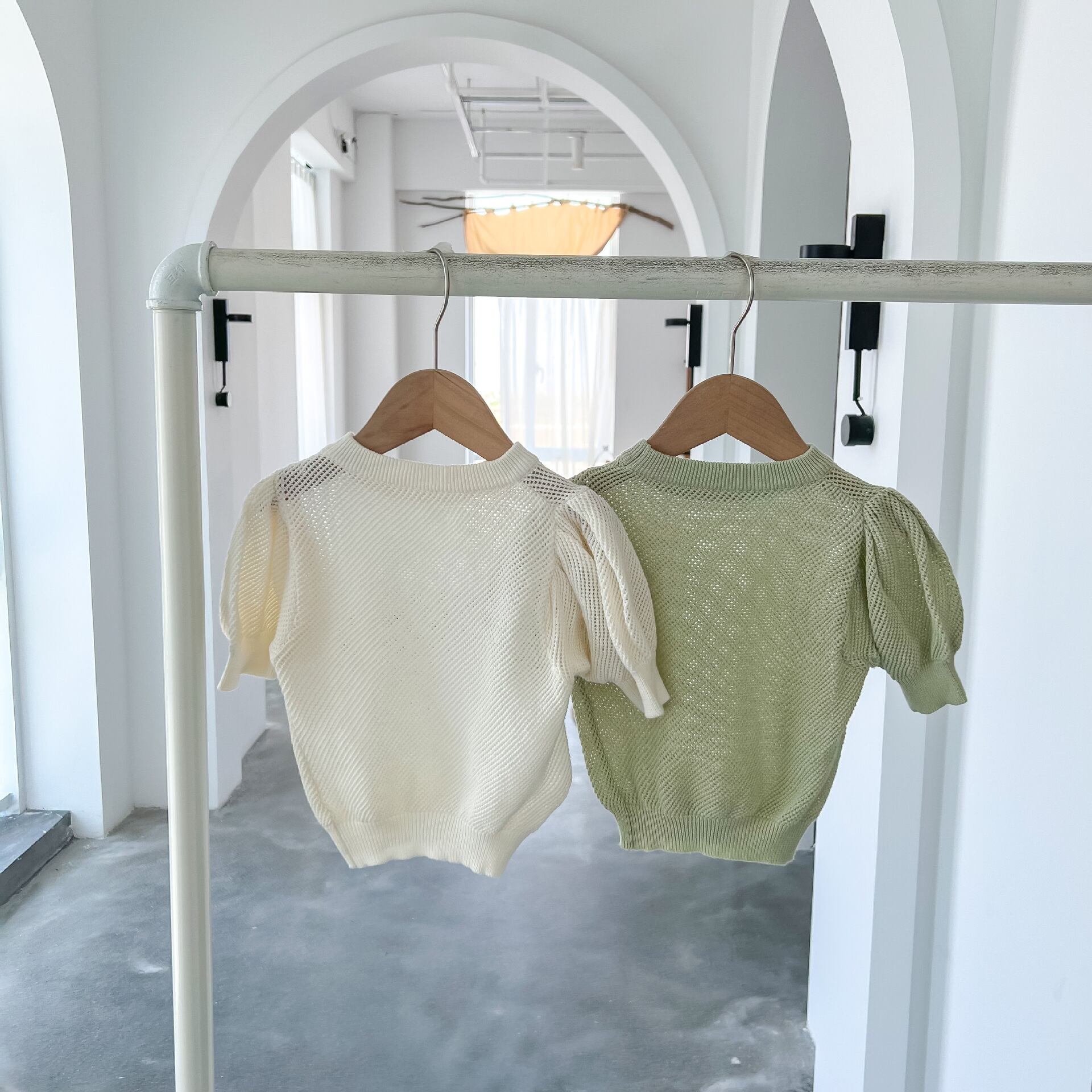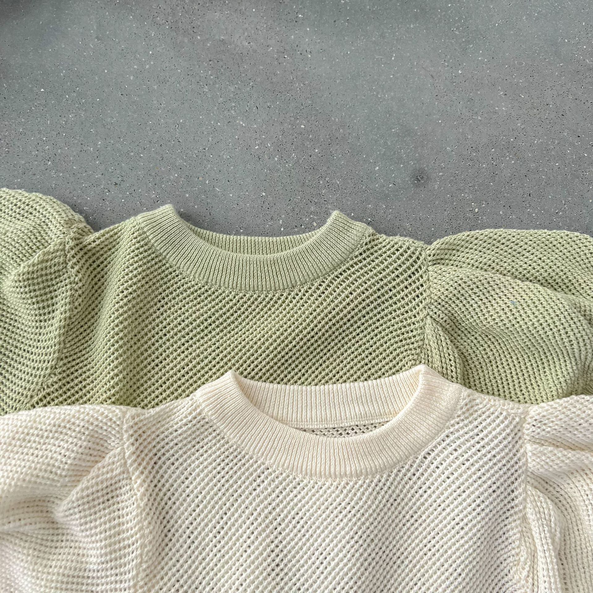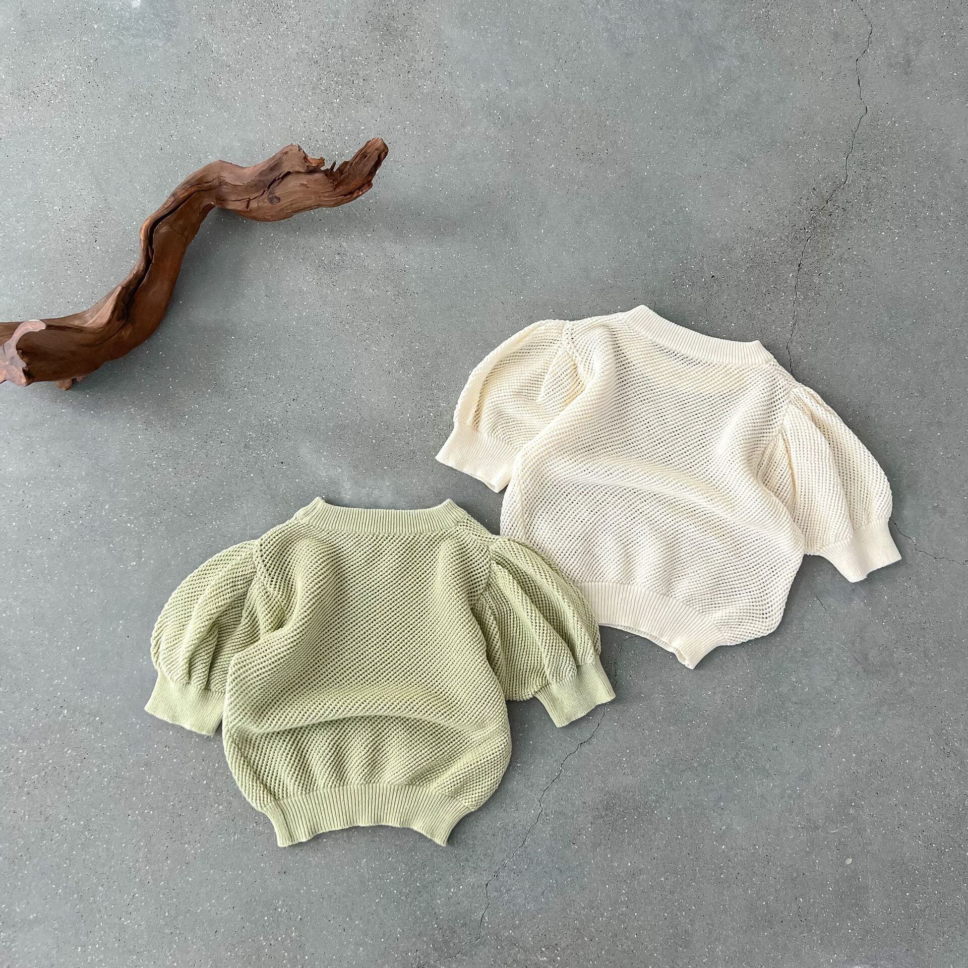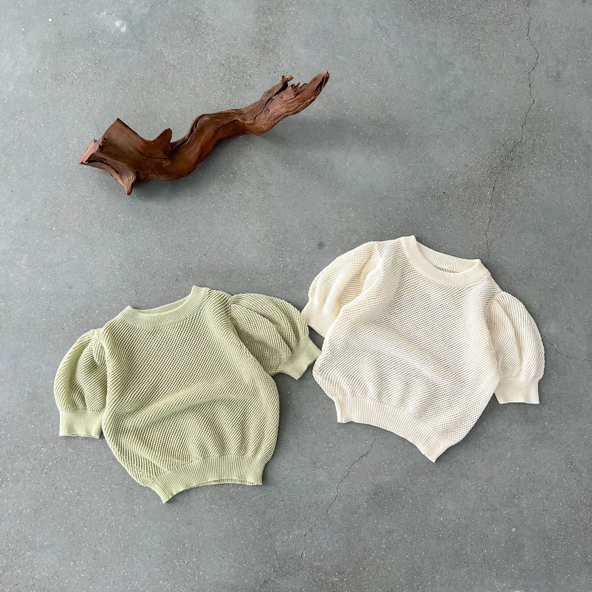 サマーソリッド カラースリーブ薄手ニットセーター Tシャツ 夏物 ソリッドカラー 4/12 春夏 SS mi0926331903540 | Sagittarius By Constellation -KIDS&BABY-