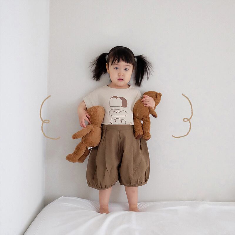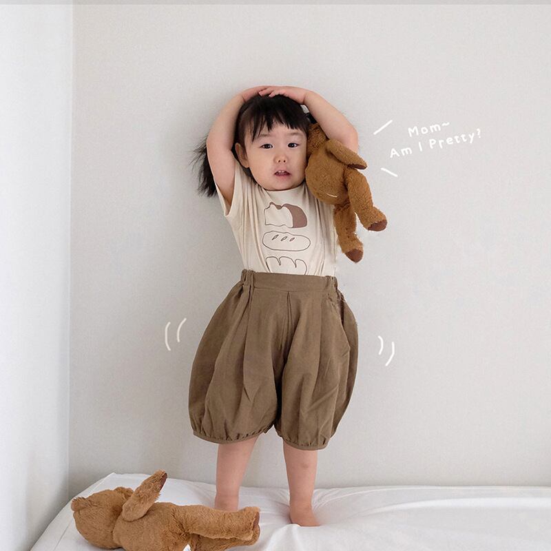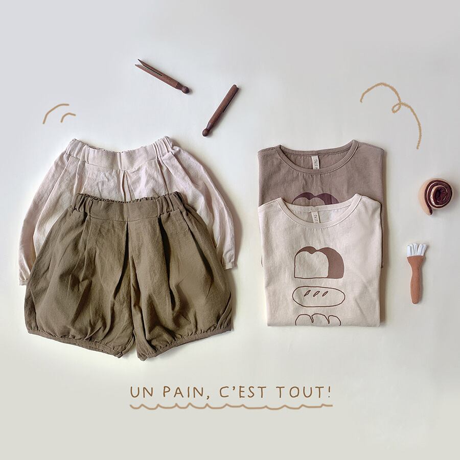 色:パン半袖ベージュ,半袖の茶色のパン,コットンリネンショーツベージュ,コットンとリネンのショーツCEEカラー