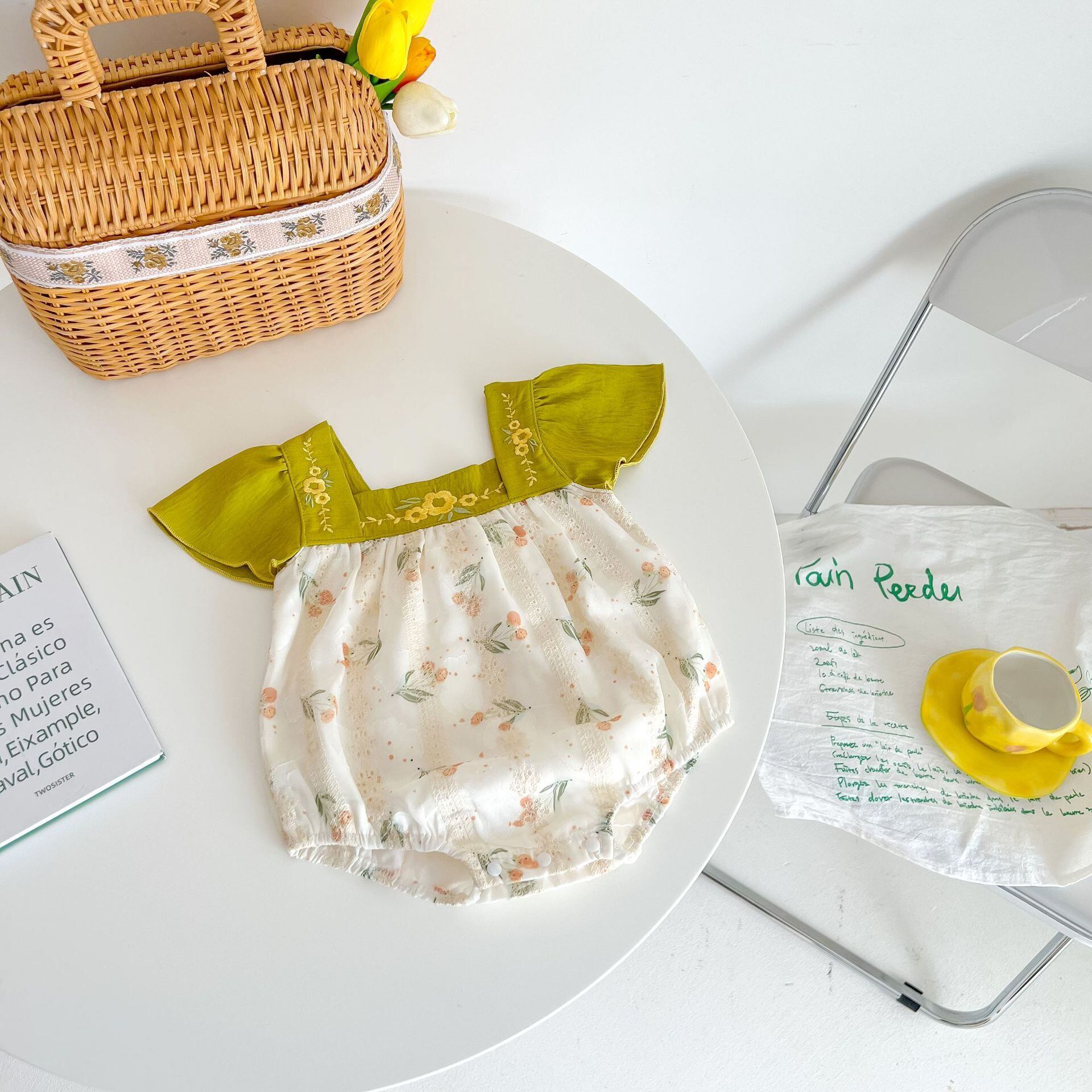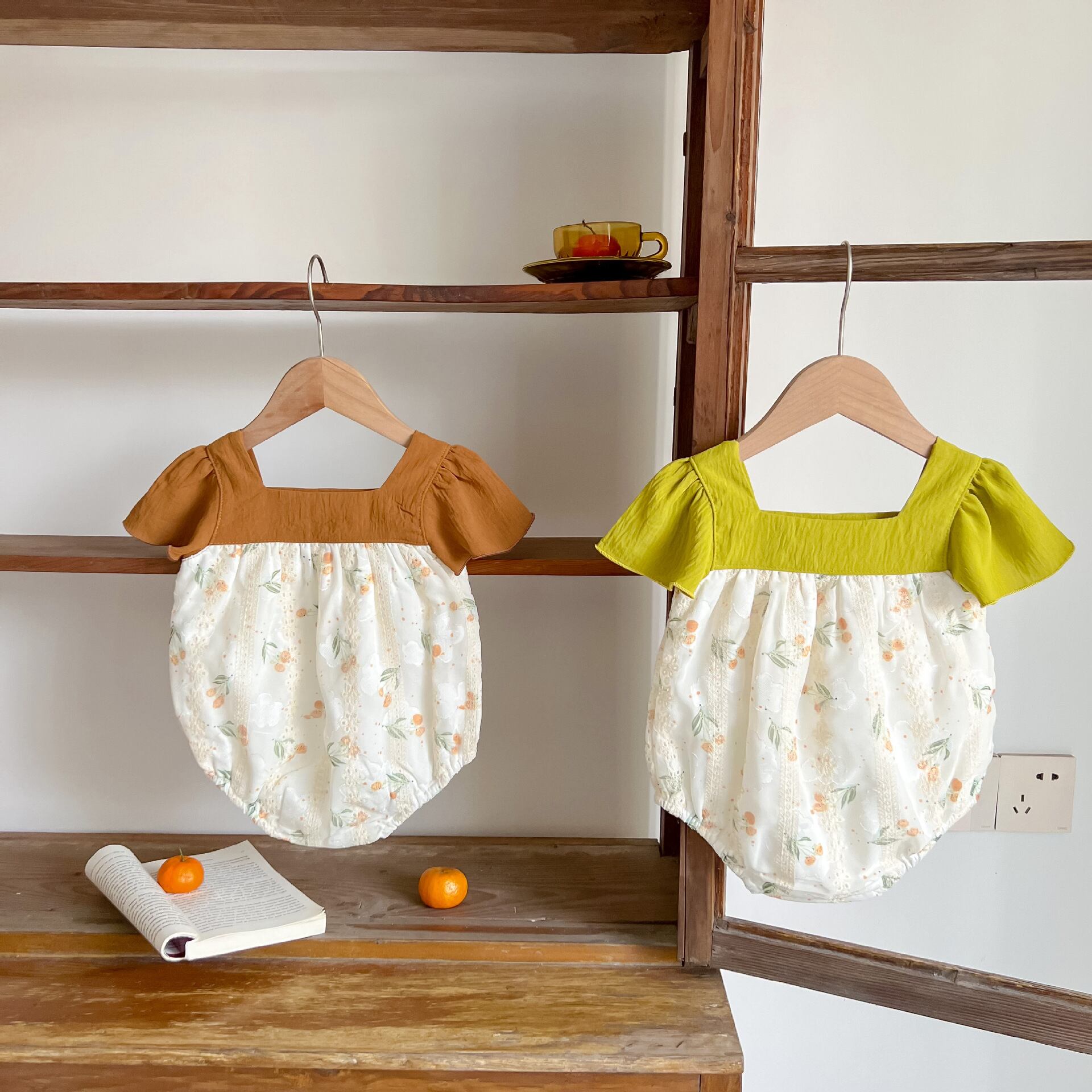 サマードレス カラースリーブトライアングルロンパース オールインワン スタンダード レッド レトロ 刺繍 夏物 スクウェア 4/12 春夏 SS mi0986224177628 | Sagittarius By Constellation -KIDS&BABY-