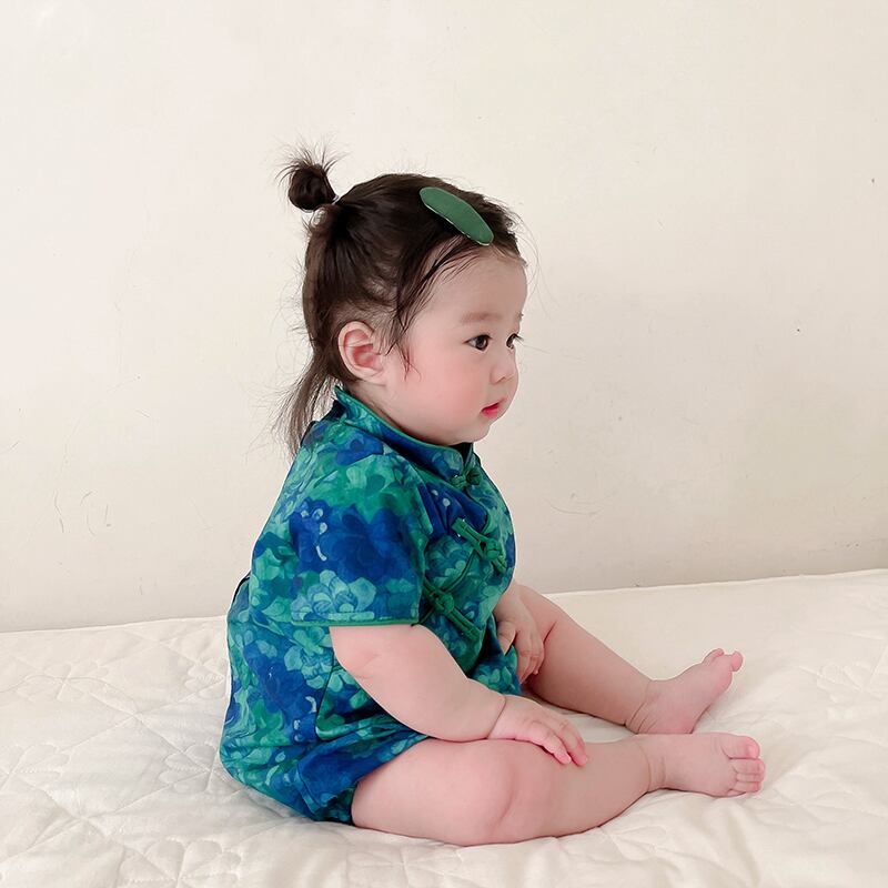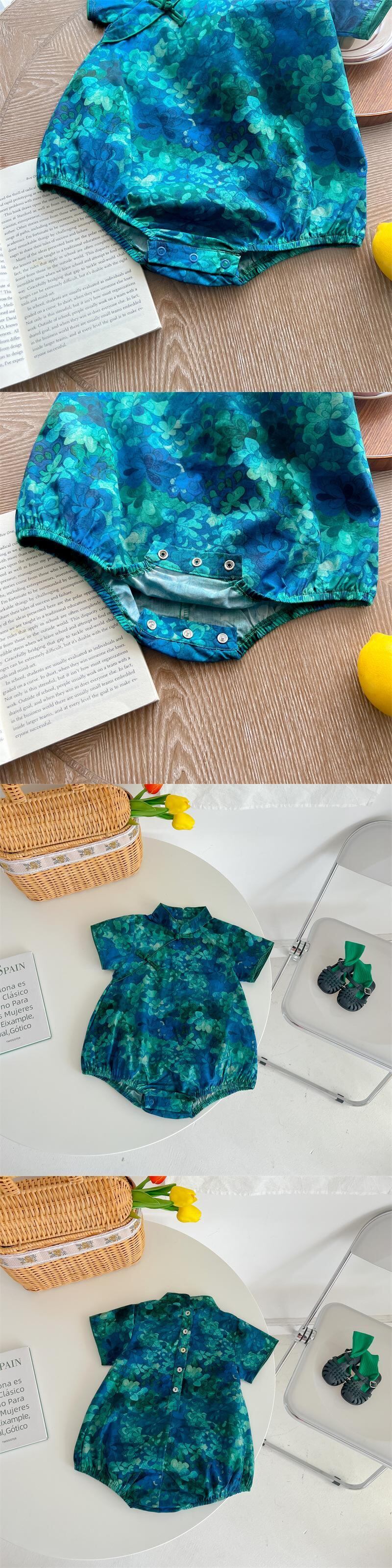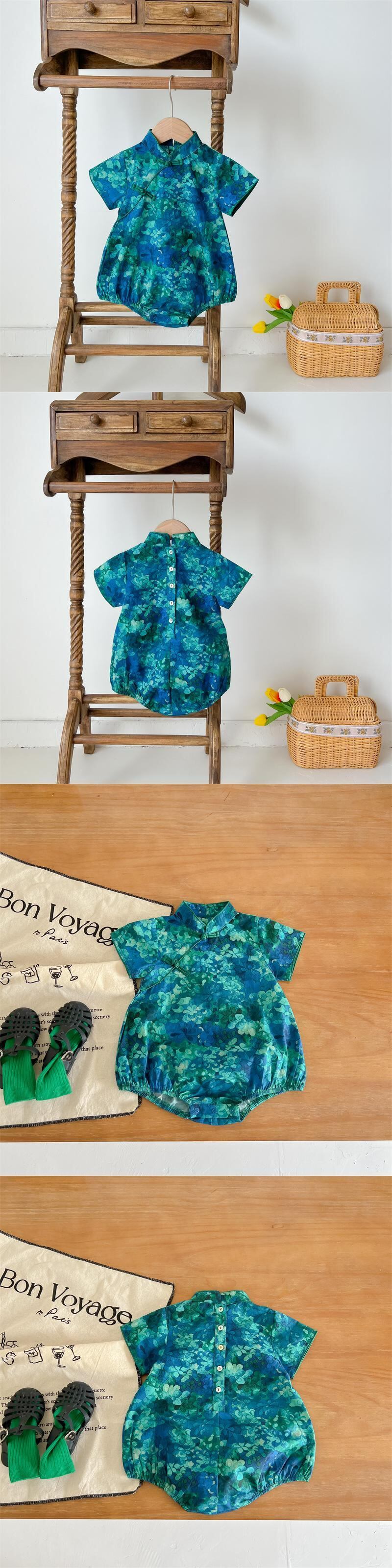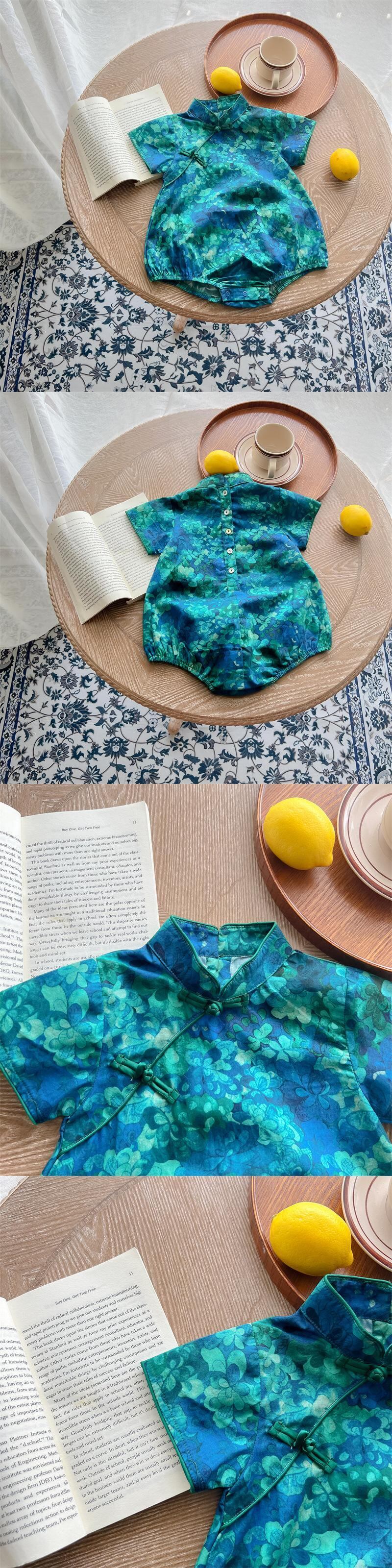 色:フルプリントフローラルダークグリーンロンパース