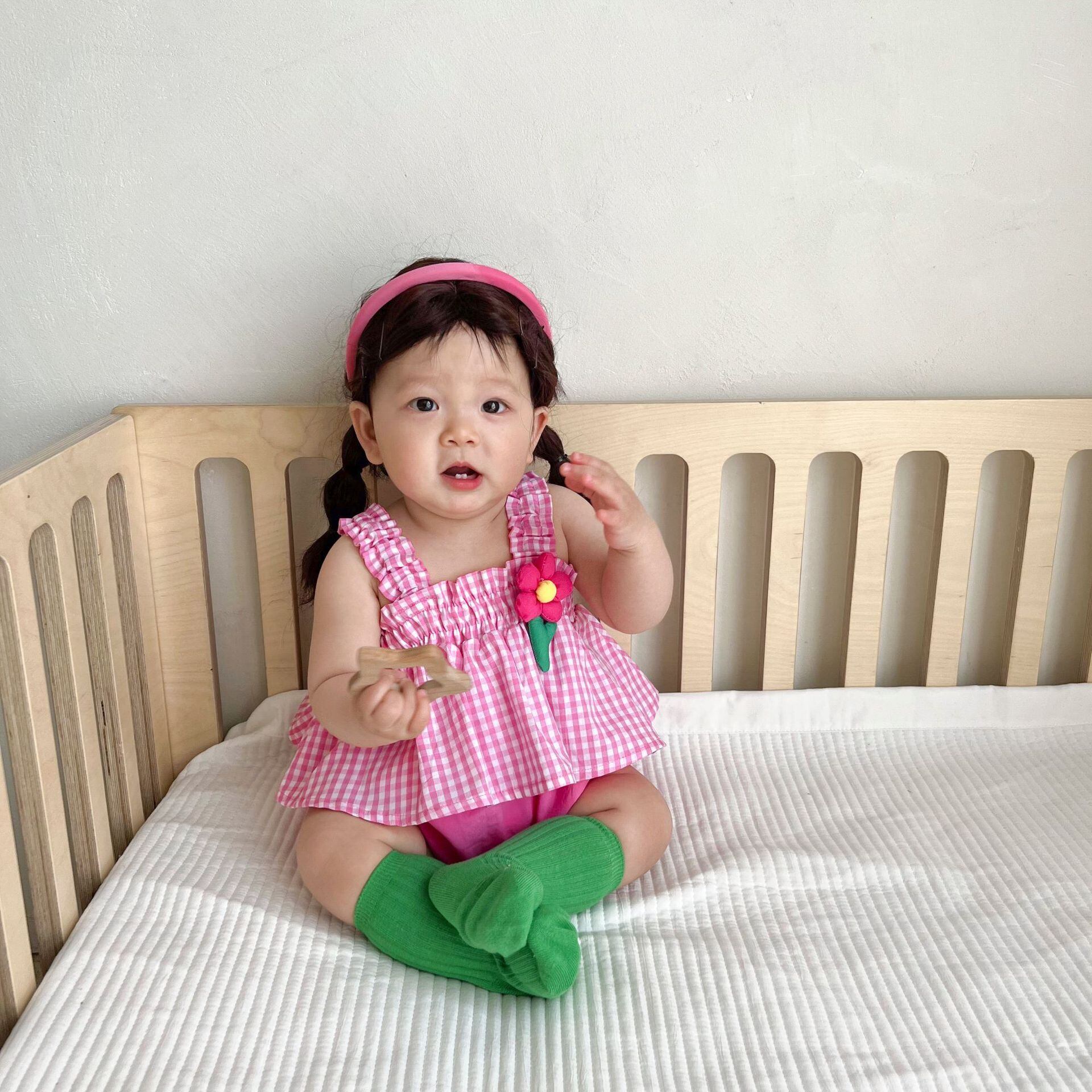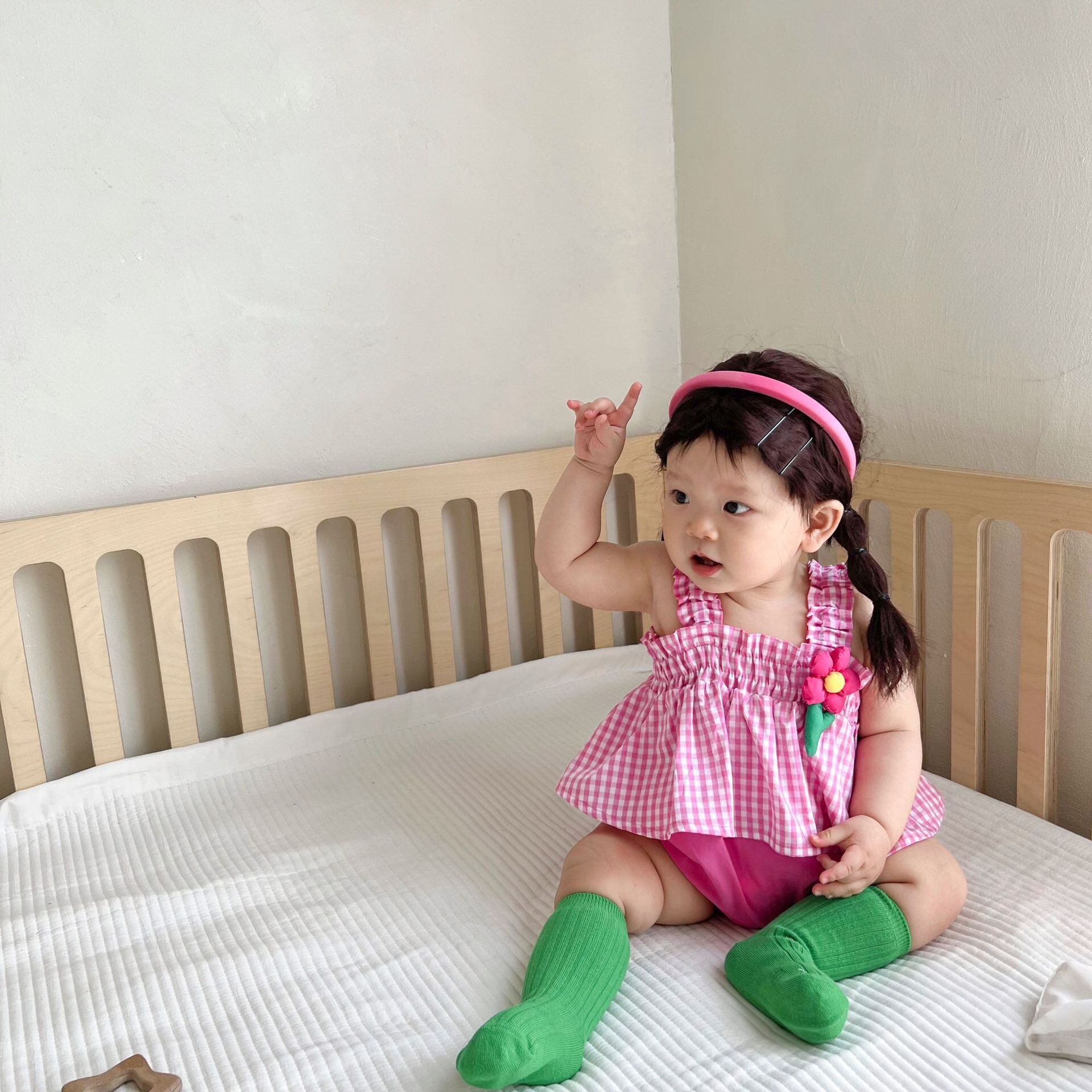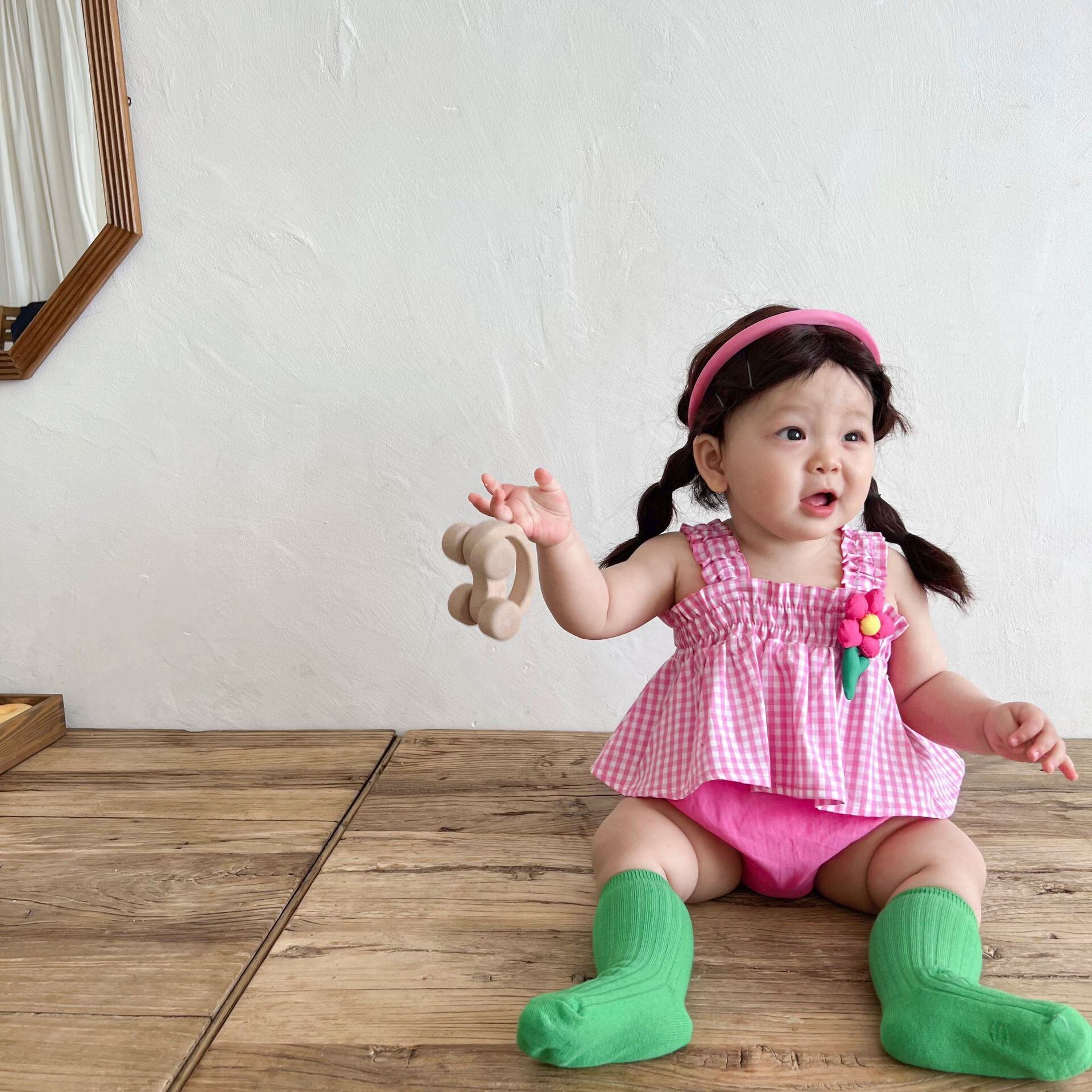 サマードレス 格子柄Flowerデザイン トライアングルロンパース オールインワン 薄手スタイルノースリーブ 夏物 フラワーデザイン 5/17 春夏 SS mi0994817563682 | Sagittarius By Constellation -KIDS&BABY-