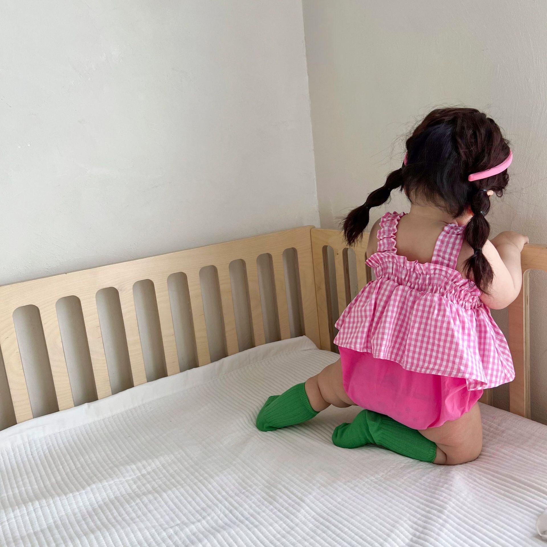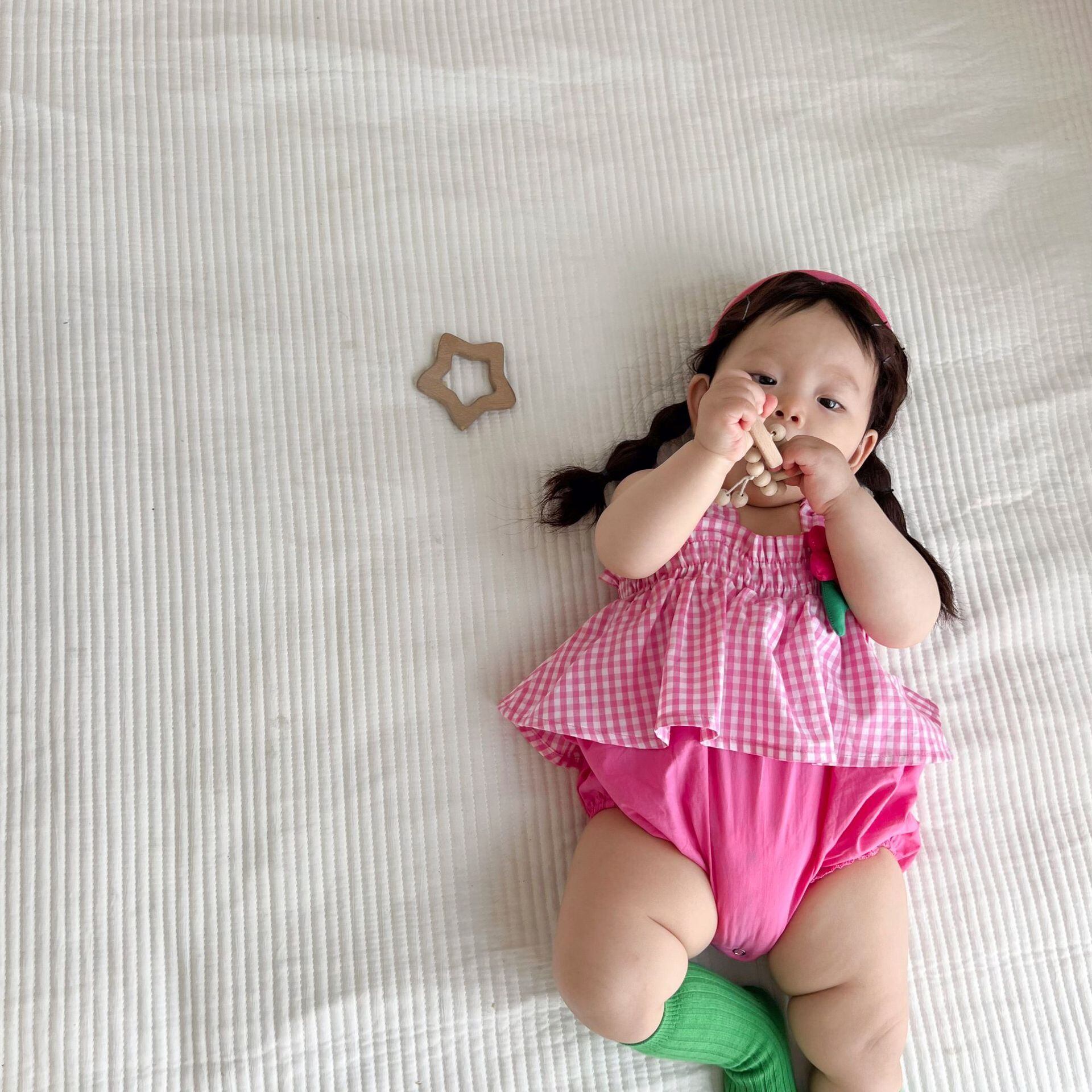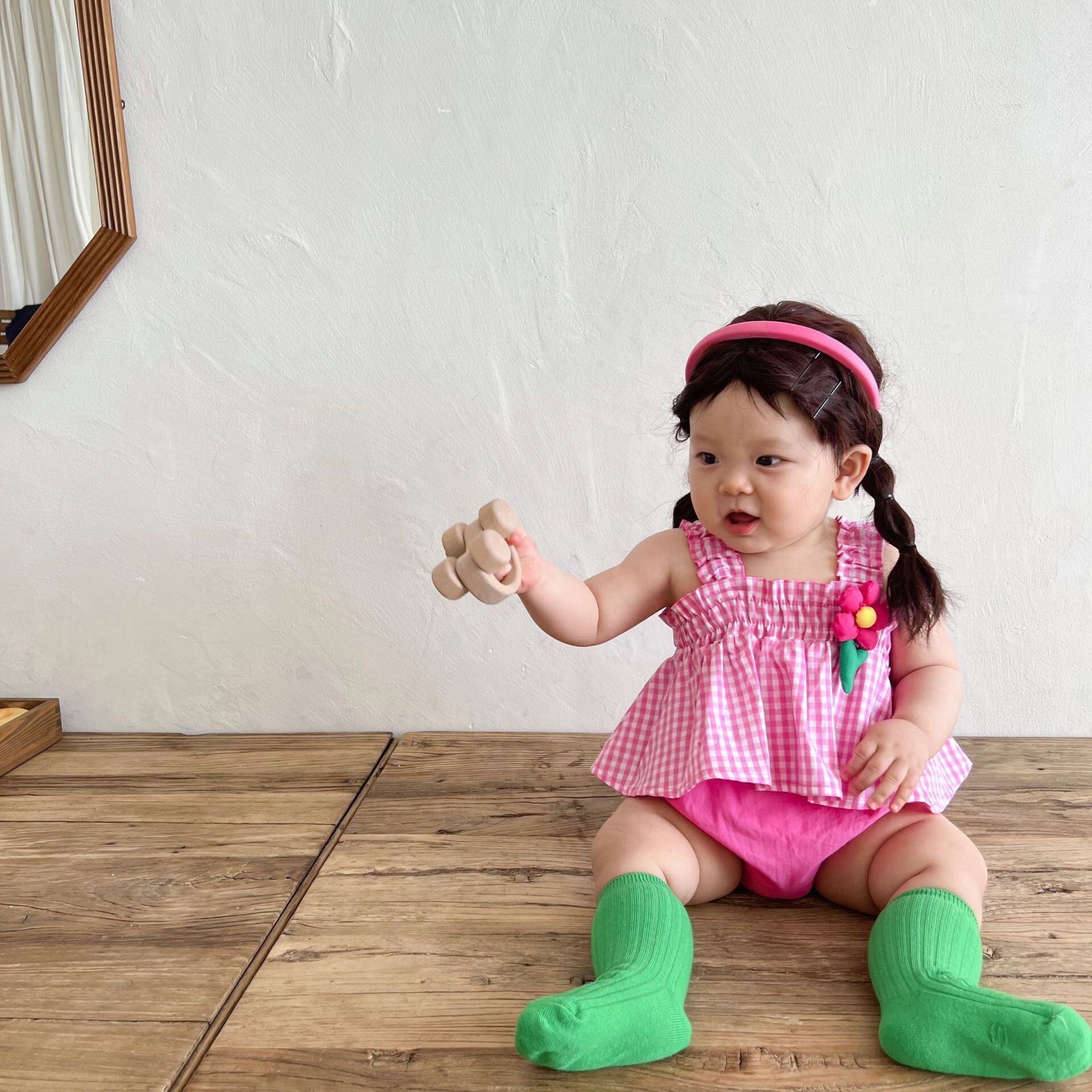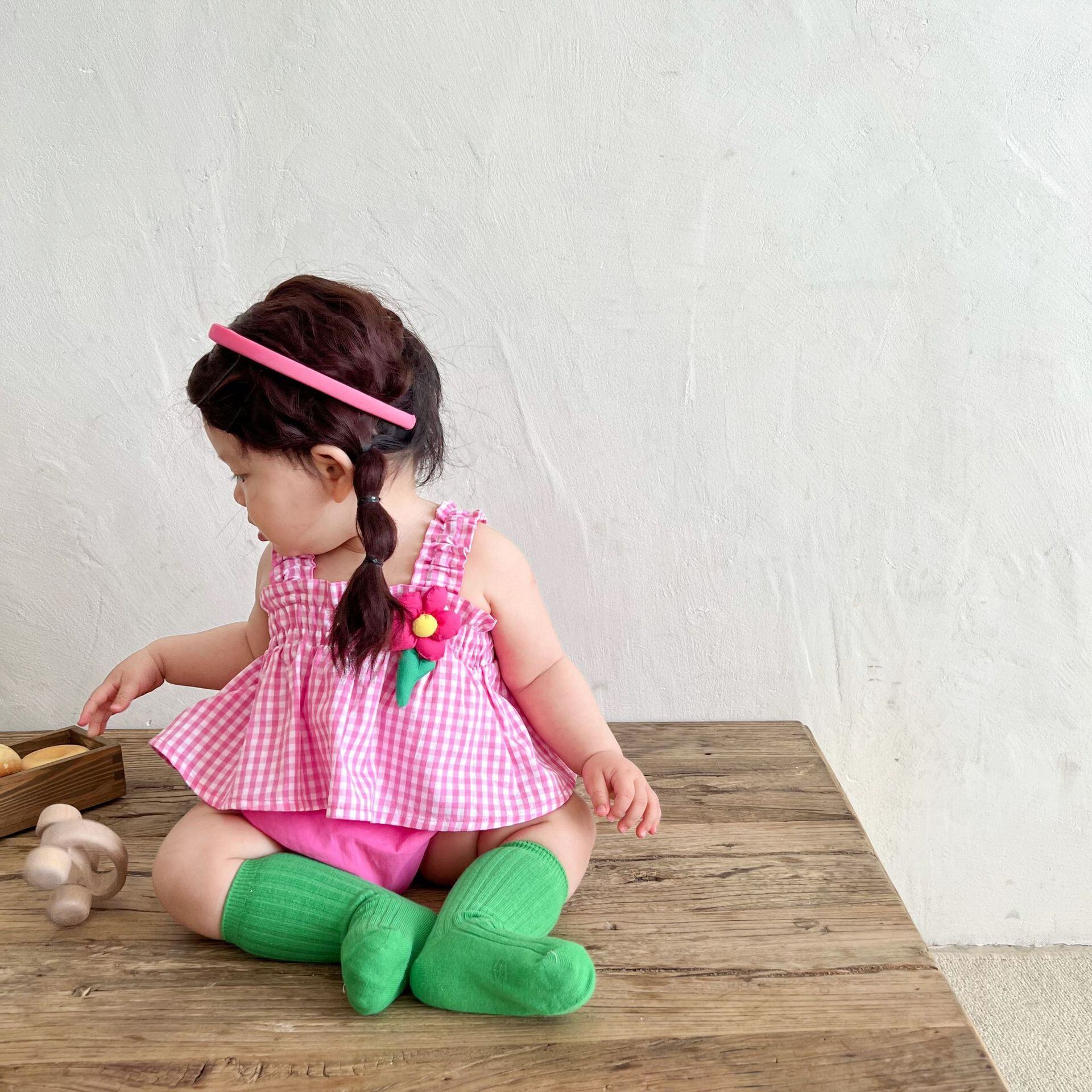 サマードレス 格子柄Flowerデザイン トライアングルロンパース オールインワン 薄手スタイルノースリーブ 夏物 フラワーデザイン 5/17 春夏 SS mi0994817563682 | Sagittarius By Constellation -KIDS&BABY-