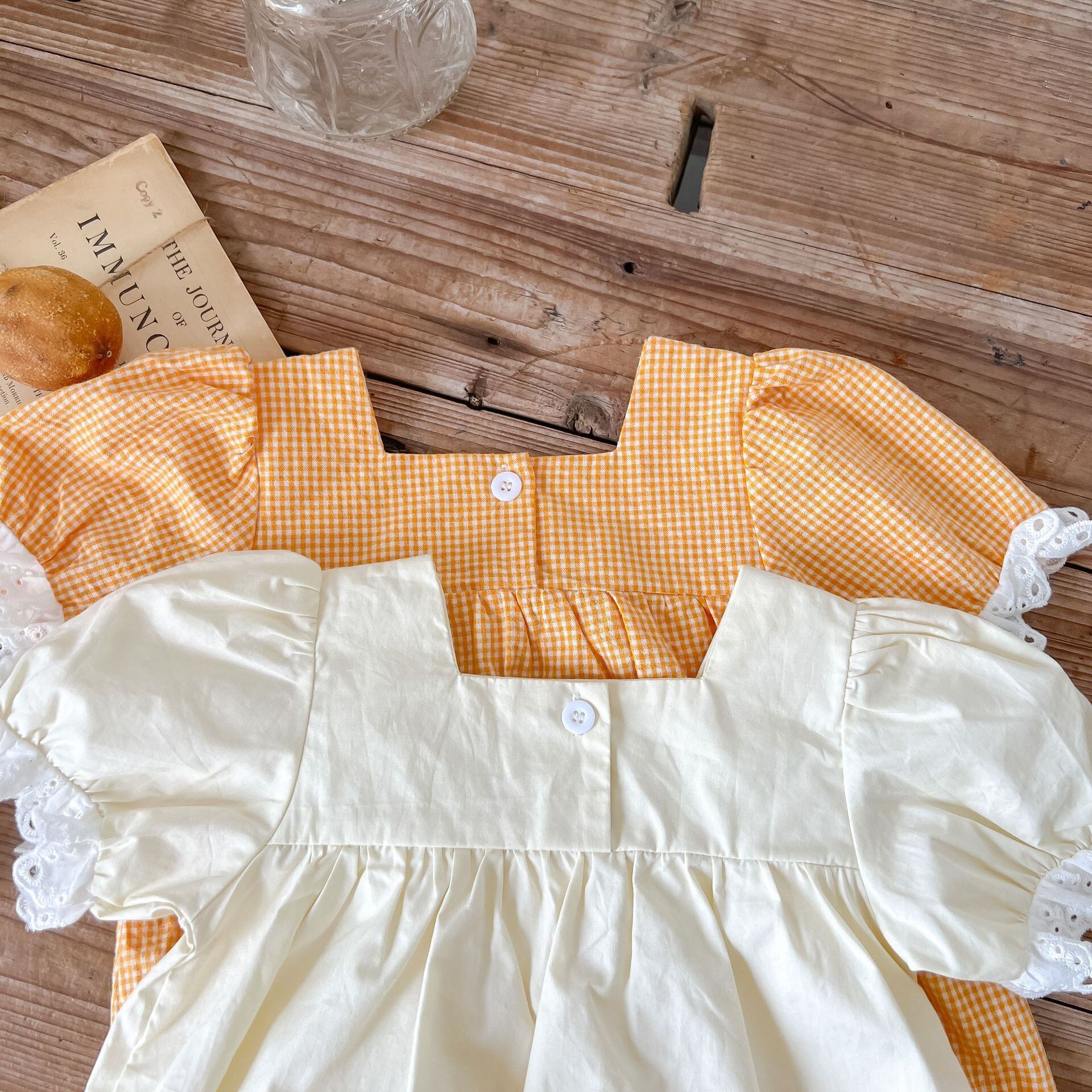 色:黄色の格子縞,Mベージュ