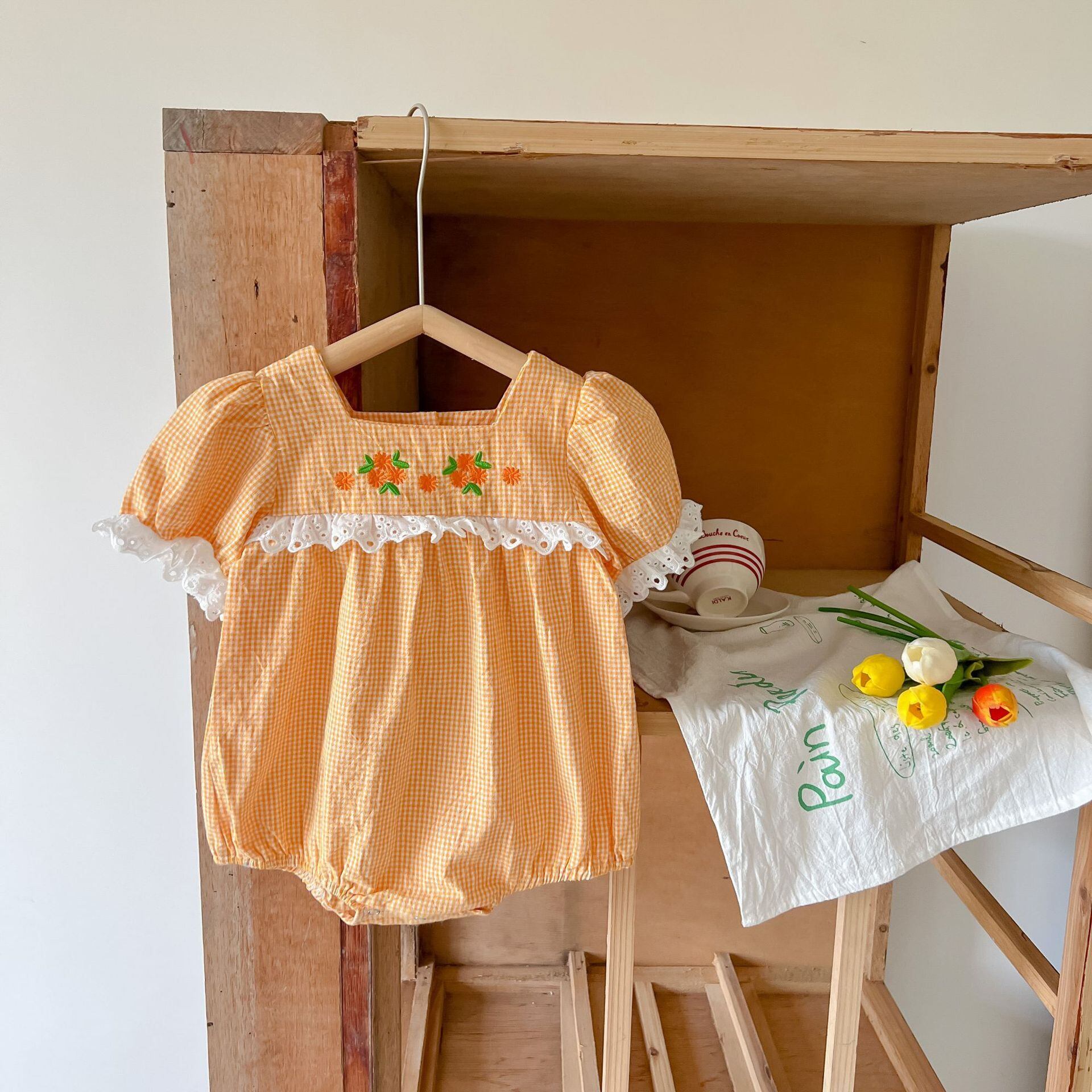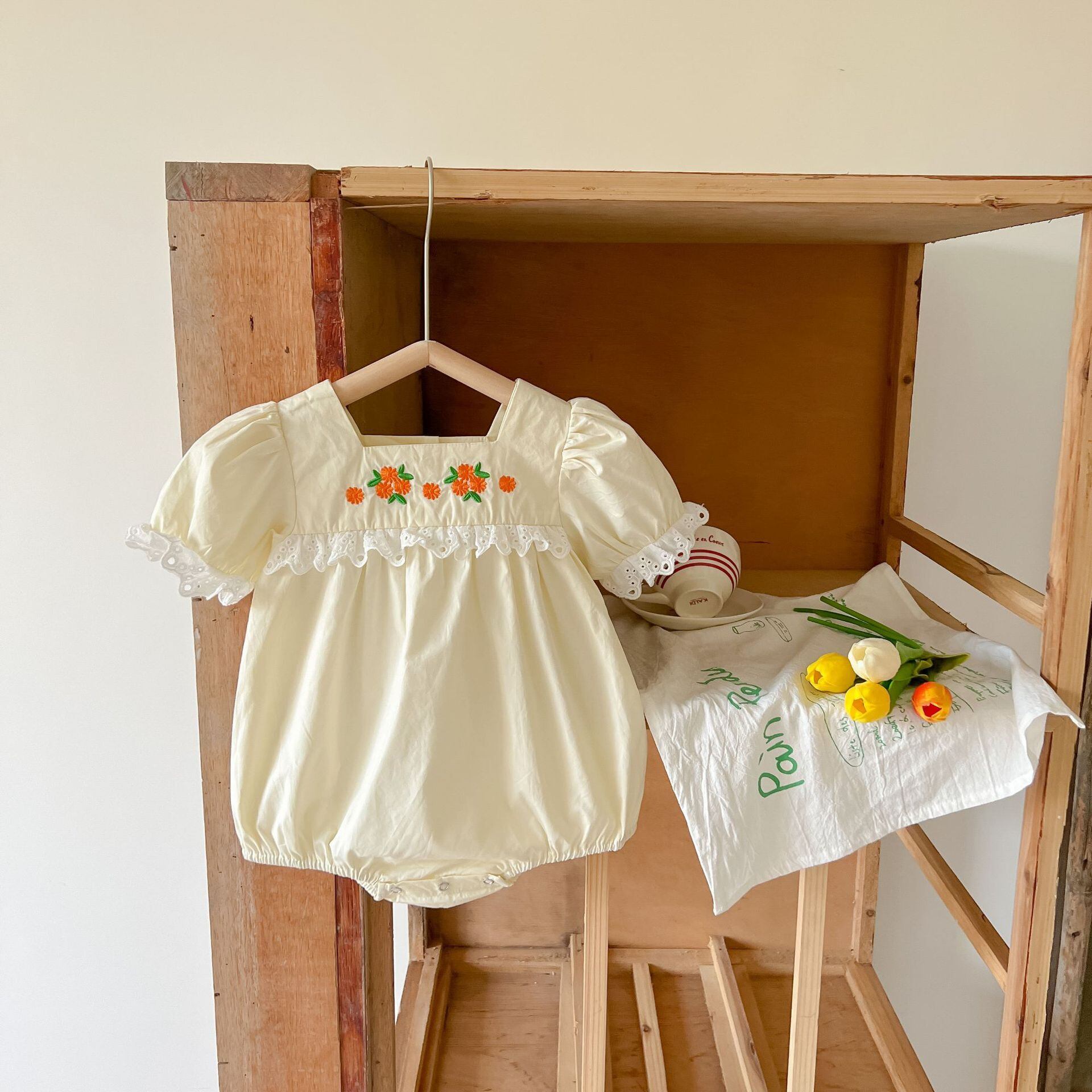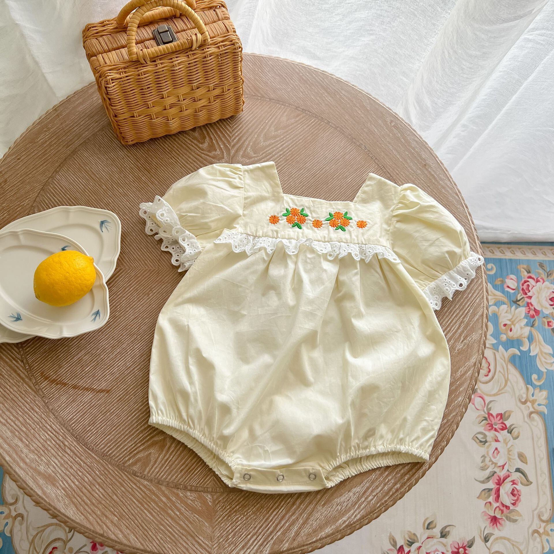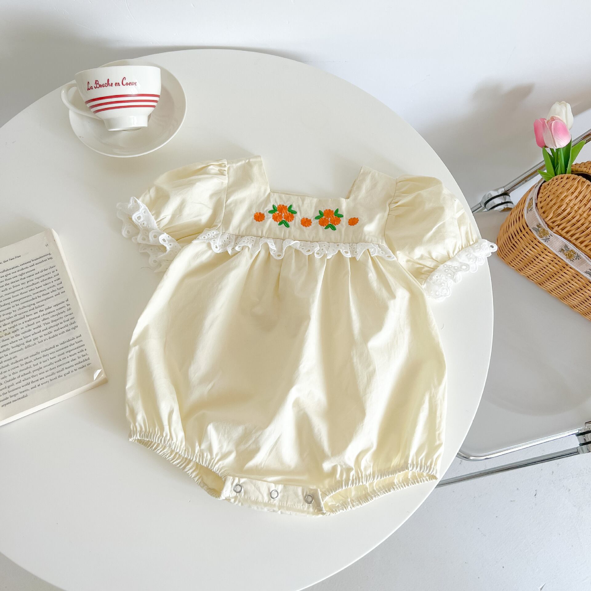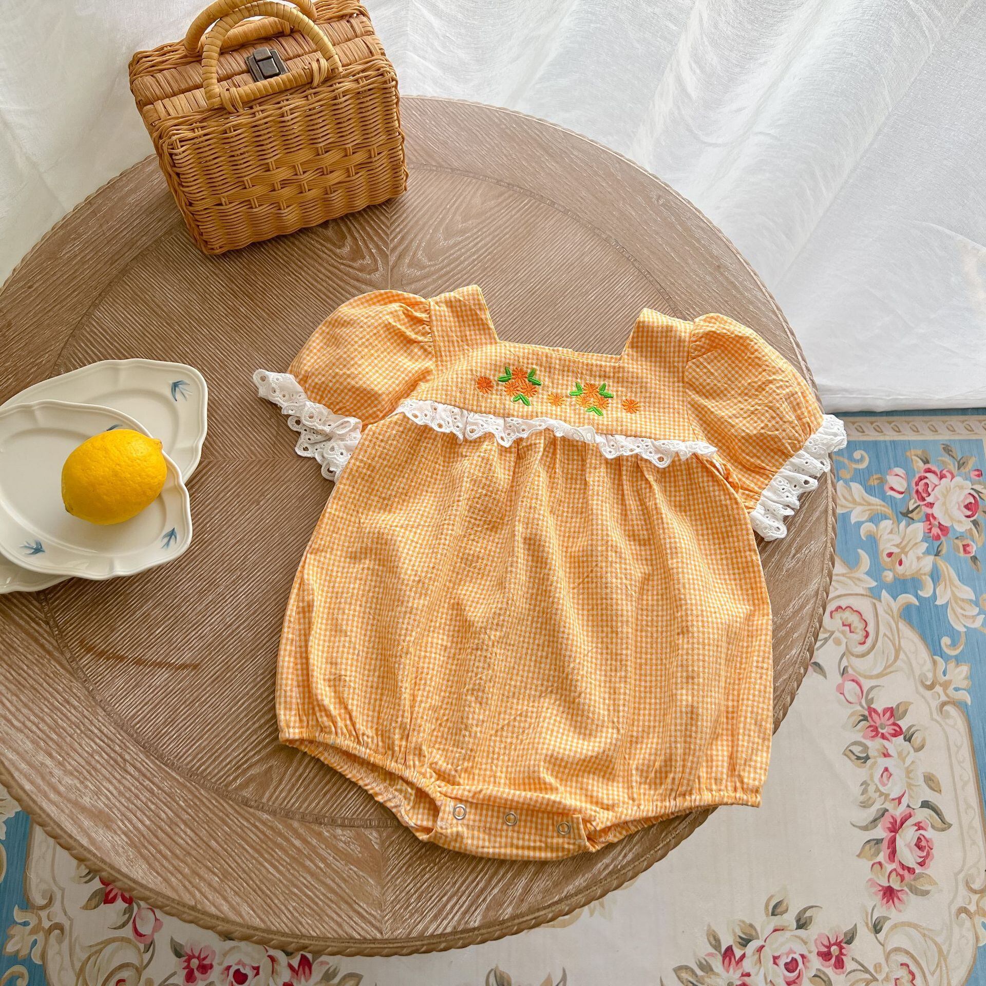 サマードレス レーストライアングルロンパース オールインワン スタイル薄手 レッド 刺繍 夏物 5/17 春夏 SS mi0933125640666 | Sagittarius By Constellation -KIDS&BABY-