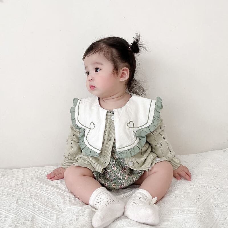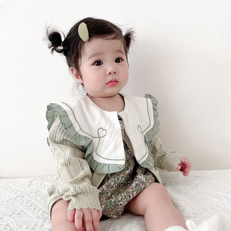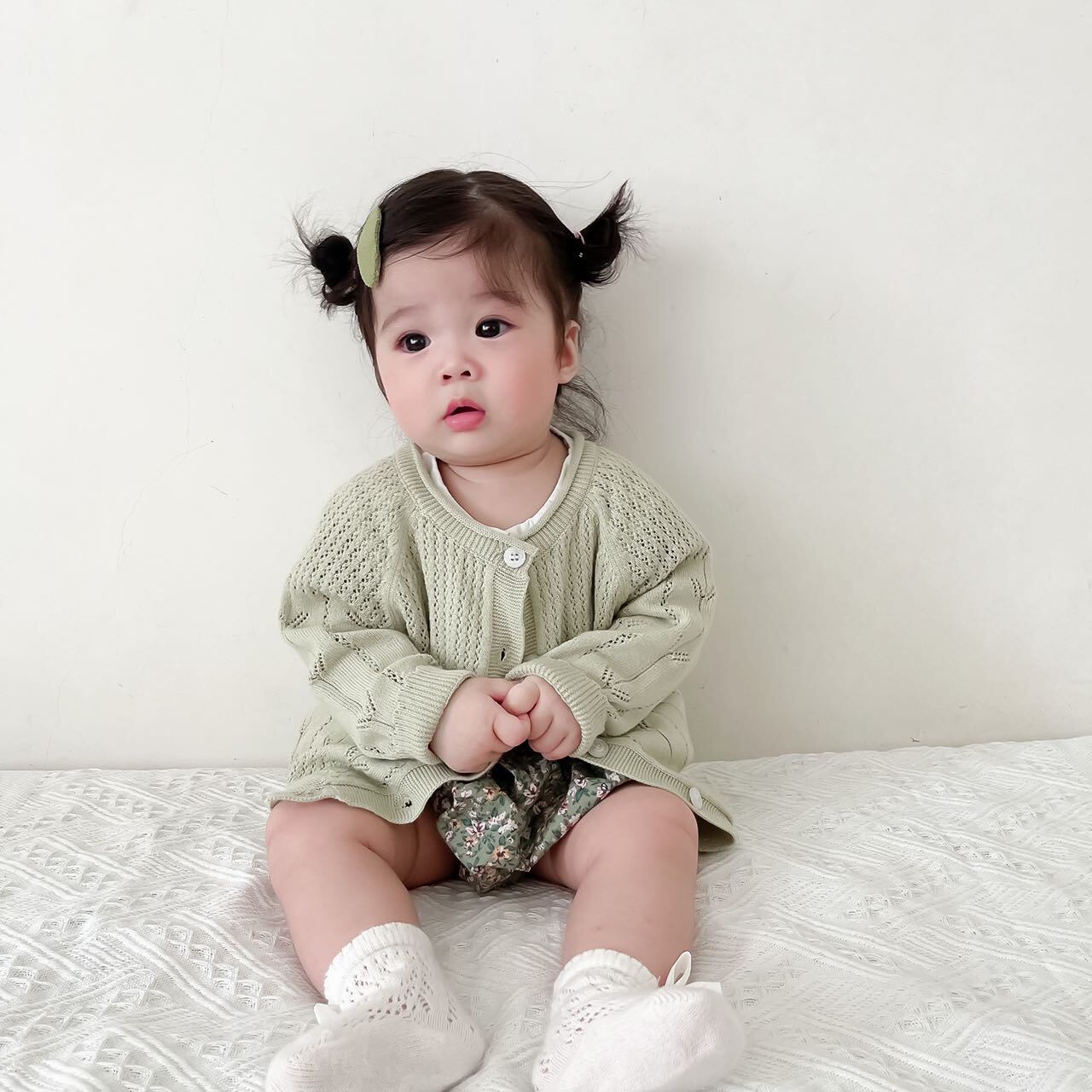 色:ヴィンテージグリーンフローラルロンパース,薄手の日焼け防止ニットセーター
