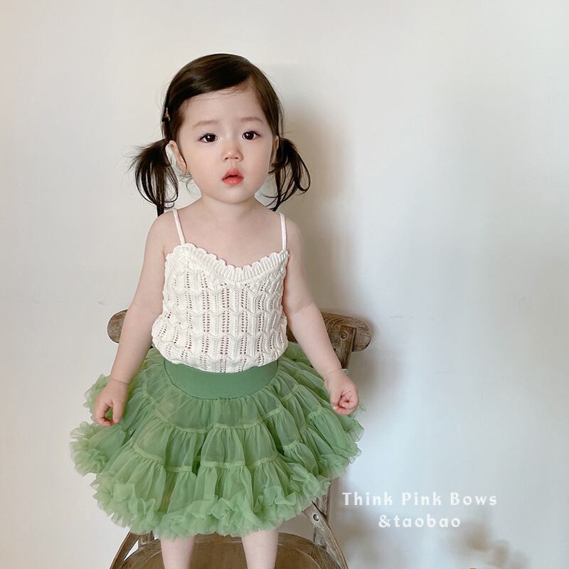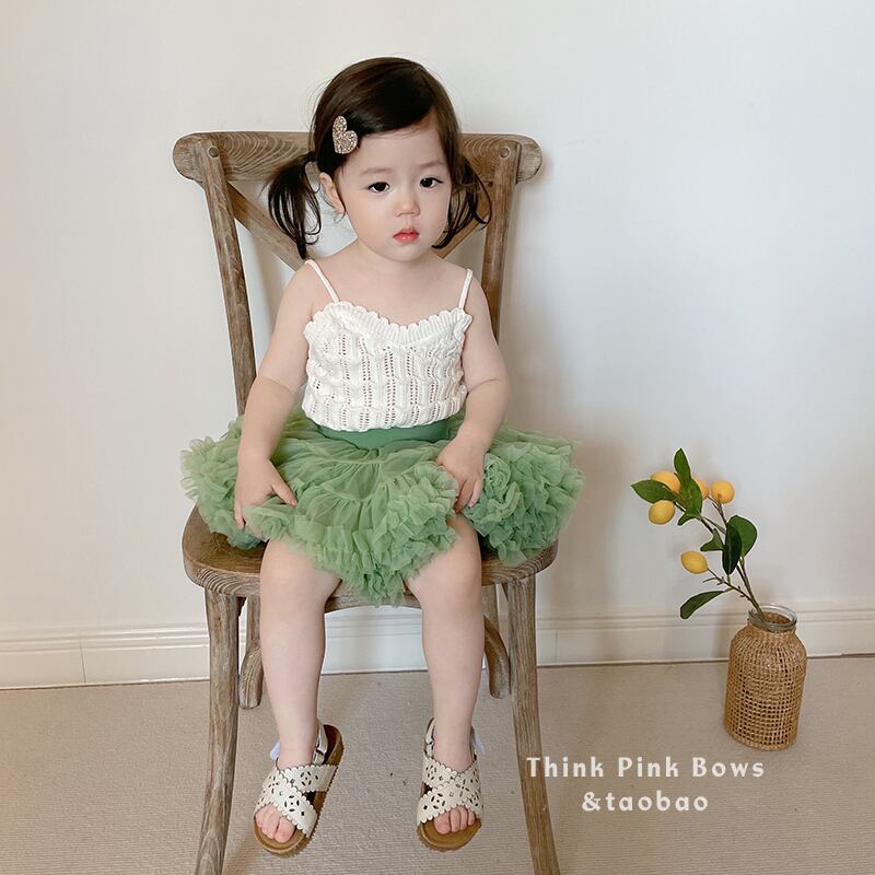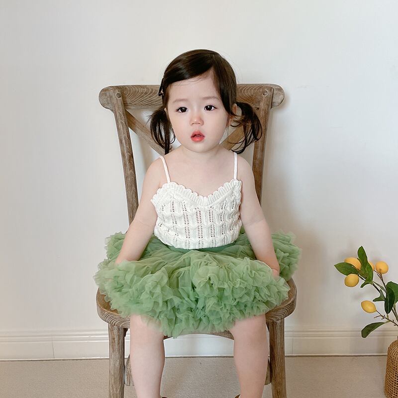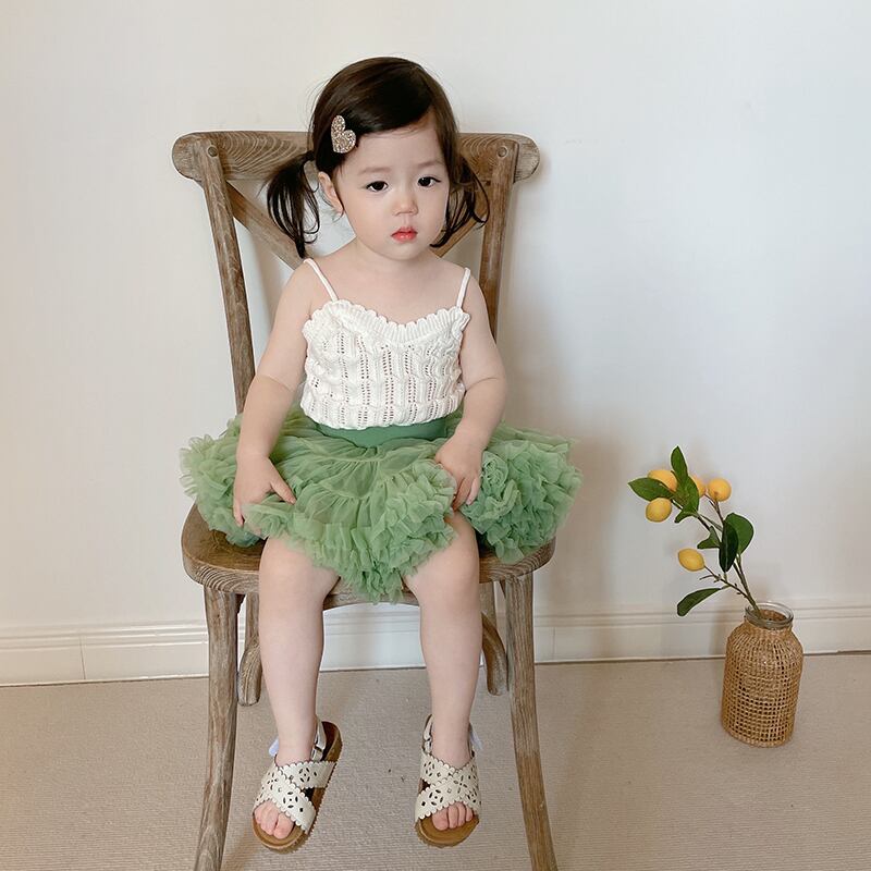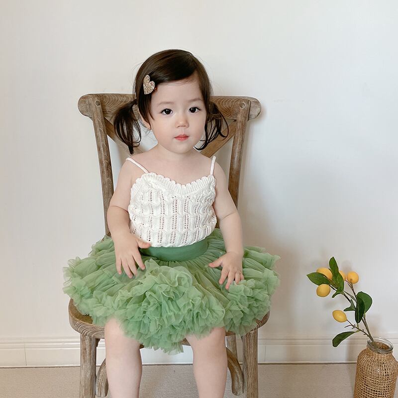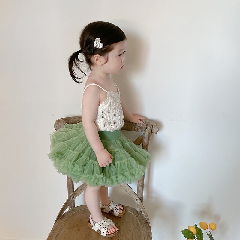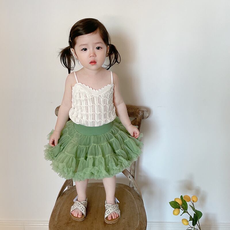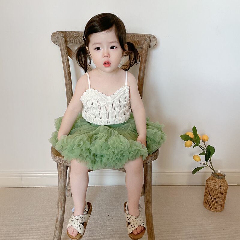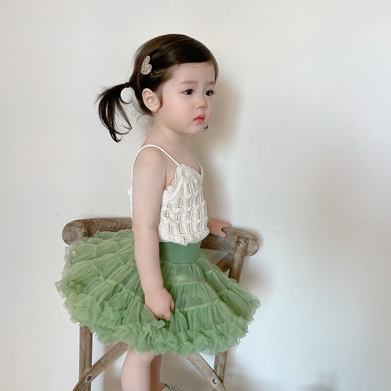 色:白いキャミソール,アボカドグリーンチュチュスカート