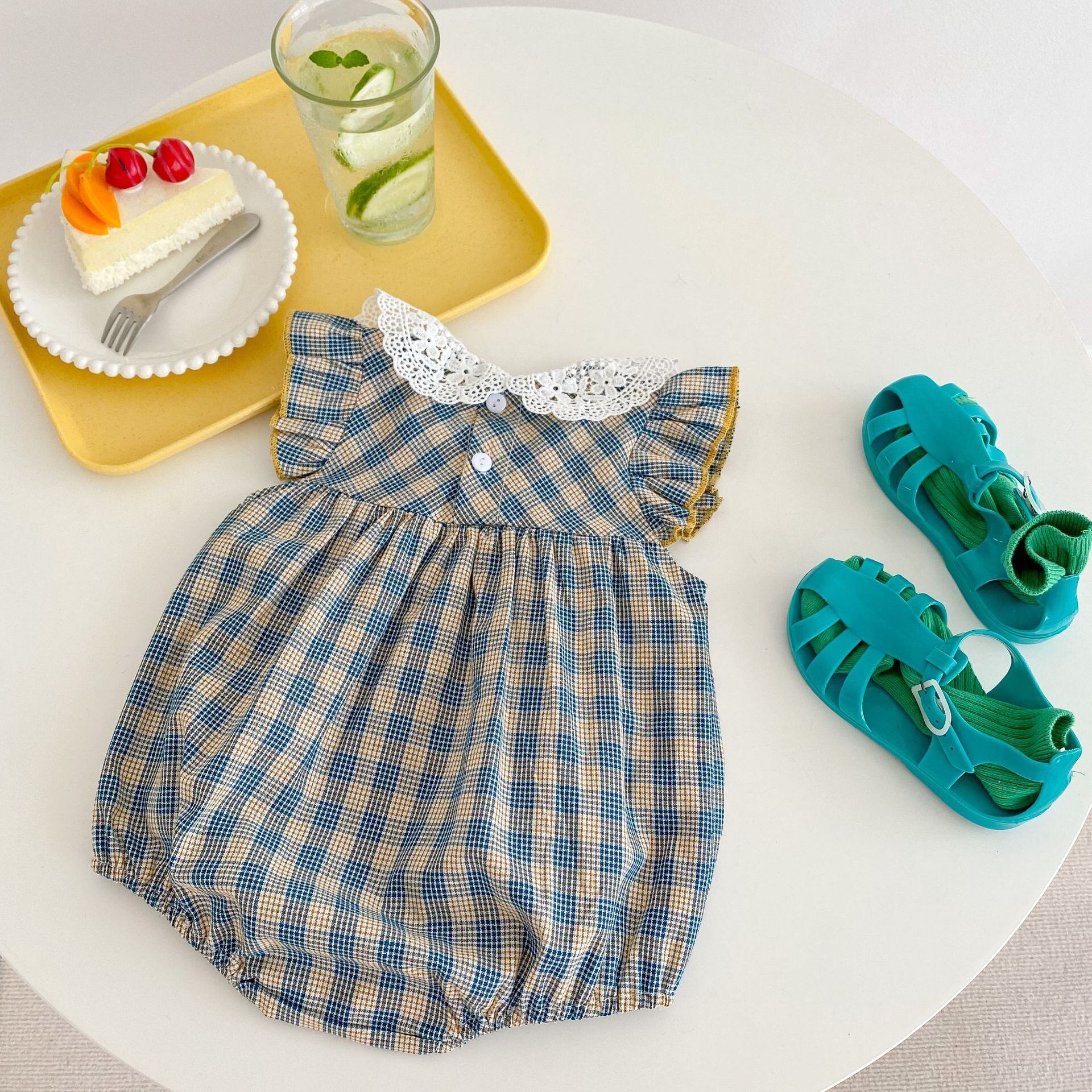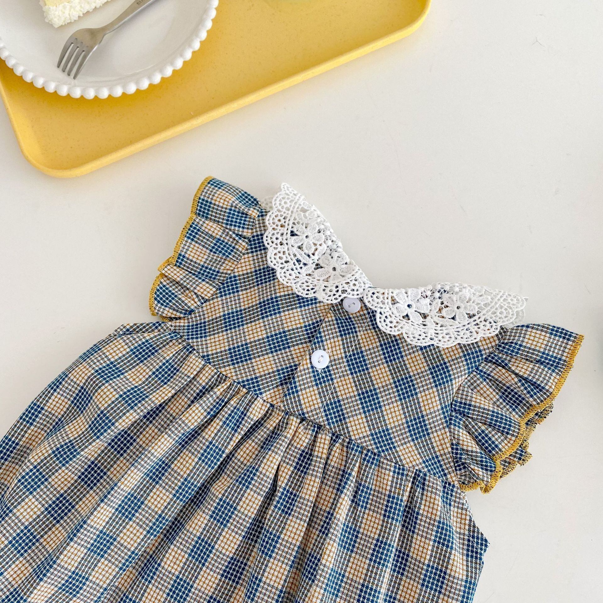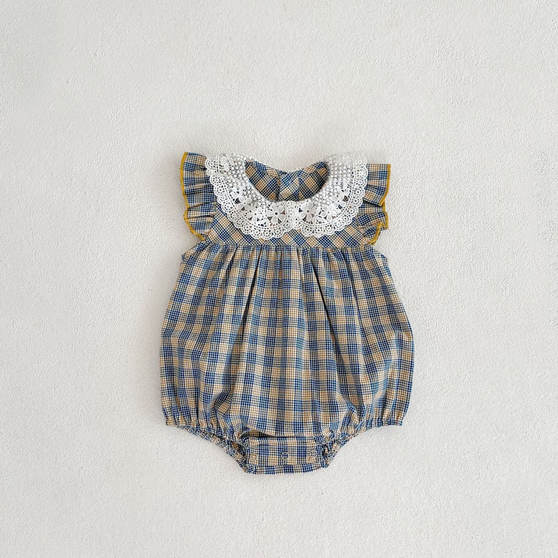 サマードレス レースカラー格子柄スタイルロンパース オールインワン スリーブトライアングル 夏物 5/17 春夏 SS mi0976632552006 | Sagittarius By Constellation -KIDS&BABY-