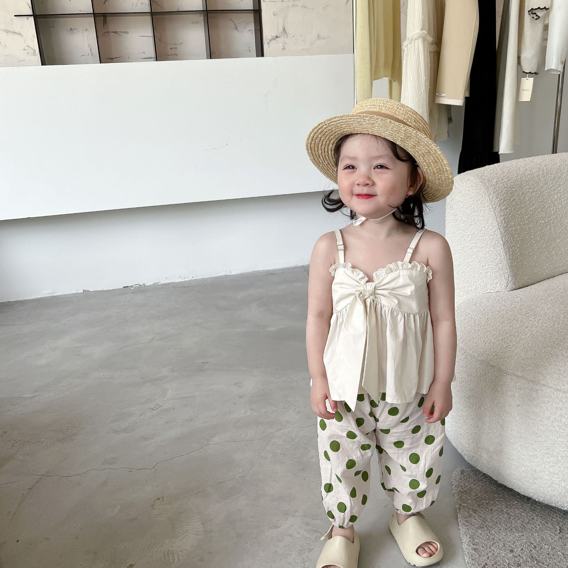 色:レーススリング,水玉模様のモスキートパンツ
